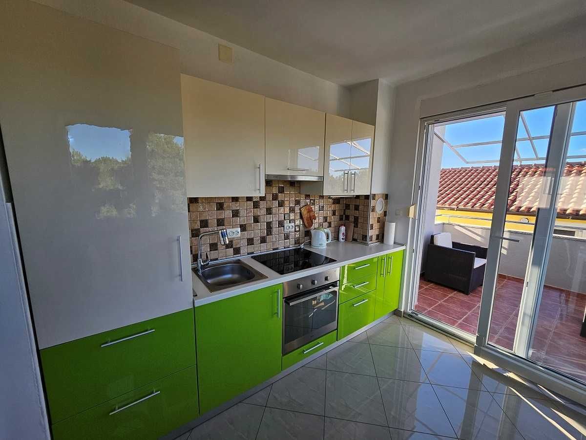 Vir, jižní strana . Apartmán 2+kk, 400 m od pláže Pedinka. Nachází se v 1. patře domu se 4 byty, dům postaven 2018, z ložnice a balkonu výhled na moře. Balkon má od jara novou izolaci a dlažbu, loni pořízeny nové komarnice a klimatizace.