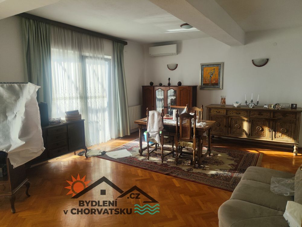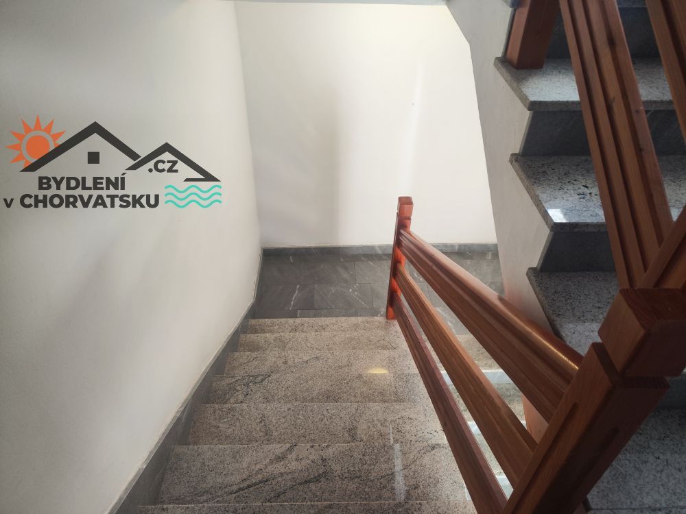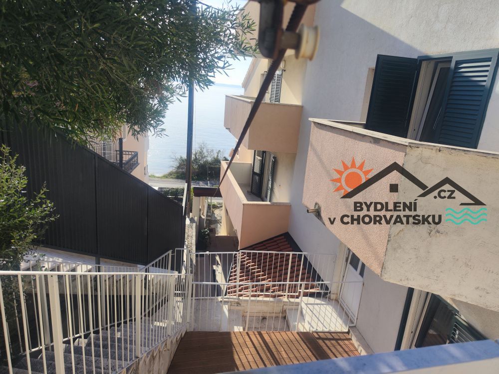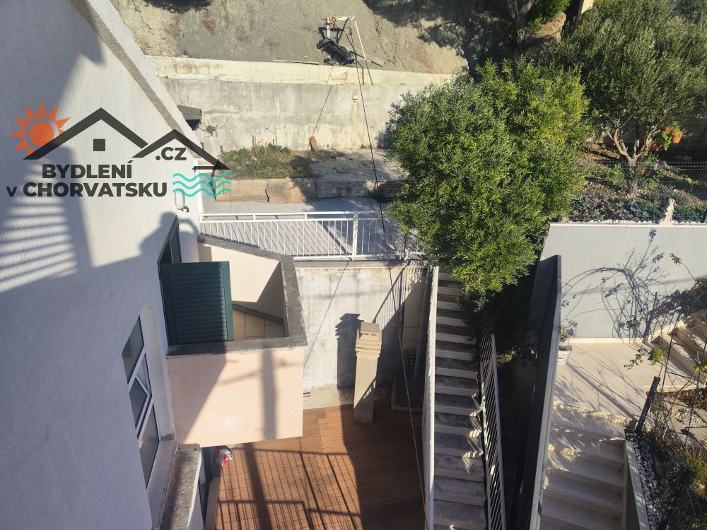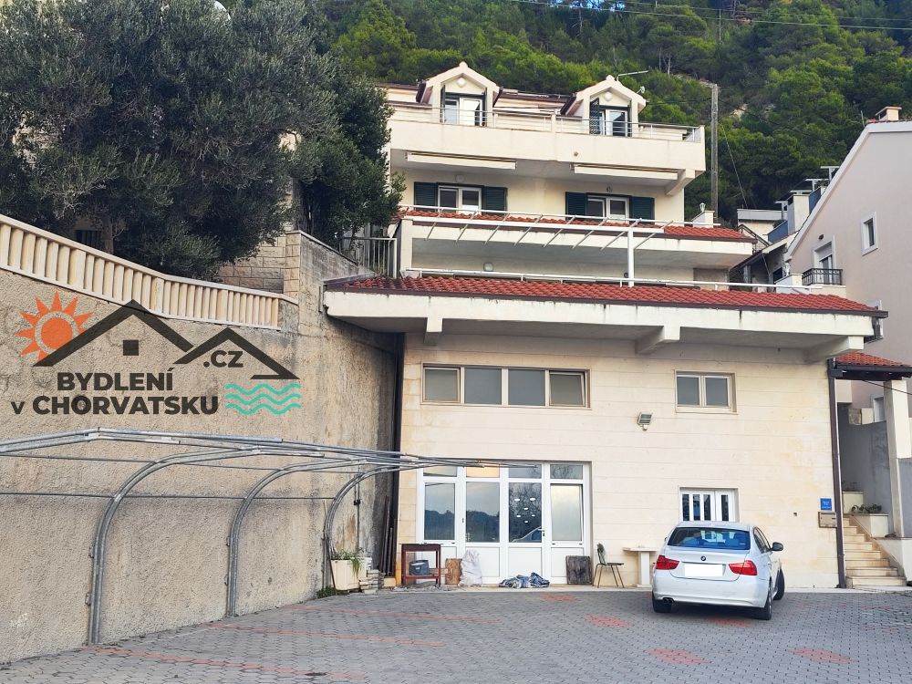 V Podstraně, střediskové obci hned vedle Splitu, nabízíme k prodeji bytový dům s garáží a obchodním prostorem. Dům se nachází v první řadě u moře (přes cestu) a má parkování pro 8 aut před domem. V přízemí se nachází 5 metrů vysoký obchodní prostor, částečně vybavený galerií. Prostor má 92 m2. Ve zvýšeném přízemí se nachází byt s třemi ložnicemi, obývacím pokojem, kuchyní, dvěma koupelnami a velkou terasou. Byt má 145 m2, ústřední topení a dvě klimatizace. Do prvního patra se dostanete po vnitřním schodišti.