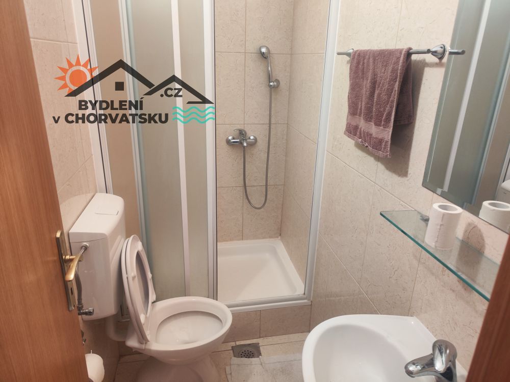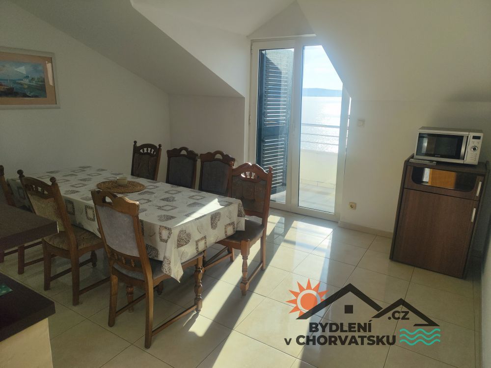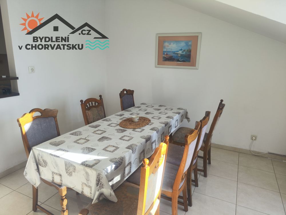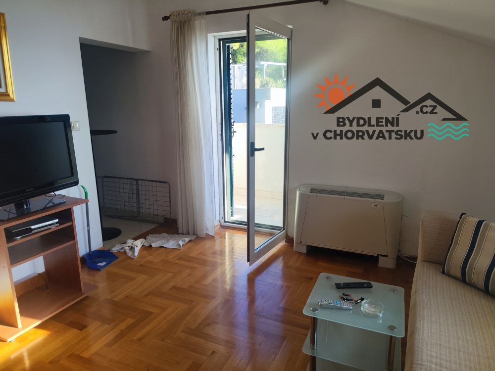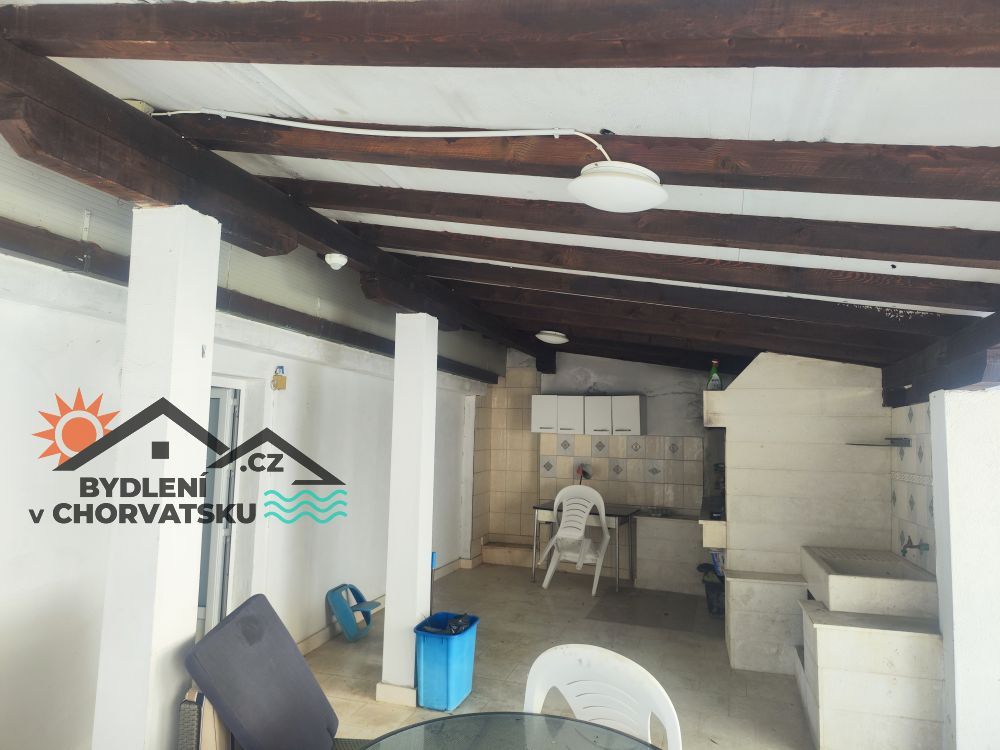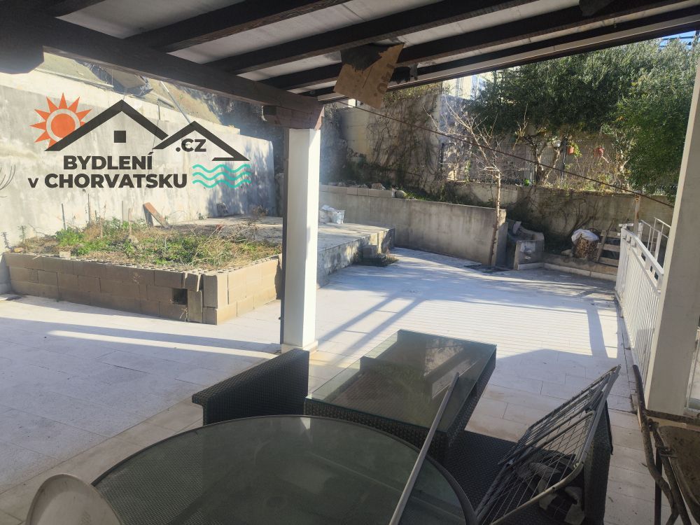 V Podstraně, střediskové obci hned vedle Splitu, nabízíme k prodeji bytový dům s garáží a obchodním prostorem. Dům se nachází v první řadě u moře (přes cestu) a má parkování pro 8 aut před domem. V přízemí se nachází 5 metrů vysoký obchodní prostor, částečně vybavený galerií. Prostor má 92 m2. Ve zvýšeném přízemí se nachází byt s třemi ložnicemi, obývacím pokojem, kuchyní, dvěma koupelnami a velkou terasou. Byt má 145 m2, ústřední topení a dvě klimatizace. Do prvního patra se dostanete po vnitřním schodišti.