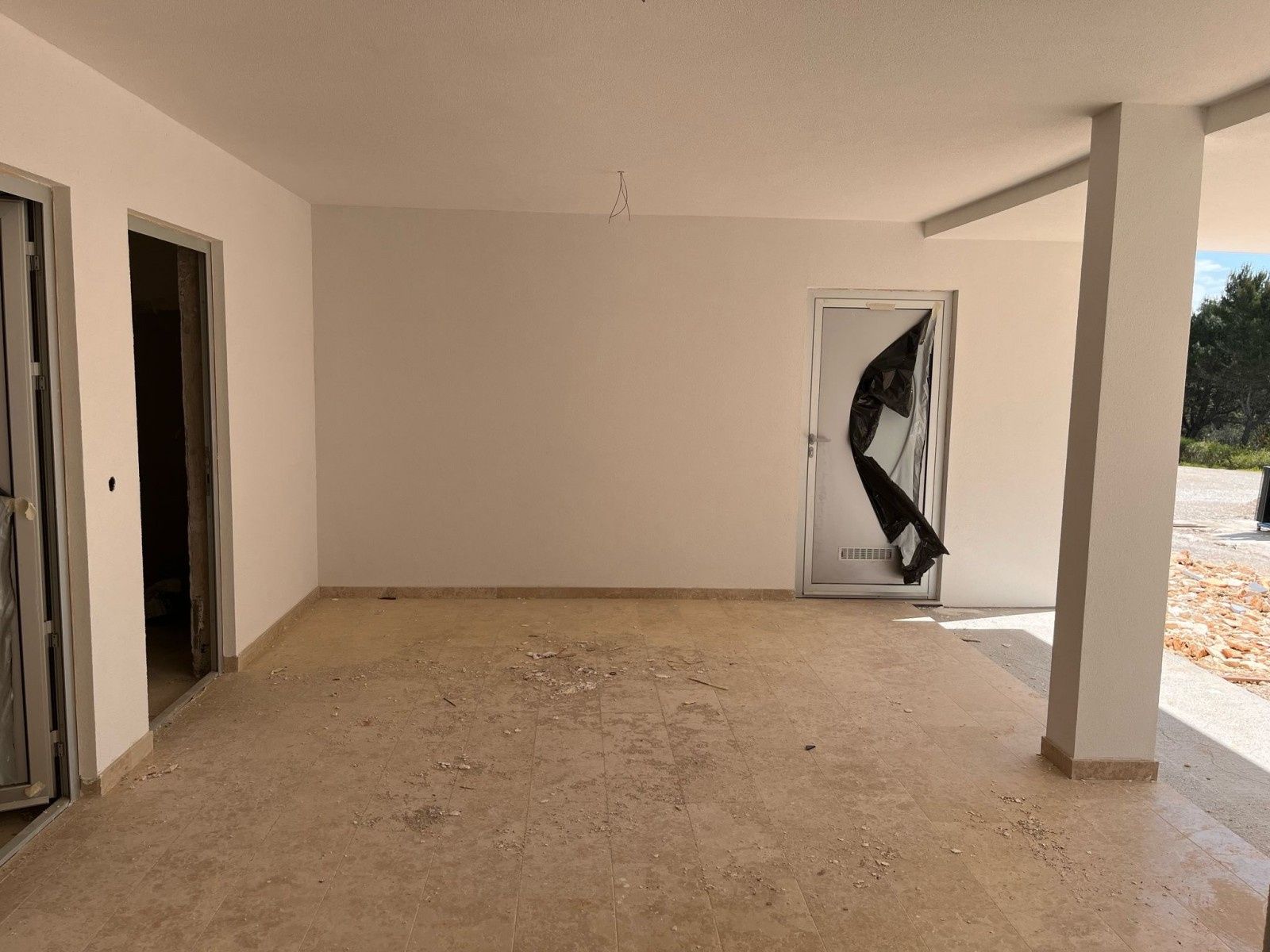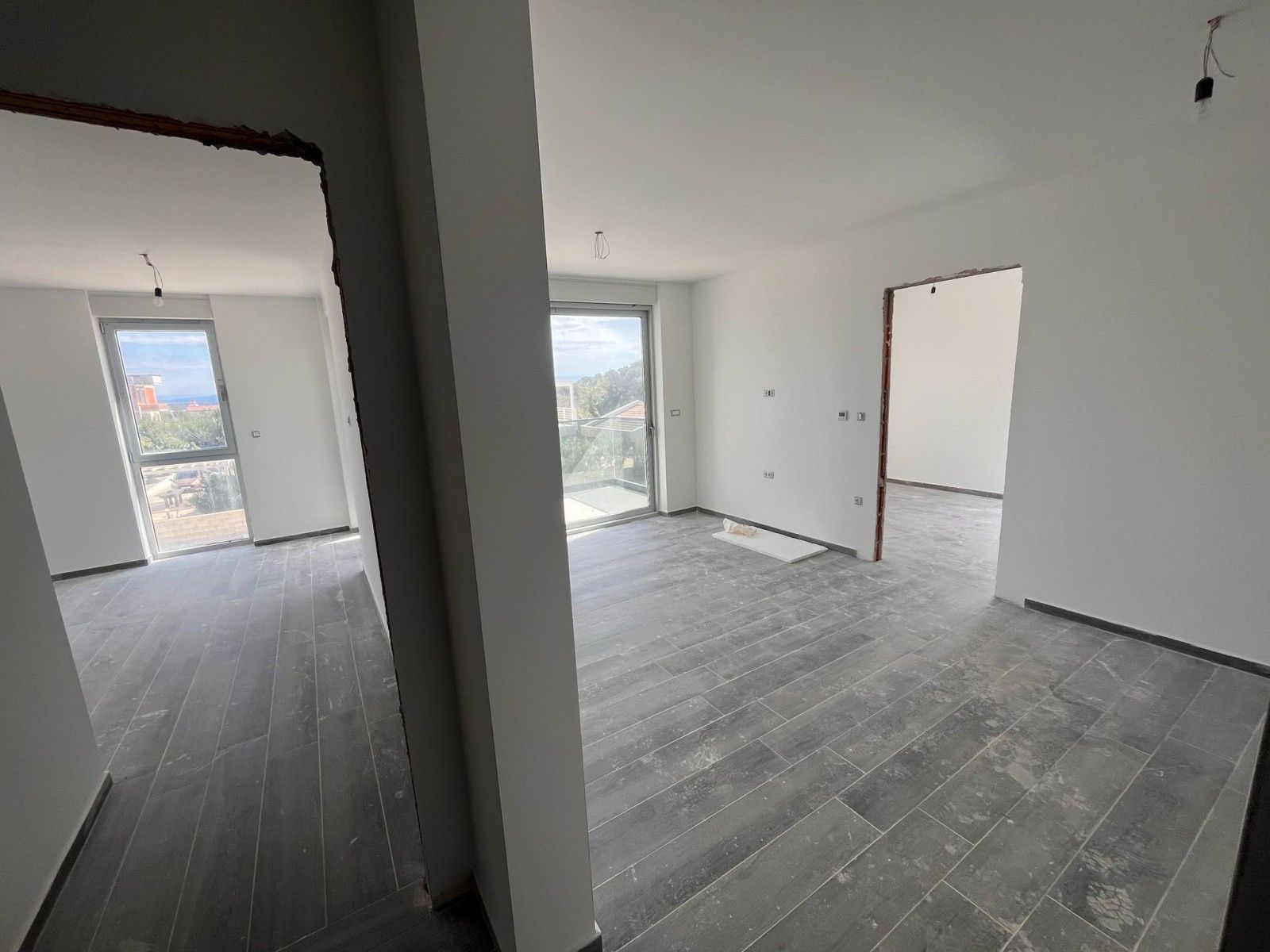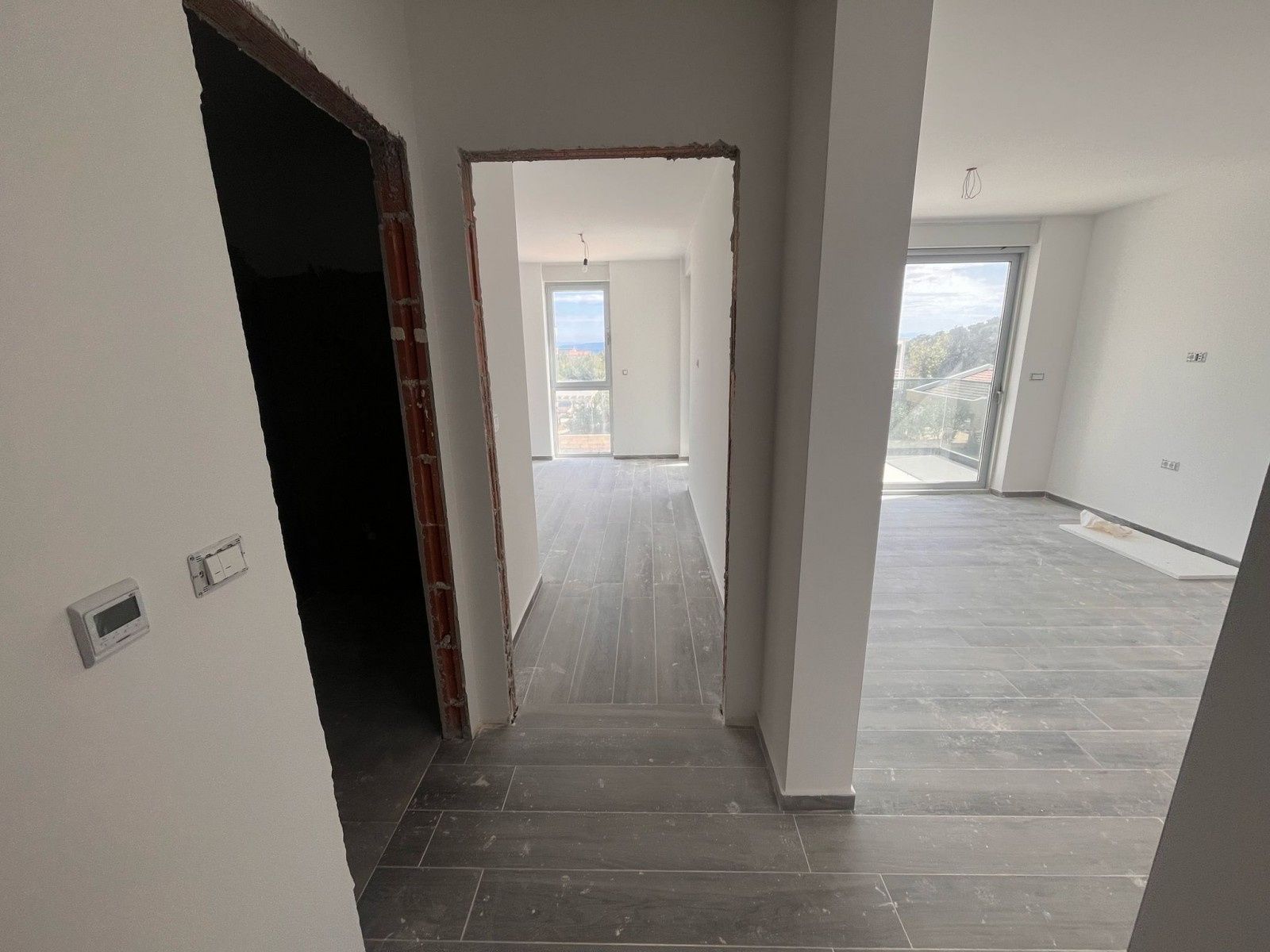 Novinka na trhu! Prodej bytu v novostavbě na skvělé lokalitě v Ližnjanu. Byt C5 o celkové ploše 59,53 m² se nachází v 1. patře nově postaveného bytového komplexu. Vnitřní plocha bytu činí 54,47 m² a skládá se z předsíně, koupelny, obývacího pokoje s kuchyní a jídelnou, 2 ložnic a zastřešené terasy. K bytu náleží parkovací místo PM8 – 3,12 m² a skladovací jednotka S1 – 1,94 m². V bytě byly již položeny dlaždice (kromě koupelny), stěny jsou natřeny, je nainstalována klimatizace. Byt by měl být zcela dokončen do jednoho měsíce.