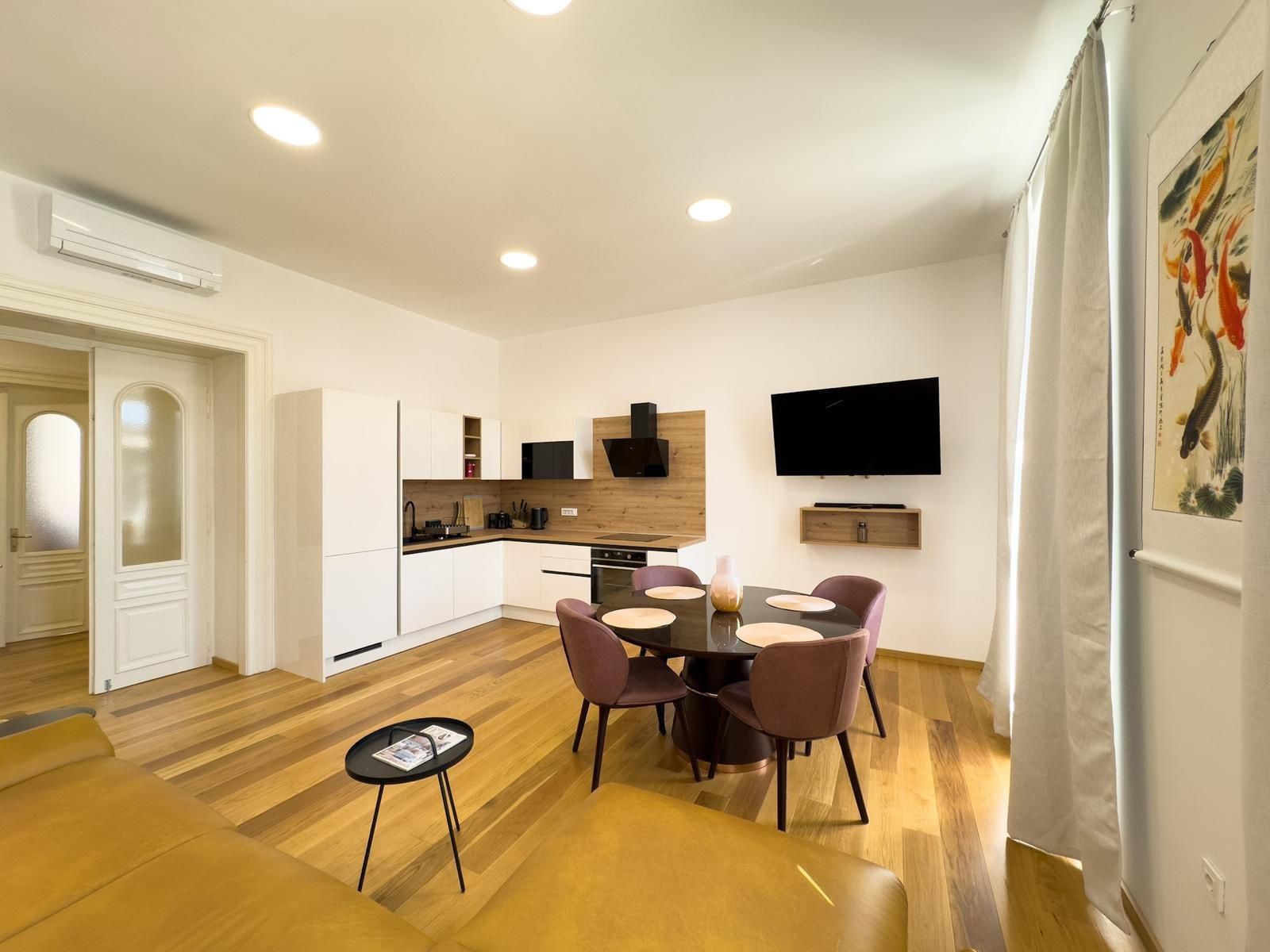 Na prodej krásný slunný byt v centru Puly, na městské tržnici v centru dění, ideální pro turistiku díky své výborné poloze. Byt má vysoké stropy, velké francouzské dveře s krásnými bordurami, které dodávají celému bytu punc elegance. Skládá se ze dvou ložnic se 2 koupelnami a prostorného obývacího pokoje a terasy 85 m2. Byt je po kompletní rekonstrukci, vybavený a připravený k nastěhování.