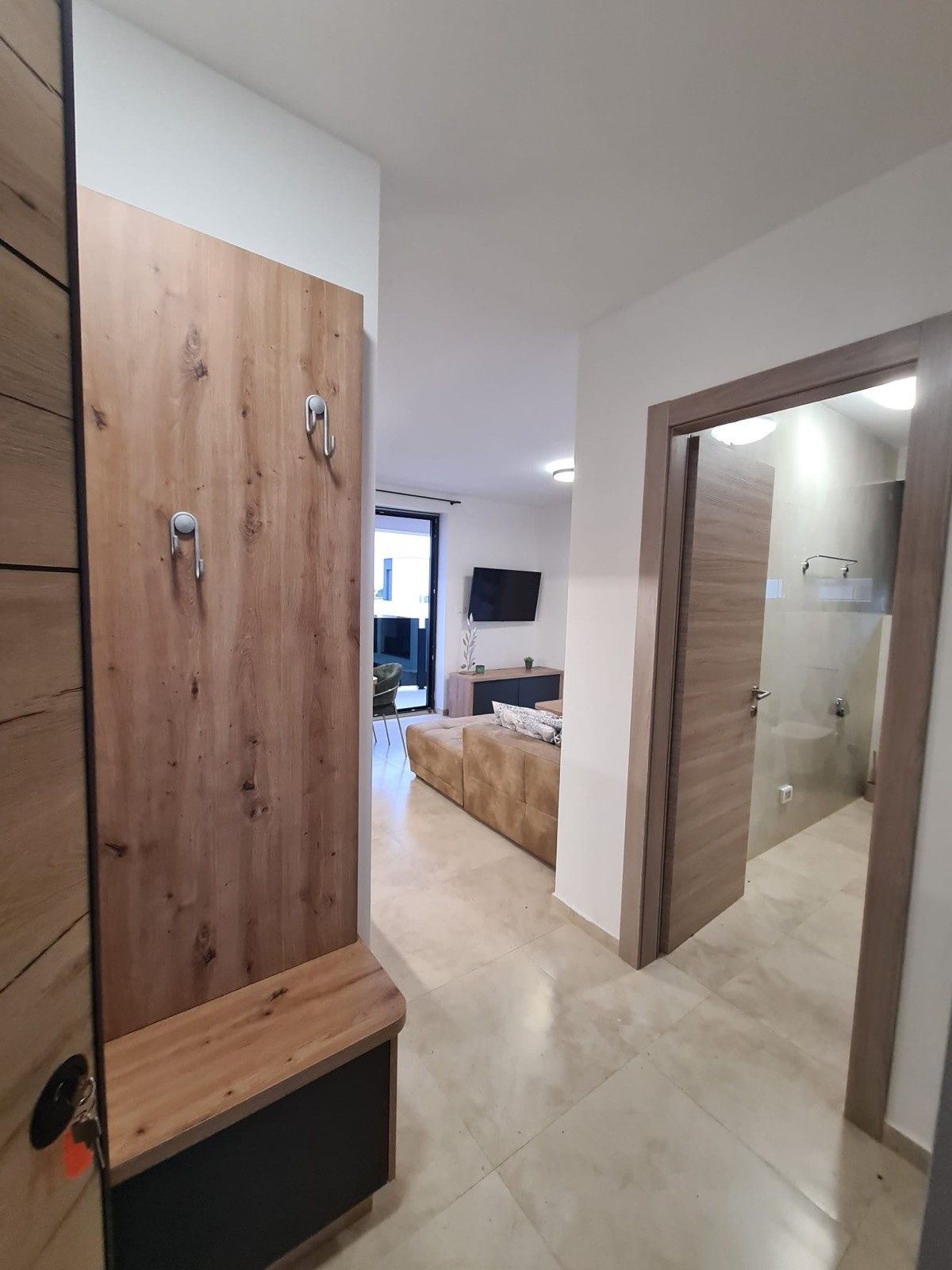 Nový rezidenční projekt situovaný na klidném a atraktivním místě v Medulinu, pouhých 500 metrů od pláže. Projekt zahrnuje samostatnou obytnou budovu s celkem šesti byty, rozloženými na přízemí, prvním a druhém patře, přičemž na každém podlaží jsou dva byty, což zajišťuje soukromí a příjemné bydlení. Nabízí se byt E5 ve druhém patře, funkčně uspořádaný, který zahrnuje chodbu s šatnou, dvě ložnice, koupelnu, obývací pokoj s kuchyní a jídelnou a krytou terasu. Čistá plocha bytu činí 59,26 m², k bytu náleží také parkovací místo označené E6 o velikosti 3,12 m², čímž celková čistá vypočítaná plocha činí 62,38 m². Byt je kompletně zařízený a vybavený a prodává se tak, připravený k nastěhování nebo turistickému pronájmu bez dalších investic. V každé ložnici je klimatizace, stejně jako v obývacím pokoji (celkem tři klimatizace), a na parkovacím místě je připraveno zařízení pro nabíjení elektrických automobilů. Lokalita je mimořádně praktická – obchody jsou vzdálené 900 metrů a v těsné blízkosti se nachází základní škola, mateřská škola, banka, kavárny a restaurace. Tato nemovitost představuje skvělou příležitost pro klidný rodinný život, odpočinek nebo bezpečnou investici do turismu na jednom z nejvyhledávanějších míst v jižní Istrii.