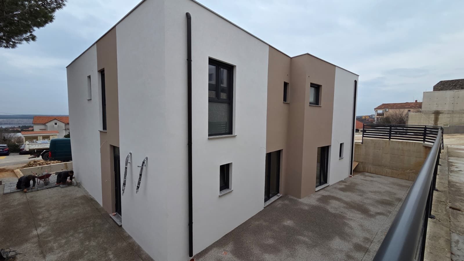 CRIKVENICA, JADRANOVO - Moderní dvojdomek s bazénem a výhledem na moře, 135 m2 V příjemném prostředí Jadranova se nachází moderní dvojdomek s bazénem a otevřeným výhledem na Kvarnerský záliv a ostrov Krk. Lokalita nabízí klid a soukromí a zároveň je dobře dopravní dostupností a nachází se jen pár minut jízdy od Crikvenice a veškeré důležité občanské vybavenosti. Projekt je navržen tak, aby každá polovina fungovala jako zcela nezávislá bytová jednotka rozložená na dvou podlažích s vlastním bazénem, zahradou a zajištěnými parkovacími místy. V přízemí se nachází otevřený obývací prostor, který propojuje obývací pokoj, kuchyň a jídelnu s další ložnicí a koupelnou. Z obývacího prostoru je vstup na terasu a sluneční terasu, které harmonicky propojují interiér s venkovním prostorem. První patro je vyhrazeno pro tři ložnice, každá s vlastní koupelnou a přístupem na lodžii s výhledem na moře. Nemovitost je ve vysoké nedokončené fázi a inzerovaná cena se vztahuje k aktuálnímu stupni dokončení. S postupem výstavby směrem k finálním pracím bude cena upravena podle fáze projektu. To dává kupujícímu možnost investovat v dřívější fázi a dle vlastního přání se podílet na výběru dokončovacích materiálů a dekorací. Vzhledem ke své atraktivní poloze, modernímu projektu a výhledu na moře představuje nemovitost vynikající investiční příležitost pro turistický pronájem, ale také velmi kvalitní řešení pro klidný rodinný život u pobřeží. Existuje možnost koupit jednu polovinu nebo obě jednotky v celku. Díky moderní architektuře, atraktivní mikrolokaci a výhledu na moře představuje tento dvojdomek vynikající potenciál pro turistický pronájem, ale také pro kvalitní a klidný rodinný život u pobřeží. Je možné koupit jednu polovinu nebo obě jednotky v celku, v závislosti na plánech budoucího majitele. Vážení potenciální kupující, těší nás, že máte zájem o nemovitosti z naší nabídky. Pro více informací a dohodu o prohlídce nemovitosti nás neváhejte kontaktovat. Prohlídka nemovitosti je možná pouze s podpisem Smlouvy o realitním zprostředkování.