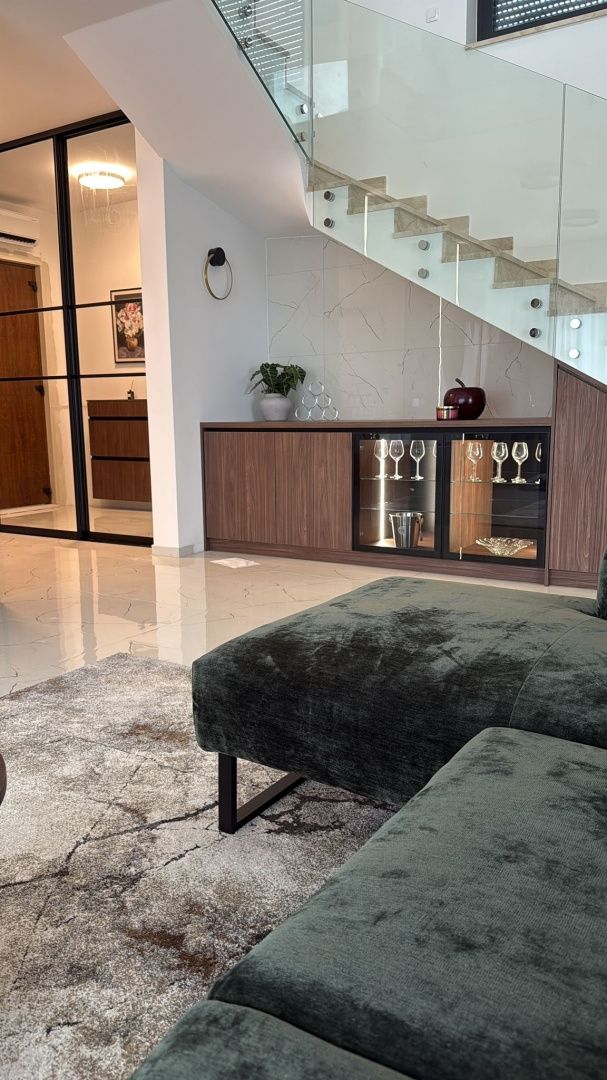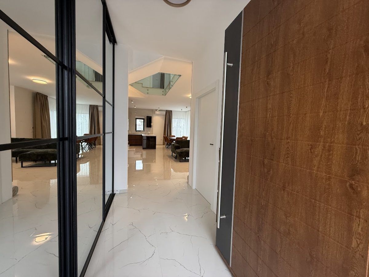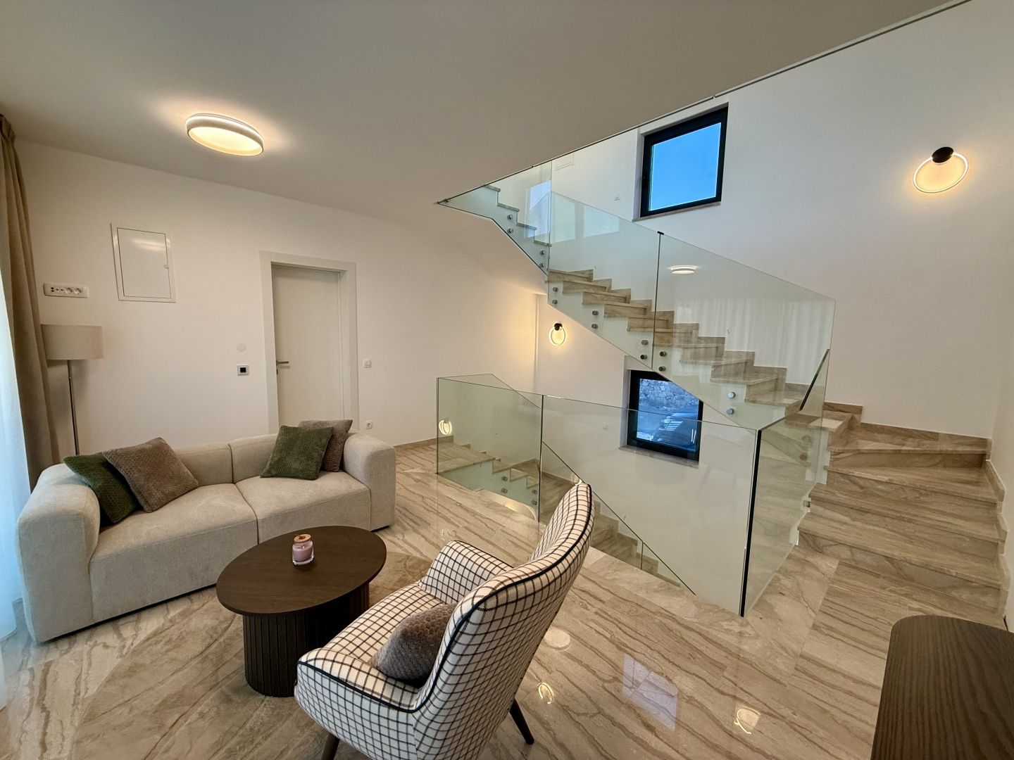 DALMÁCIE, RAŽANJ - Elegantní "diamantová" vila v zátoce Stivašnica Existují nemovitosti, které jsou krásné – a existují i takové, které pocítíte, jakmile je uvidíte. Tato vila je přesně tou. Nachází se v klidné a exkluzivní zátoce Stivašnica, pouhých 100 metrů od moře, a nabízí otevřený a uklidňující výhled na Jadran z každého patra. V jedné z nejžádanějších mikrolokací na dalmatském pobřeží, v zátoce Stivašnica nedaleko Rogoznice, se nachází vila, která nekompromisně kombinuje moderní architekturu, soukromí a špičkový komfort. Pouhých 100 metrů od moře nabízí tato jedinečná nemovitost otevřený a ničím nerušený výhled na Jadran z absolutně každého patra. - Plocha: 300 m² - 3 ložnice - 4 koupelny - 2 parkovací místa - Rok výstavby: 2023. Architektonický koncept vily je založen na eleganci linií a maximálním využití přirozeného světla. Poloha na konci klidné ulice zajišťuje naprostou diskrétnost a pocit soukromí, který je dnes vzácný. Přízemí je navrženo jako reprezentativní obytný prostor s otevřeným konceptem, kde se obývací pokoj, kuchyň a jídelna prolínají do harmonického celku s přímým přístupem na prostornou terasu. Prosklené stěny po celé výšce domu stírají hranici mezi interiérem a exteriérem a vytvářejí dojem souvislého prostoru. Exteriér je navržen pro požitek na nejvyšší úrovni – nekonečný bazén ve tvaru U s integrovanou vířivkou, venkovní kuchyně a jídelna poskytují ideální prostředí pro soukromá setkání nebo elegantní večerní posezení u moře. Interiér dále zdůrazňuje působivá galerie s plovoucím nerezovým schodištěm, které spojuje všechna patra a dodává prostoru rozpoznatelný architektonický rukopis. V prvním patře se nacházejí dvě luxusní ložnice s vlastními koupelnami a přístupem na terasu, zatímco další galerijní prostor umožňuje přizpůsobení se životnímu stylu majitele – ať už jako soukromé fitness centrum, lounge zóna nebo pracovní prostor. Celé druhé patro je vyhrazeno pro hlavní apartmá – intimní oázu s prostornou terasou a soukromou vířivkou, ideální pro úplnou relaxaci s panoramatickým výhledem na moře. Výška stropů až 3 metry ve všech patrech dále přispívá k pocitu vzdušnosti a exkluzivity prostoru. Vybavení: spotřebiče Bosch, kamery HIK, alarm Ajax, klimatizace Samsung, podlahové vytápění Magnum, bazénová technologie Astralpool (vytápění a chlazení bazénu elektrolýzou), hliníková truhlářská dílna, možnost garáže a pergoly po domluvě. Cena zahrnuje nábytek, prostředí, dekorace a spotřebiče. Zátoka Stivašnica je známá jako klidná a elitní rezidenční oblast, zatímco Rogoznica nabízí dokonalou rovnováhu mezi autentickým středomořským šarmem a moderní infrastrukturou – včetně slavné Mariny Frapa, špičkových restaurací a dobře udržovaných promenád. V bezprostřední blízkosti se nachází maják Mulo, symbol této oblasti a přírodní fenomén setkání mořských proudů, který zajišťuje výjimečnou čistotu moře. Letiště Split je vzdálené pouhých 35 minut jízdy autem, což činí tuto nemovitost z investičního hlediska mimořádně atraktivní. Vila představuje na trhu vzácnou příležitost – dokonalou syntézu architektury, lokality a životního stylu, určenou pro kupující, kteří se nespokojí s průměrem.