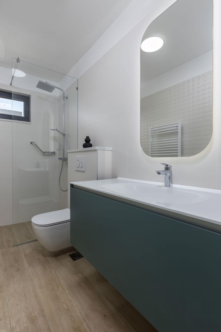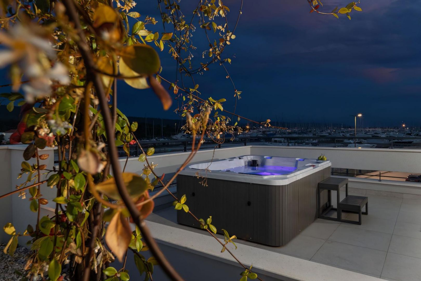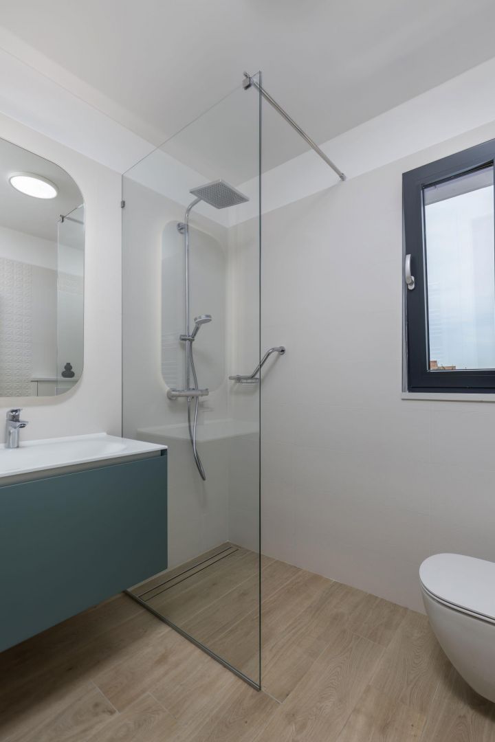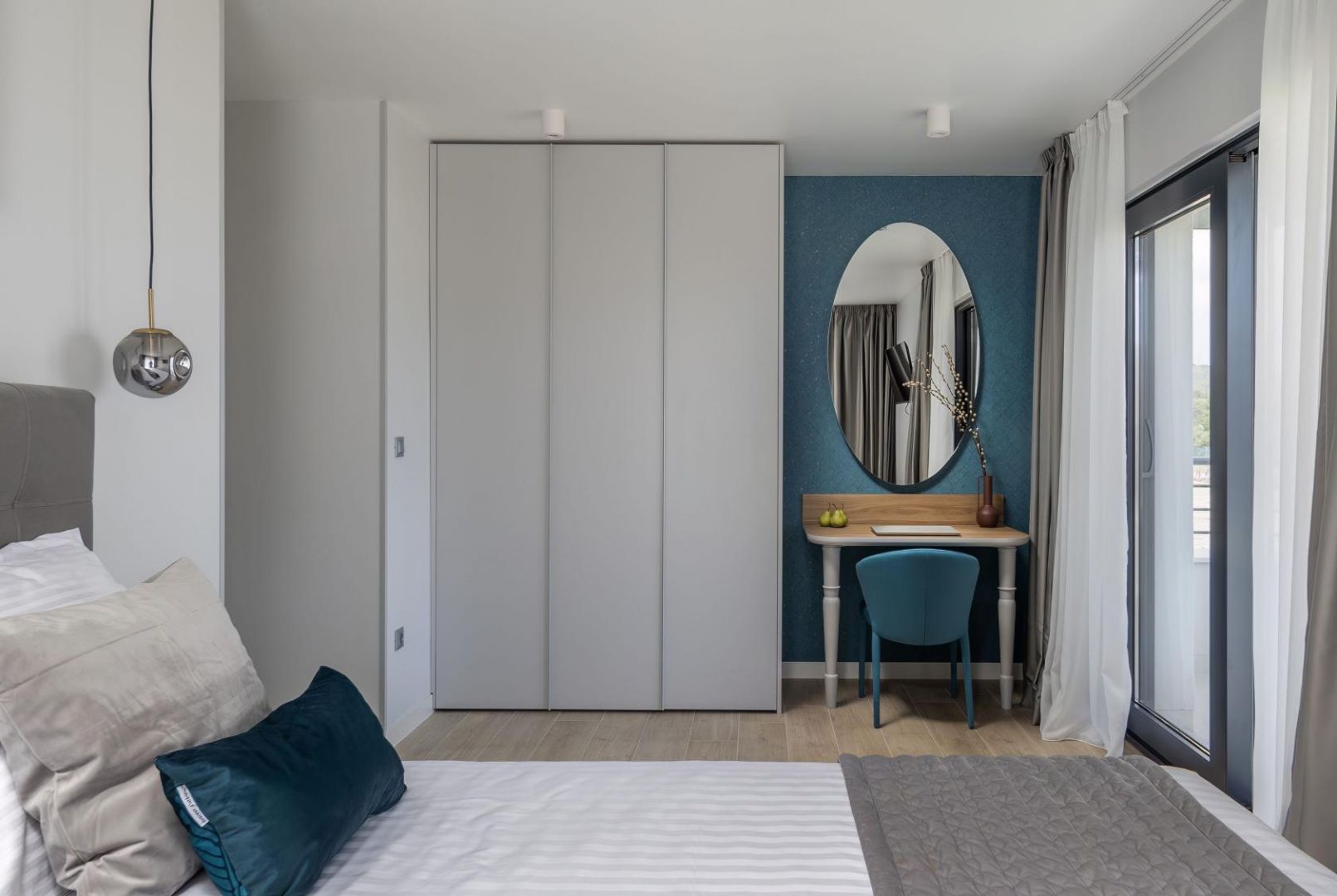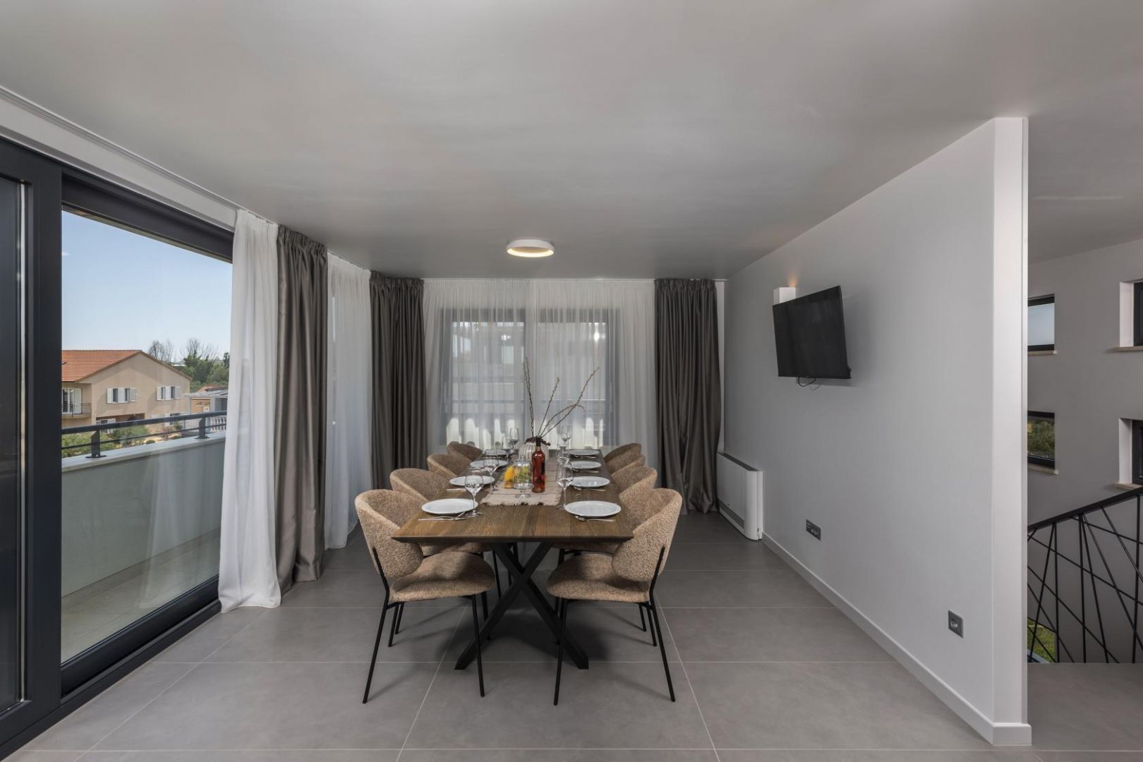 V patře se nacházejí tři vzdušné ložnice, každá s vlastní koupelnou a balkonem s výhledem na moře a okolní krajinu. Nejvyšší patro je vyhrazeno pro dokonalý požitek – prostorné, částečně kryté terasy s vířivkou a pohodlným obývacím pokojem jsou ideální pro večerní relaxaci se západem slunce a výhledem na zadarské souostroví.