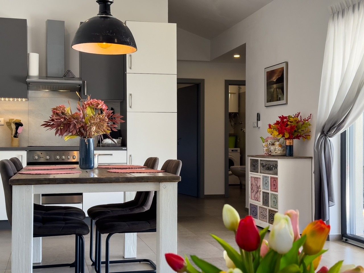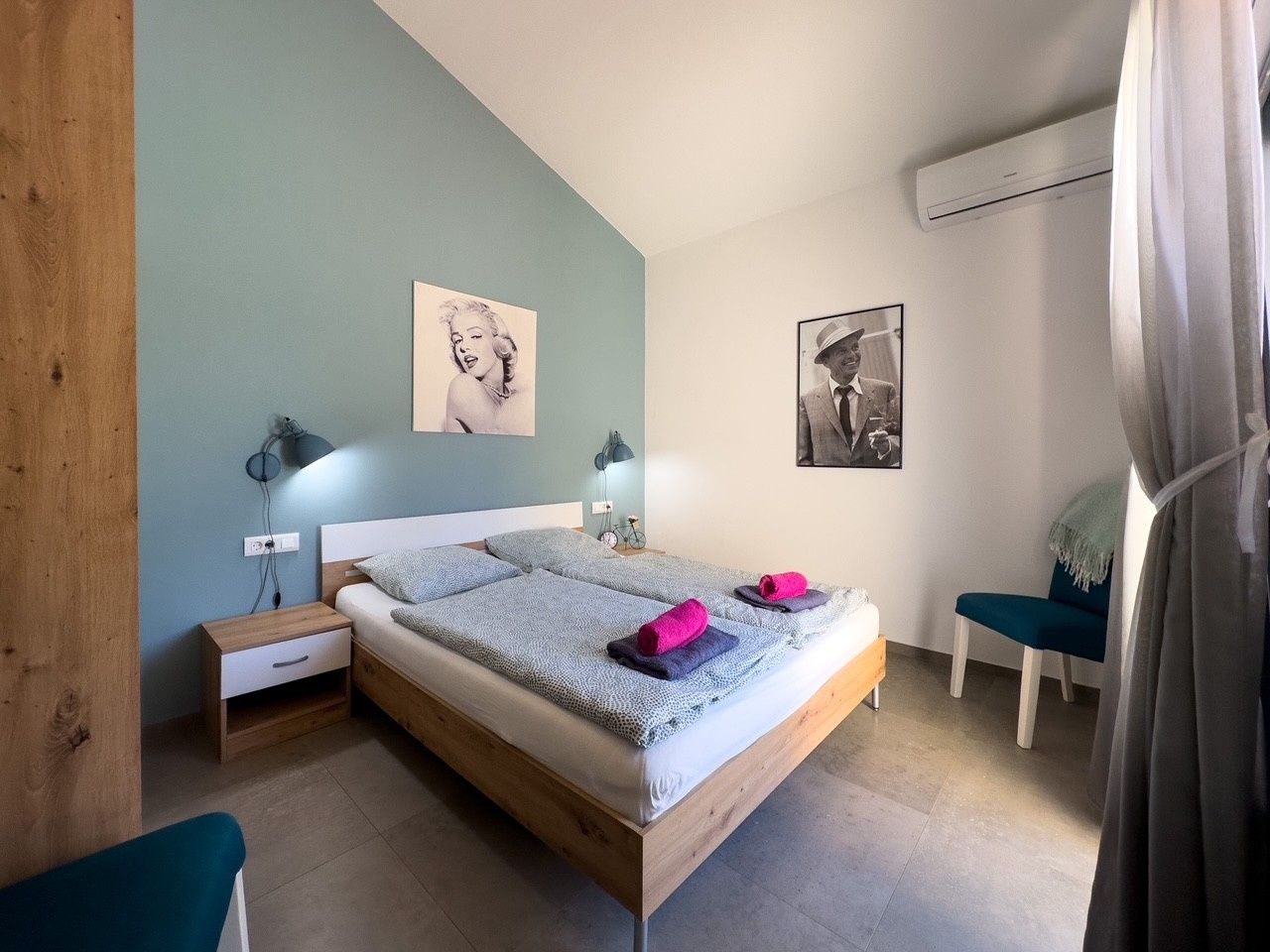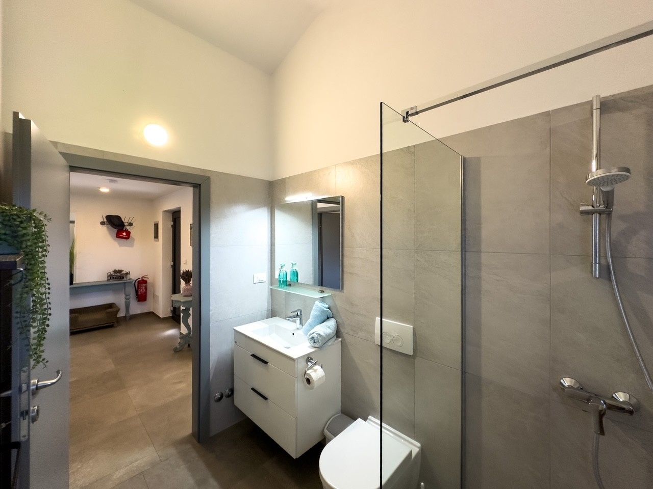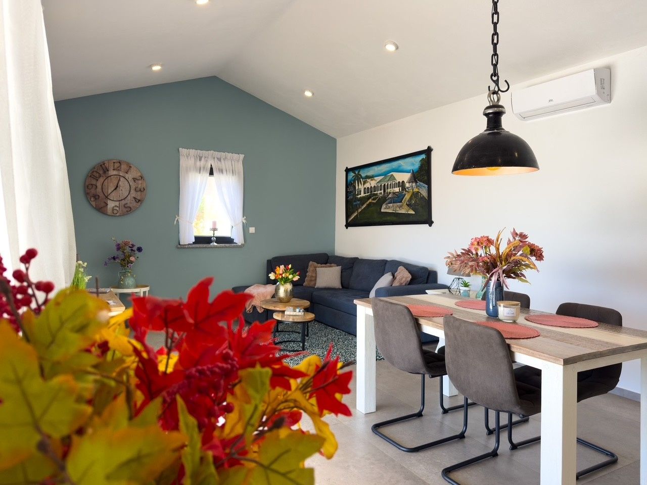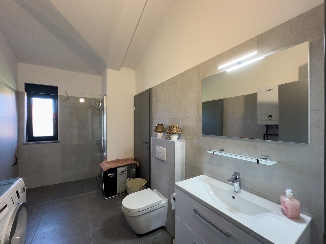 Prodáváme dvě spojené domy. Každý dům má vlastní bazén. Větší dům (120 m²) se skládá ze tří ložnic, jedna má vlastní koupelnu, zatímco další dvě sdílejí koupelnu. Kuchyň, jídelna a obývací pokoj, ze kterého je výhled na Učku a zeleň. Podlahové topení, trojité sklo, krb, klimatizace v každé místnosti. Bazén s elektrolýzou, parkování pro více vozidel. Menší dům (84 m²) se skládá ze dvou ložnic, koupelny, toalety, kuchyně, jídelny a obývacího pokoje, ze kterého se vychází na zahradu a bazén. Klimatizace v každé místnosti, parkování pro více vozidel s nabíječkou pro elektrická auta. Oba domy se prodávají kompletně vybavené a připravené k bydlení nebo turistickému pronájmu.