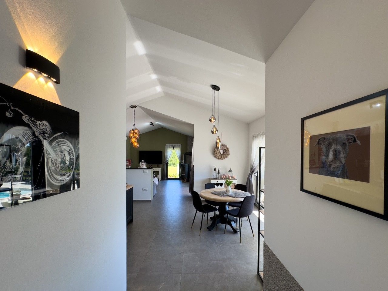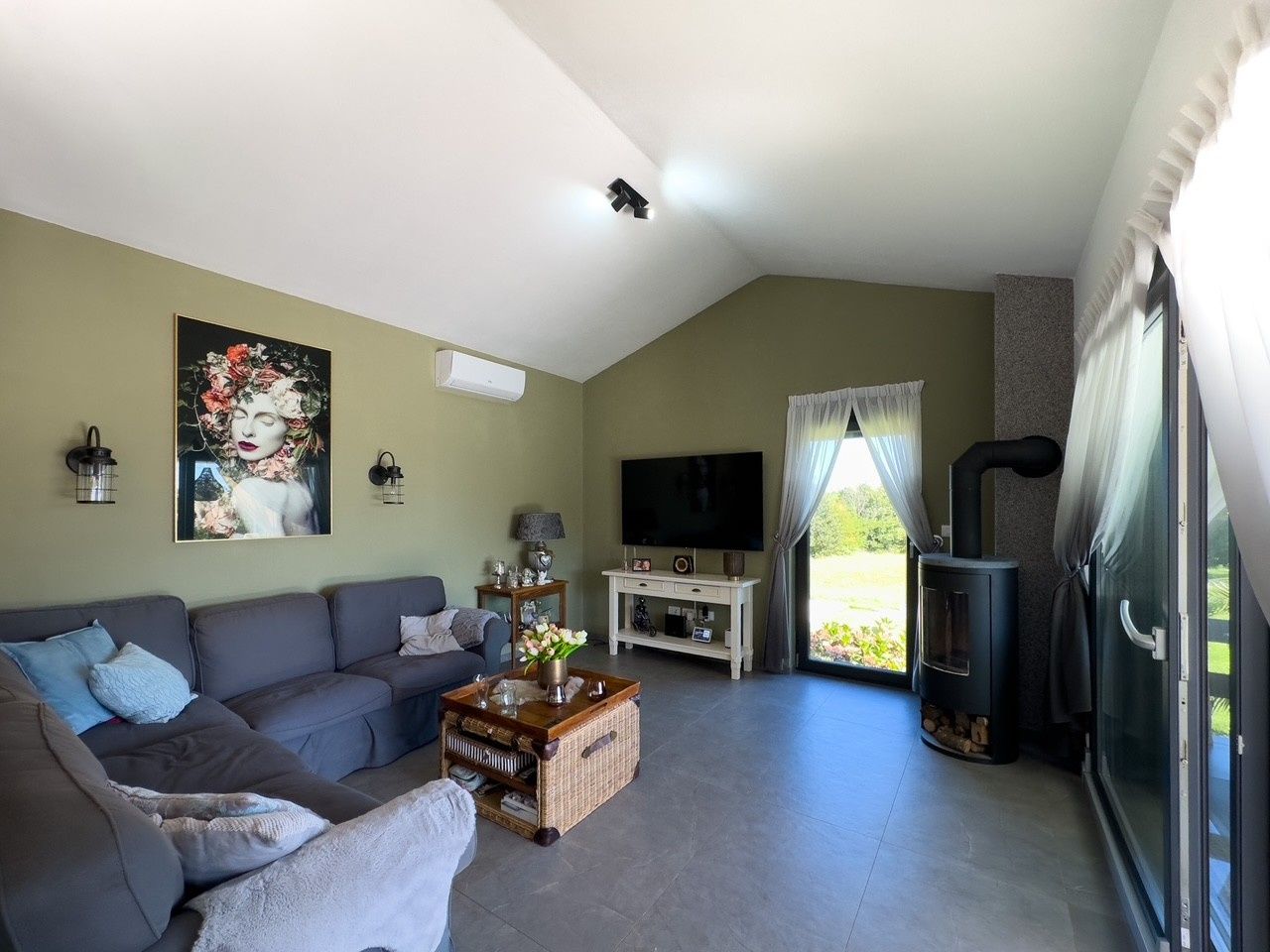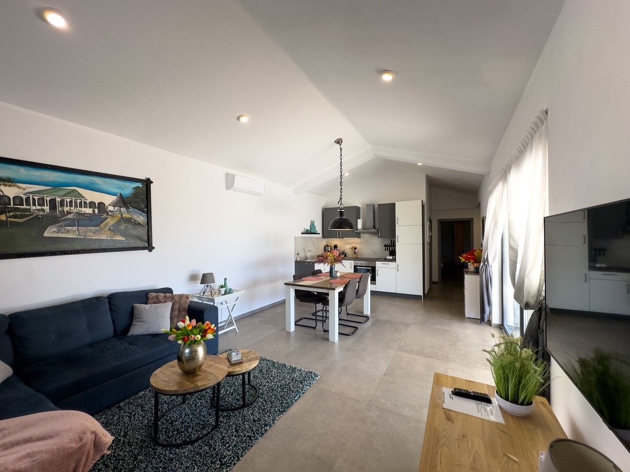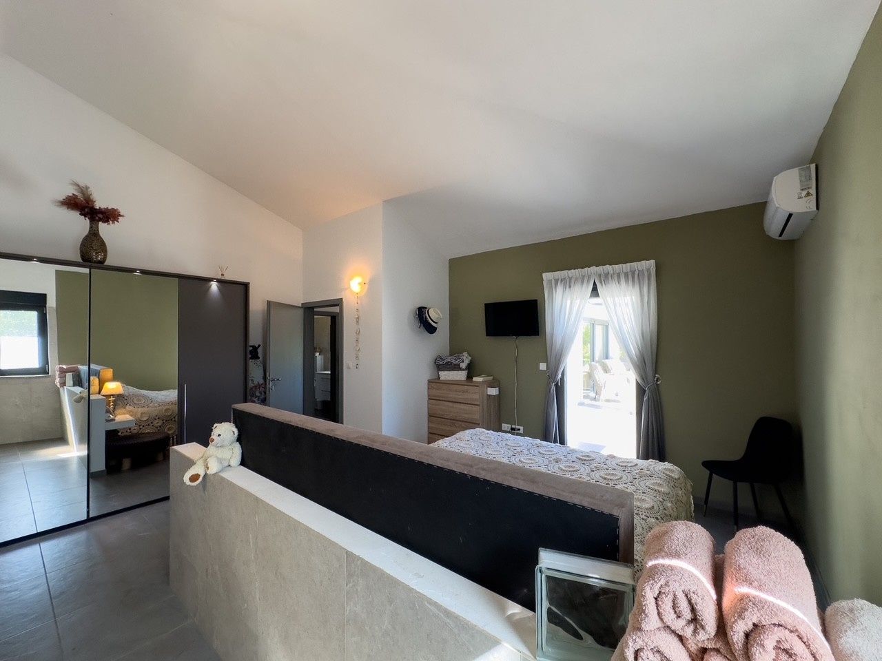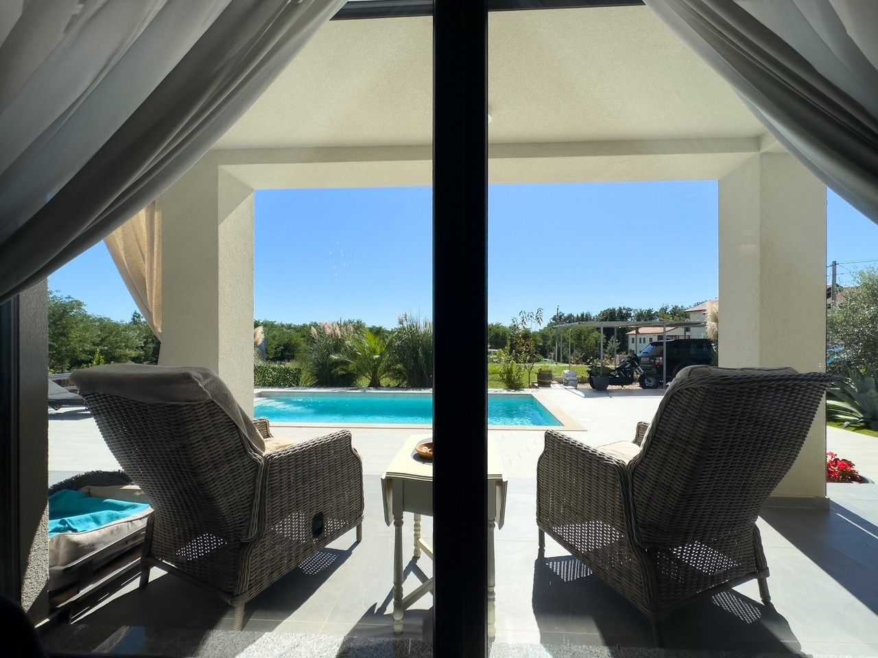 Prodáváme dvě spojené domy. Každý dům má vlastní bazén. Větší dům (120 m²) se skládá ze tří ložnic, jedna má vlastní koupelnu, zatímco další dvě sdílejí koupelnu. Kuchyň, jídelna a obývací pokoj, ze kterého je výhled na Učku a zeleň. Podlahové topení, trojité sklo, krb, klimatizace v každé místnosti. Bazén s elektrolýzou, parkování pro více vozidel. Menší dům (84 m²) se skládá ze dvou ložnic, koupelny, toalety, kuchyně, jídelny a obývacího pokoje, ze kterého se vychází na zahradu a bazén. Klimatizace v každé místnosti, parkování pro více vozidel s nabíječkou pro elektrická auta. Oba domy se prodávají kompletně vybavené a připravené k bydlení nebo turistickému pronájmu.