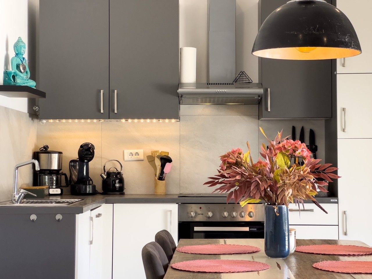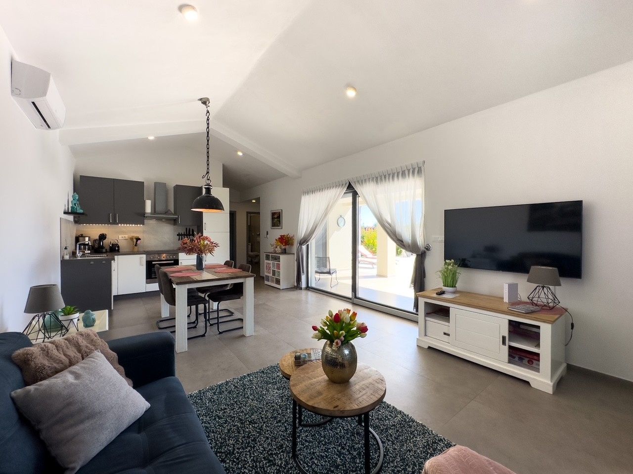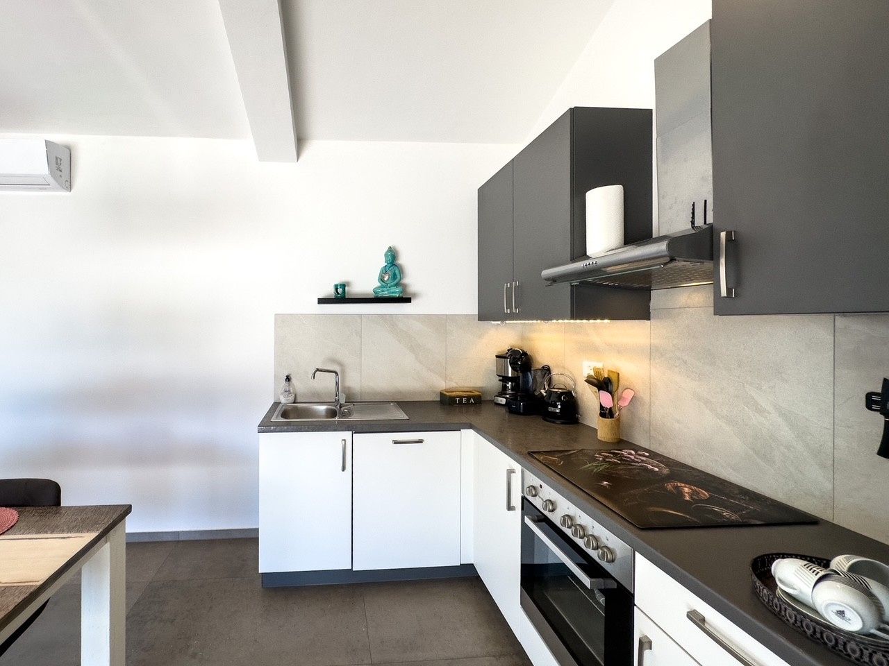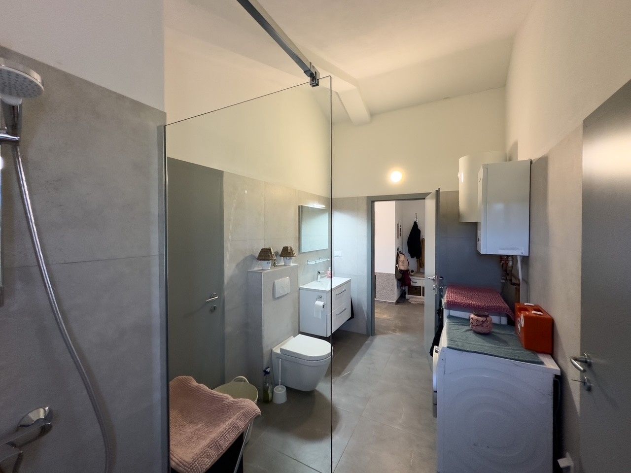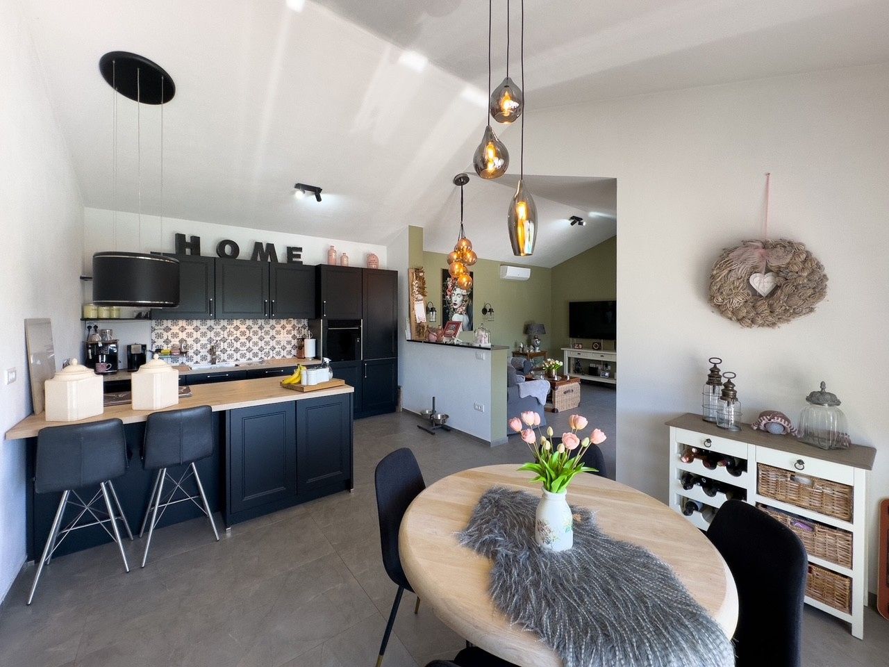 Prodáváme dvě spojené domy. Každý dům má vlastní bazén. Větší dům (120 m²) se skládá ze tří ložnic, jedna má vlastní koupelnu, zatímco další dvě sdílejí koupelnu. Kuchyň, jídelna a obývací pokoj, ze kterého je výhled na Učku a zeleň. Podlahové topení, trojité sklo, krb, klimatizace v každé místnosti. Bazén s elektrolýzou, parkování pro více vozidel. Menší dům (84 m²) se skládá ze dvou ložnic, koupelny, toalety, kuchyně, jídelny a obývacího pokoje, ze kterého se vychází na zahradu a bazén. Klimatizace v každé místnosti, parkování pro více vozidel s nabíječkou pro elektrická auta. Oba domy se prodávají kompletně vybavené a připravené k bydlení nebo turistickému pronájmu.