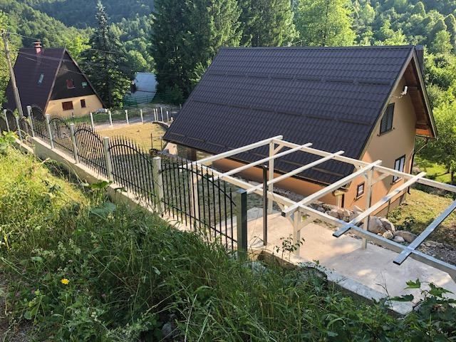 GORSKI KOTAR, ČABAR - Chata obklopená přírodou V klidném a zeleném prostředí regionu Gerovo, v samém srdci Gorského kotaru, se nachází tato nová a funkční chata, která poskytuje naprosté soukromí a autentický zážitek z přírody. Obklopena lesy a nedotčenou krajinou je ideálním místem k úniku z každodenního života města, ale také pro celoroční pobyt ve zdravém a klidném prostředí. Poloha je obzvláště atraktivní, protože se nachází v blízkosti Národního parku Risnjak a pramen řeky Kupy je vzdálen jen asi tři kilometry, což z této nemovitosti činí ideální výchozí bod pro pěší turistiku, procházky a užívání si přírody ve všech ročních obdobích. Chata má 88,27 m² obytné plochy rozložené na dvou podlažích, přízemí a podkroví, a další hodnotu poskytuje krytá terasa o rozloze 28 m², která umožňuje příjemný pobyt venku bez ohledu na povětrnostní podmínky. V přízemí se nachází otevřený koncept kuchyně, jídelny a obývacího pokoje, který vytváří pocit vzdušnosti a tepla domova, zatímco koupelna doplňuje funkčnost prostoru. Obývací prostor se otevírá na krytou terasu s výhledem do zeleně, ideální pro ranní kávu nebo večerní relaxaci. Půda je určena k odpočinku a soukromí a nachází se zde dvě ložnice, které poskytují klid a příjemný pobyt, s další krytou terasou s výhledem do přírody, která dále zdůrazňuje zvláštní charakter této nemovitosti. Dům je nově postavený, vybavený všemi potřebnými přípojkami a má kryté parkovací místo pro dvě auta a systém video dohledu, který zajišťuje dodatečnou bezpečnost a pohodlí. Dokumentace je úhledná a kompletní, včetně stavebního a užívacího povolení, energetického průkazu a úhledného listu vlastnictví, což kupujícímu zaručuje bezpečný a snadný nákup. Tato nemovitost není jen víkendový dům, ale příležitost k vytvoření vlastní oázy klidu v jedné z nejkrásnějších částí Chorvatska, ať už pro osobní potěšení nebo jako investici s potenciálem pro turistický pronájem.