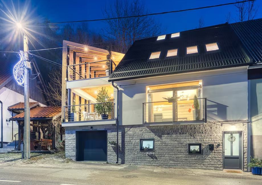 GORSKI KOTAR, FUŽINE - Horský dům s wellness a výhledem na jezero, 180 m2 V zeleném srdci Gorského kotaru, obklopený čerstvým horským vzduchem, se nachází kompletně zrekonstruovaný a moderně navržený dům, který spojuje pohodlí a přírodu do harmonického celku. Nachází se ve Fužinách, jen pár minut od centra města, a přesto dostatečně odlehlý, aby poskytoval klid a otevřený výhled na jezero a les. Dům je rozdělen do několika pater, která jsou propojena vnitřním schodištěm, čímž vzniká dynamické, ale funkční uspořádání. V přízemí se nachází prostor navržený jako soukromá relaxační zóna se saunou a vířivkou, dalším kuchyňským koutem a koupelnou. Vlastní zdroj vody mu dodává zvláštní hodnotu, což je skutečná rarita, která této nemovitosti dodává další autenticitu a praktičnost. Hlavní obytné patro je navrženo jako otevřený prostor, ve kterém se přirozeně propojuje obývací pokoj, kuchyň a jídelna. Krb na dřevo vytváří v zimních měsících teplou atmosféru, zatímco podlahové vytápění a tepelné čerpadlo zajišťují rovnoměrný komfort po celý rok. Obývací prostor se otevírá na krytou terasu s letní kuchyní a grilem, ideální pro společenské akce, zatímco se v dálce třpytí barvy jezera. V horních patrech se nacházejí prostorné ložnice s vlastními koupelnami, zatímco v podkroví je další pokoj s oddělenými lůžky a samostatnou toaletou. Dispozice umožňuje soukromí, ale také pocit spojení s celým domem. Dvě terasy dále rozšiřují obytný prostor směrem k přírodě a parkovací místo a garáž o rozměrech přibližně 4 x 3,5 metru doplňují funkčnost. Další parkování je k dispozici přímo přes ulici. Lokalita nabízí výjimečné dopravní spojení. Delnice jsou vzdáleny pouhých patnáct minut jízdy autem, zatímco Platak je ideální pro milovníky lyžování a turistiky. Do Rijeky se dostanete za necelou půlhodinu a do Záhřebu přibližně hodinu jízdy, což z této nemovitosti dělá perfektní únik z každodenního života města. Zima přináší sněhovou pokrývku a ticho, které přerušuje jen praskání dřeva v krbu, zatímco léto otevírá sezónu koupání, procházek u jezera a večerů na terase pod hvězdnou oblohou. Tento dům není jen místem k bydlení, ale celoročním útočištěm, kde se střídají roční období, každé s vlastním kouzlem. Vážení potenciální kupující, těší nás, že máte zájem o nemovitosti z naší nabídky. Pro více informací a pro domluvení prohlídky nemovitosti nás neváhejte kontaktovat. Prohlídka nemovitosti je možná pouze s podpisem Smlouvy o realitním zprostředkování.