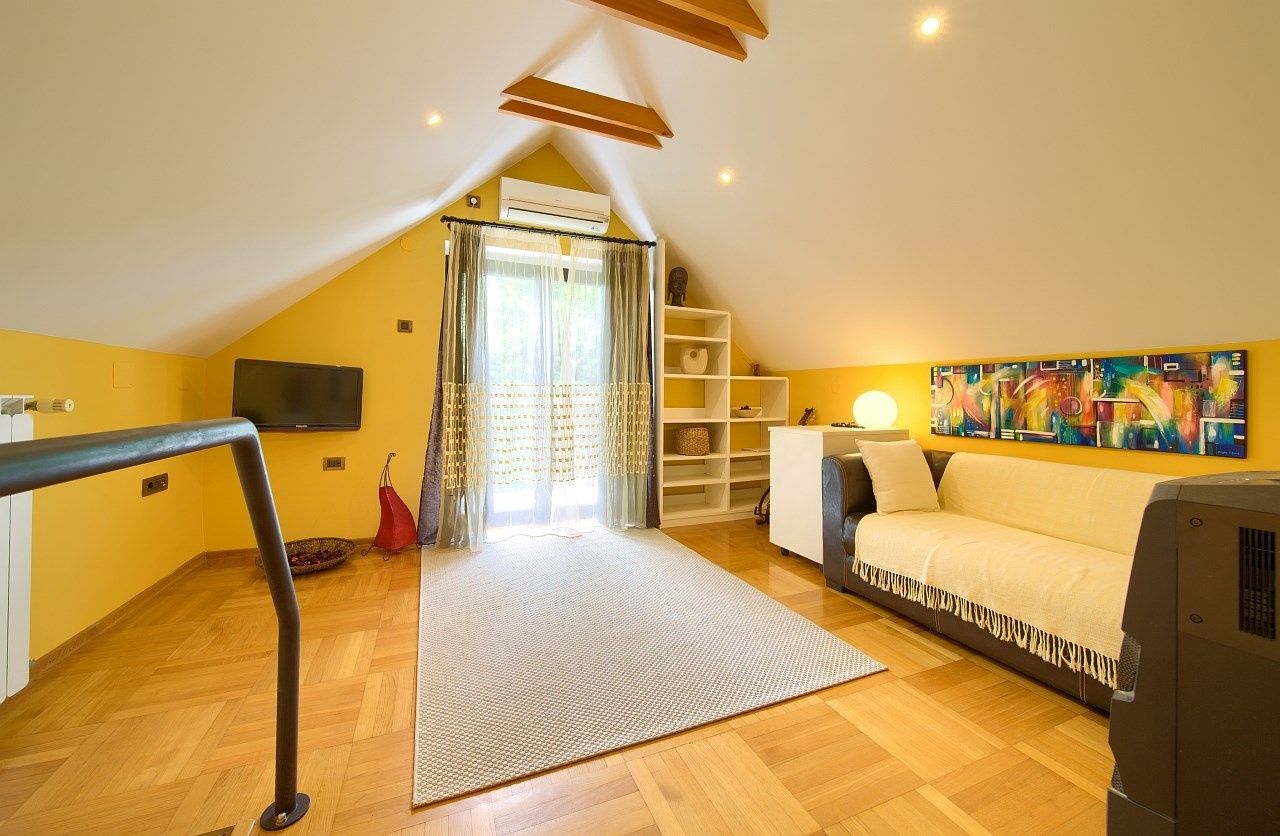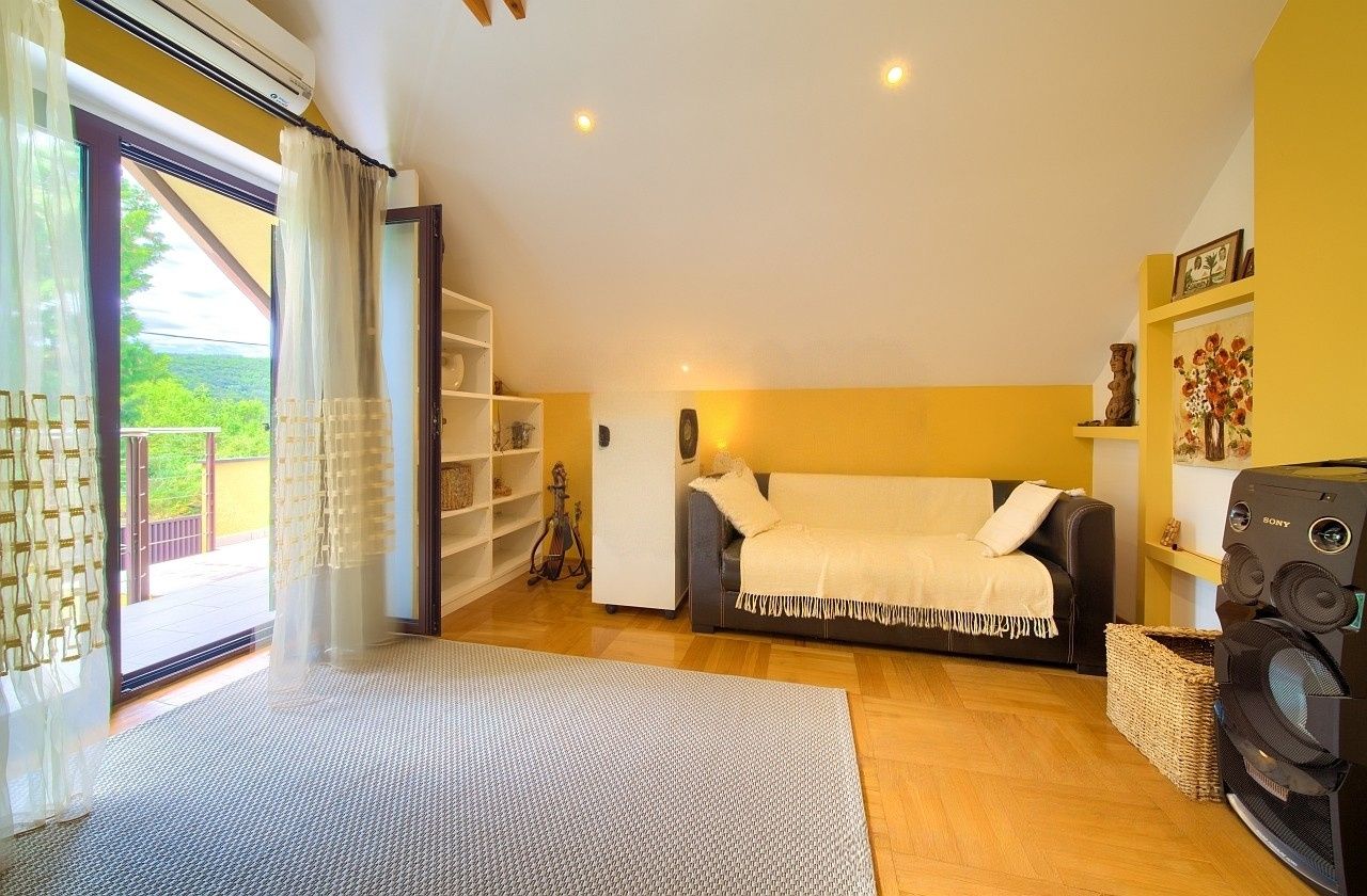 GROBNIK - Dům v lese, naprostý klid, čistý vzduch a perfektní spojení s mořem, horami a piknikovými místy, 198 m2 198 m2 obytné plochy na téměř 1200 m² oplocené zahrady - pouhých 15 minut od Rijeky Obklopena hustým lesem, daleko od městského hluku, se prodává vila na oploceném pozemku o rozloze téměř 1200 m2. Nachází se v nadmořské výšce 450 metrů, v přírodním prostředí s mimořádně čistým vzduchem, tato nemovitost nabízí ideální podmínky pro zdravý, uvolněný a klidný život - dostatečně daleko od městského shonu, přesto blízko veškeré důležité občanské vybavenosti. Dům se rozkládá na třech podlažích a nabízí celkem 198 m² obytné a užitné plochy. V suterénu se nachází speciálně izolovaná místnost s dvojitými stěnami, která může sloužit jako hudební studio, ale je také ideální pro studio, knihovnu, pracovní prostor nebo místnost pro koníčky. V přízemí se nachází kuchyň s jídelnou, jedna ložnice, koupelna s toaletou a garáž, zatímco ve vysokém podkroví se nachází obývací pokoj, další ložnice, další koupelna s toaletou a krytá terasa pro vychutnání si klidu lesní krajiny. Vytápění je zajištěno centrálním systémem s radiátory a další komfort zajišťují tři klimatizace a krb v suterénu. Vedle domu vede optický kabel, připojení je možné na vyžádání. Na všech fasádách jsou připraveny kamerové systémy a pohybové senzory a byly instalovány bezdrátové bezpečnostní kamery. Pozemek je oplocený a upravený jako zahradní park s pečlivě navrženou zelení, která zahrnuje různé rostliny, květiny a stromy. Velké terasy umožňují užívání si ve všech ročních obdobích. K dispozici jsou tři soukromá parkovací místa a garáž. Kromě hlavního domu se na pozemku nacházejí dvě další budovy - sklad (22 m²) a pomocná budova (13 m²). Lokalita nabízí řadu možností pro aktivní a přírodní život. Moře a pláže jsou vzdáleny asi patnáct minut, lyžařské středisko Platak a pikniková oblast jsou vzdáleny 20 minut a v blízkosti se nacházejí známé turistické destinace, jako je Opatija, Učka a závodní dráha Grobnik. Blízkost řeky Rječina a jejích pramenů také poskytuje zvláštní zážitek - ideální místo pro procházky, rekreaci a načerpání sil v nedotčené přírodě. Tato oblast je bohatá na turistické stezky, přírodní úkazy a historické detaily, což ji činí mimořádně atraktivní jak pro trvalé bydlení, tak pro občasné pobyty. Nachází se v blízkosti města Grobnik, oblasti známé svým pulzujícím kulturním životem a četnými akcemi. Město Rijeka, hlavní městské a dopravní centrum Kvarneru, je vzdáleno pouhých 15 minut jízdy autem a přístup na dálnici dále usnadňuje každodenní cestování. Tento dům není jen nemovitostí - je pozvánkou k kvalitnějšímu, klidnějšímu a zdravějšímu způsobu života v srdci přírody. Vážení potenciální kupující, těší nás, že máte zájem o nemovitosti z naší nabídky. Pro více informací a pro sjednání prohlídky nemovitosti nás prosím kontaktujte. Prohlídka nemovitosti je možná pouze s podpisem realitní smlouvy.