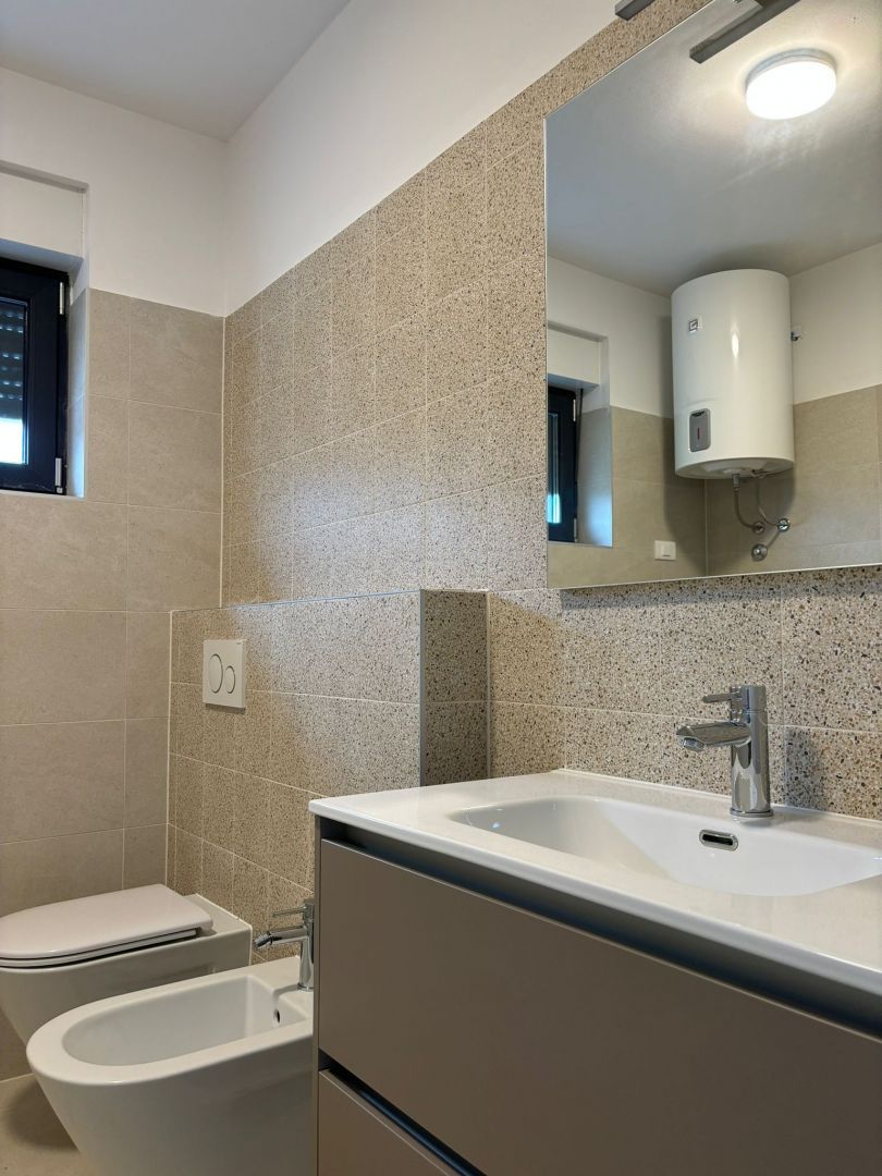 ISTRIA, PREMANTURA - Kvalitní novostavba s terasou a kompletní dokumentací! V nabídce reality představujeme kvalitní byt v novostavbě v menší zástavbě! Jedná se o byt postavený v roce 2024 a má kompletní dokumentaci. Byt se skládá ze vstupní haly, dvou ložnic, koupelny, toalety pro hosty a z chodby se vchází do otevřeného obývacího pokoje s kuchyní se vstupem na terasu s výhledem na moře. POLOHA: Výborná lokalita ve velmi vyhledávané Premantura. K moři a k prvním plážím dojedete za 3 minuty a veškeré další vybavení je v docházkové vzdálenosti. VYBAVENÍ BYTU: V bytě jsou 3 klimatizace - DAIKIN Možnost vytápění kamny - Elektrické podlahové vytápění v koupelně. Ložnice jsou vybaveny kvalitními parketami, ve zbývajících místnostech je keramická dlažba. K bytu náleží dvě parkovací stání, z toho jedno kryté. Plocha bytu je 64,80 m2, přičemž celková plocha s parkovacími stáními je 73,90 Pro veškeré další informace nás prosím kontaktujte.