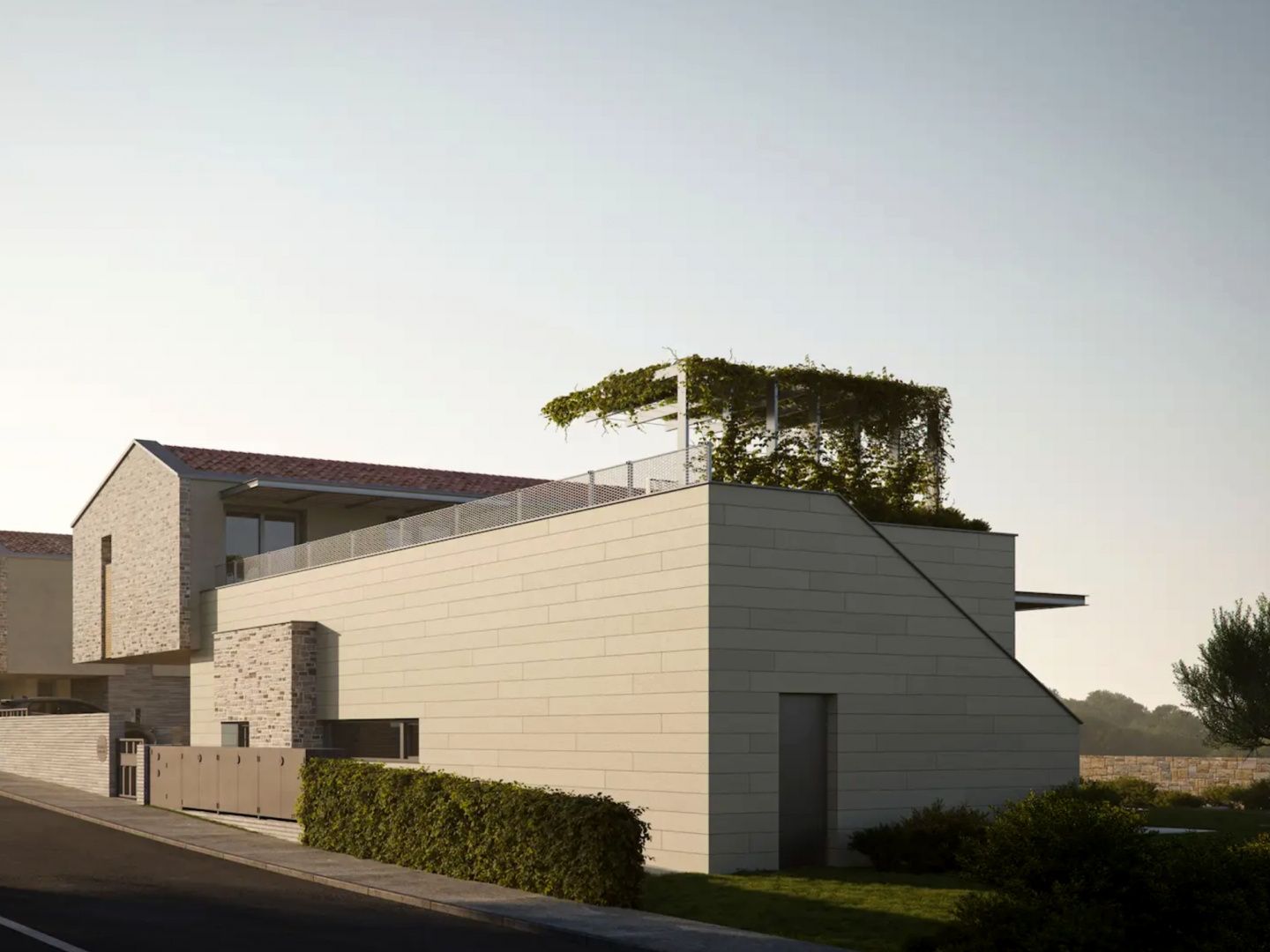 ISTRIE, BALE - Špičkový dům s bazénem Jedním z nejkrásnějších istrijských klenotů je město Bale, které se nachází na západním pobřeží Istrie. Toto historické kamenné město je postaveno na kopci obklopeném olivovými háji a vinicemi a je vzdáleno 5 kilometrů od moře a nedotčeného mořského pobřeží. Obcí Bale, respektive její nejjižnější částí, prochází 45. rovnoběžka, což znamená, že se nachází na nejideálnějším místě - v polovině cesty mezi rovníkem a severním pólem. Průměrná roční teplota v Bale je 14 stupňů Celsia a v průměru zaznamenávají 2 400 hodin slunečního svitu ročně. Nedaleko tohoto malebného středověkého istrijského města se prodává špičkový dům s bazénem. Nemovitost představuje harmonii prostoru, potřeb, funkcí, konstrukce a krásy. Nachází se v klidné čtvrti, obklopen přírodou, rodinnými domy a rekreačními objekty, které nabízejí autentický zážitek malého istrijského městečka, intimitu, úlevu od každé hektické námahy a odpočinek od hluku a zároveň blízkost moře a dynamických istrijských měst s řadou služeb. Kromě lokality, která poskytuje naprostý komfort, se nemovitost vyznačuje také kvalitou konstrukce, která zaručuje dlouhodobou spokojenost a kvalitu bydlení. Dům, moderní průlom v nadčasové architektuře s důrazem na funkčnost a estetiku, zapadá do sídla a krajiny z hlediska formy i barvy, je rozdělen do dvou podlaží s funkčním půdorysem a obytná část nabízí harmonické obytné prostředí zalité přirozeným světlem, které vyzařuje sofistikovanost a pohodlí. Přízemí se skládá z otevřeného prostoru, který spojuje obývací pokoj, jídelnu a kuchyň s přístupem na krytou terasu s letní kuchyní. Půdorys doplňuje ložnice s vlastní koupelnou a saunou, toaleta pro hosty a úložná místnost. První patro se skládá ze tří ložnic s vlastními koupelnami a chodby s přístupem na prostornou terasu, která má přístup do dvora po venkovním schodišti. Oplocený dvůr je plný zeleně a dokonalou harmonii okolního a zahradnicky upraveného dvora dotváří bazén s prostorem na opalování. Poloha, komfort a struktura činí z této vynikající nemovitosti ideální příležitost pro klidný rodinný život i pro investici za účelem turistického pronájmu. Uvedená cena nemovitosti se vztahuje k konečnému stupni dokončení bez nábytku, což umožňuje finální uspořádání dle vlastních přání a preferencí.