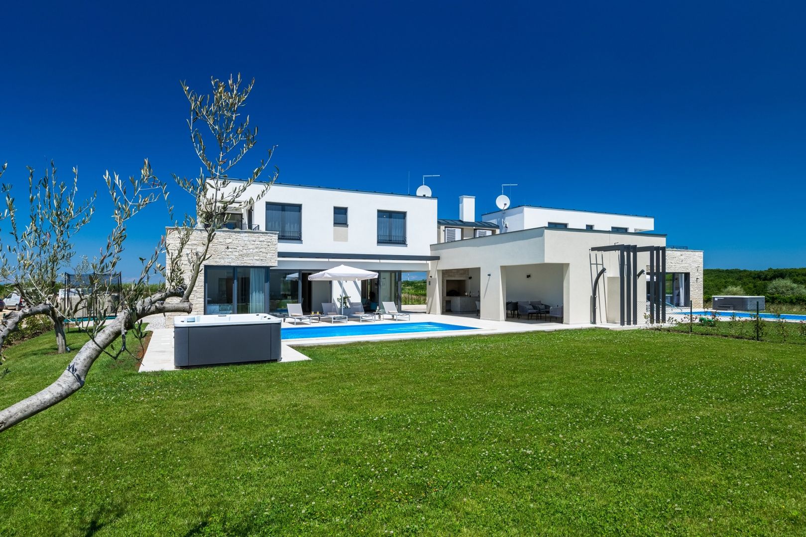 ISTRIE, BRTONIGLA - Elegantní vila, dokonalá kombinace luxusu a klidu Brtonigla je okouzlující istrijské městečko ležící v zeleném prostředí, známé svými olivovými háji, vinicemi a klidným životním stylem, a zároveň blízko všech hlavních atrakcí a měst na Istrii. Nedaleko od centra Brtonigly je na prodej tato moderní a elegantní vila, ideální pro rodinný život, dovolenou nebo jako investiční nemovitost k turistickému pronájmu. S rozlohou 264 m2 se rozkládá na dvou podlažích a poskytuje maximální pohodlí a funkčnost. V přízemí se nachází vstupní hala, prostorný obývací pokoj s otevřeným prostorem, moderní kuchyň s jídelnou, úložný prostor, technická místnost, toaleta pro hosty s prádelnou a ložnice s vlastní koupelnou a přímým přístupem k bazénu. V prvním patře se nacházejí tři ložnice, každá s vlastní koupelnou a přístupem na soukromou terasu, což zajišťuje naprosté soukromí a pohodlí. Vila je vybavena moderní technologií, včetně solárních panelů na střeše, klimatizace, podlahového vytápění a všech potřebných přípojek pro pohodlný a energeticky úsporný život. Na pozemku se nachází: - prostorná zahrada o rozloze 480 m2 s olivovníky - velký vyhřívaný bazén s plážovou plochou 40 m2 - vířivka - prostor na opalování a odpočinková zóna - krytá letní kuchyně s grilem Pozemek nabízí naprosté soukromí a je ideální pro relaxaci a zábavu venku. Tato nemovitost představuje vynikající příležitost pro ty, kteří hledají luxusní bydlení v klidném prostředí Istrie, ale také pro investory, kteří chtějí zavedený turistický objekt s vynikající návratností. Kombinace moderní konstrukce, funkčního uspořádání a vynikajícího venkovního prostoru činí z této vily ideální volbu pro bydlení, dovolenou nebo obchodní projekt.