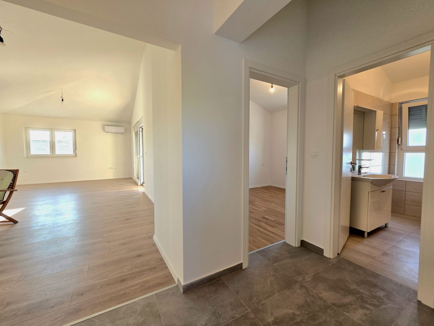 ISTRIE, FAŽANA – Moderní apartmán v luxusní novostavbě s prostorným balkonem a dvěma parkovacími místy 450 m od pláží a promenád S hrdostí představujeme moderní apartmán nacházející se v srdci jedné z nejvyhledávanějších destinací na pobřeží – krásné Fažany. Tato nemovitost představuje dokonalou kombinaci moderního designu, kvalitní výstavby a maximálního komfortu a svým budoucím majitelům nabízí ideální rovnováhu mezi soukromím, funkčností a blízkostí moře. POPIS APARTMÁNU Ve druhém patře kvalitní novostavby se nachází apartmán o celkové obytné ploše 96,54 m2. Vchod do apartmánu nás vede do světlé a prostorné vstupní haly s vyhrazeným prostorem pro šatní skříň, která harmonicky propojuje všechny místnosti domu. Centrální část apartmánu tvoří velký otevřený obývací prostor, který propojuje prostor určený pro moderní a plně vybavenou kuchyň, jídelnu a pohodlný obývací pokoj. Z obývacího pokoje je vstup na krytý balkon, dostatečně prostorný pro stolování a posezení u velkého stolu pro 8–10 osob. Balkon se svým výhledem a atmosférou je ideálním místem pro užívání si teplých istrijských večerů. Byt se dále skládá ze dvou prostorných ložnic a dvou větších koupelen, což zajišťuje naprosté soukromí a funkčnost pro všechny členy domácnosti. DOPLŇKOVÉ VYBAVENÍ - Byt je skvěle vybaven a navržen pro pohodlný pobyt po celý rok: * dvě klimatizace pro vytápění a chlazení, * soukromý komín s možností instalace peletových nebo dřevěných kamen, * elektrické podlahové vytápění v koupelně, * třívrstvé PVC dveře s moskytiérami a roletami, * bezpečnostní vstupní dveře, * vysoce kvalitní podlahové krytiny (12mm laminát v obývací části, parkety v ložnicích, vysoce kvalitní keramika v ostatních místnostech). PRAKTICKOST A DALŠÍ VÝHODY * dvě soukromá parkovací místa v oploceném dvoře budovy s elektrickou bránou, * právo užívat společnou úschovnu kol o rozloze 25 m², která se nachází v přízemí, * vysoce kvalitní tepelná izolace budovy (10 cm fasádní izolace), * řádné vlastnictví (1/1 fyzická osoba) a vydané kolaudační rozhodnutí. LOKALITA Fažana je jedno z nejatraktivnějších míst na jihozápadním pobřeží Istrie, známé svým křišťálově čistým mořem, krásnými oblázkovými plážemi a promenádou, která vede až do Peroje na jedné straně a až do Štinjanu a Puly na druhé straně. Apartmán se nachází v klidné lokalitě a zároveň v těsné blízkosti veškeré občanské vybavenosti potřebné pro příjemný rodinný život - obchody, restaurace, kavárny, školy a veřejná doprava. Tento apartmán není jen nemovitostí - představuje investici do pohodlného a moderního života v atraktivní lokalitě. Je ideální volbou pro rodinu hledající nový domov, ale také jako bezpečná investice pro dovolenou nebo turistický pronájem.