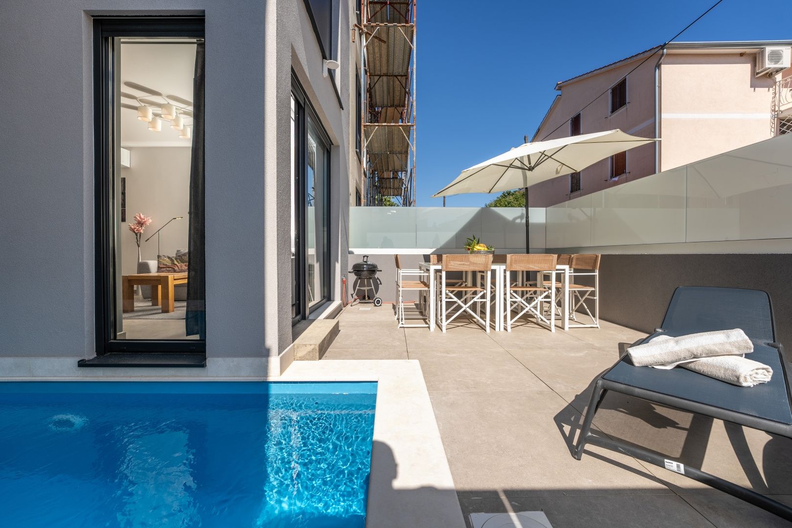 ISTRIE, FUNTANA - Luxusní oáza u moře, perfektní investice Funtana, která se nachází na západním pobřeží Istrie, je okouzlující a malebná turistická destinace známá svým křišťálově čistým mořem, autentickou istrijskou kuchyní, vinnými stezkami a četnými cyklistickými a turistickými stezkami. Tato přímořská oáza nabízí perfektní kombinaci relaxace a aktivní dovolené a zároveň vyzařuje klid a středomořské kouzlo, které okouzluje návštěvníky z celého světa. Přímo ve Funtaně, na atraktivním místě pouhých 700 metrů od moře, se prodává elegantní, moderně zařízený řadový dům, který nabízí špičkový komfort a středomořský životní styl. Tento impozantní dům o celkové rozloze 114 m² se rozkládá na třech podlažích a byl pečlivě navržen tak, aby splňoval potřeby moderního životního stylu. V přízemí se nachází otevřený a vzdušný obývací prostor s moderní kuchyní, pohodlným obývacím pokojem, elegantní jídelnou a praktickou toaletou pro hosty. V prvním patře se nacházejí dvě prostorné a vkusně zařízené ložnice a moderní koupelna. Třetí patro se skládá ze dvou dalších ložnic, každá s vlastní koupelnou, ideální pro rodinu nebo hosty. Interiérový design vyzařuje styl, sofistikovanost a funkčnost a dům se prodává kompletně zařízený pečlivě vybraným nábytkem a všemi detaily připravenými k nastěhování. Dům má také dvě soukromá parkovací místa a krásný soukromý bazén, ideální pro osvěžení v letních měsících nebo pro sledování západů slunce se sklenkou vína. Zvláštní výhodou tohoto elegantního domu je, že je již využíván k turistickému pronájmu se zavedeným podnikáním, což novému majiteli umožňuje okamžitě pokračovat v pronájmu a generovat příjem, nebo nemovitost využívat výhradně pro vlastní potřeby a potěšení. Tento dům představuje ideální kombinaci špičkové lokality, luxusního vybavení a investičního potenciálu. Nachází se v jedné z nejžádanějších částí Istrie, jen pár kroků od moře, a poskytuje perfektní prostor pro relaxaci, bydlení nebo ziskový turistický pronájem. Nenechte si ujít příležitost stát se majitelem této výjimečné nemovitosti, která kombinuje pohodlí, styl a středomořský způsob života. Kontaktujte nás ještě dnes a domluvte si prohlídku!