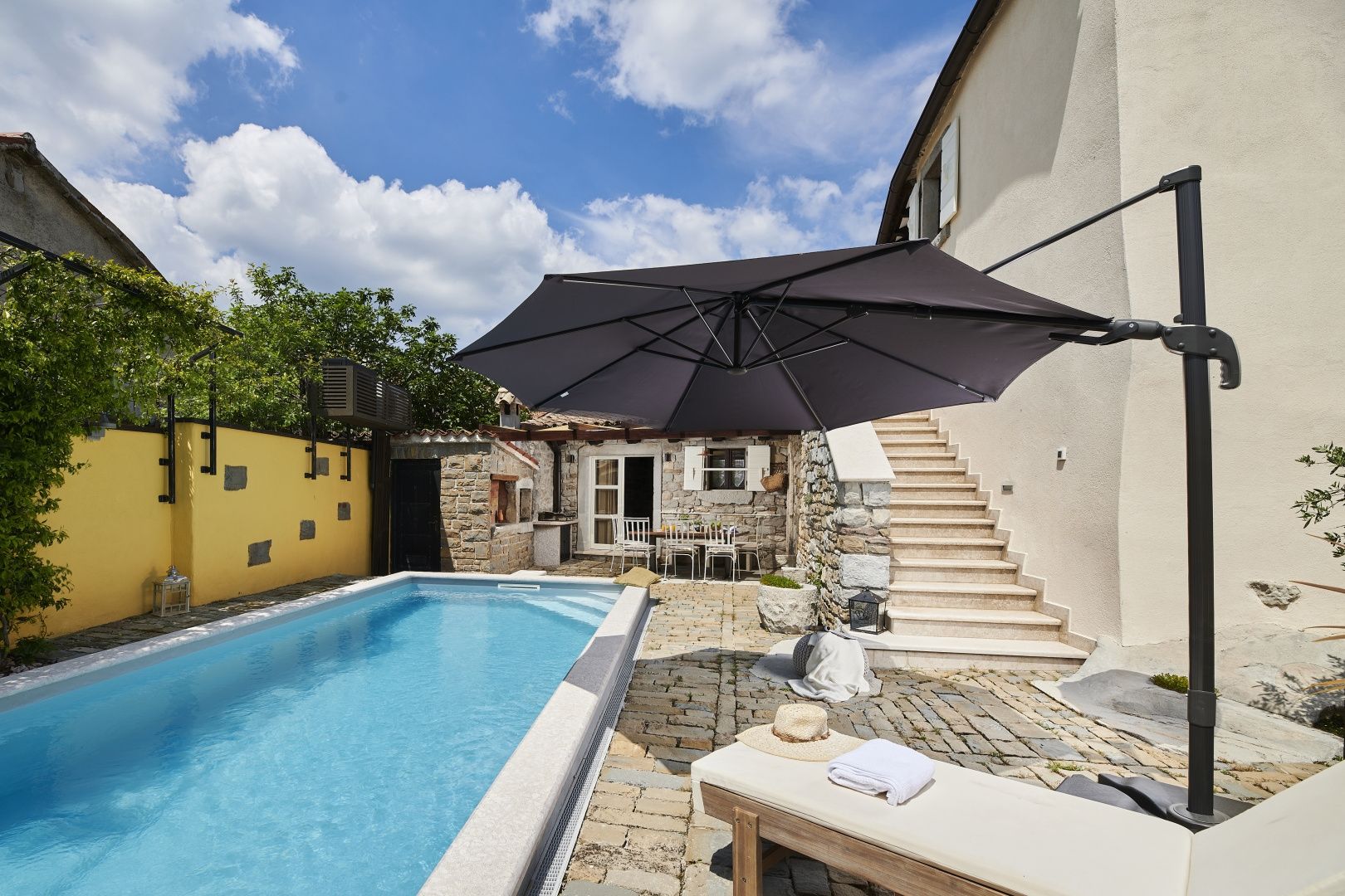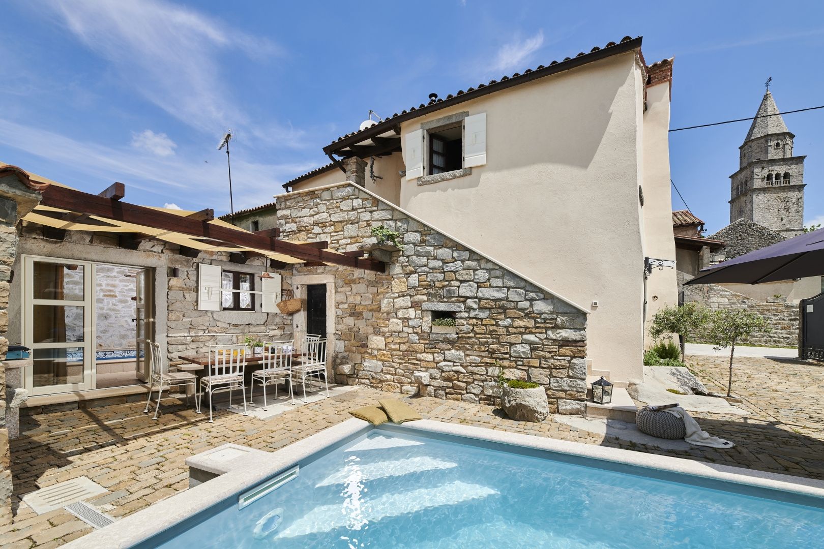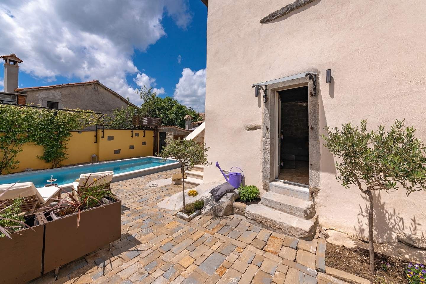 ISTRIE, GRAČIŠĆE – RUSTIKÁLNÍ VILLA S VNITŘNÍM A VENKOVNÍM BAZÉNEM, SAUNOU A KOMBINACÍ LUXUSU A AUTENTICITY Gračišće, nacházející se ve střední Istrii, na malebném kopci s výhledem na okolní vinice a údolí, je jedním z nejautentičtějších istrijských měst. Tato okouzlující středověká osada okouzluje svými dlážděnými uličkami, starými kostely a historickými hradbami a je také známá svými vysoce kvalitními víny, gastronomií a klidem, který nabízí daleko od ruchu města. Díky svému jedinečnému charakteru a blízkosti pobřeží se Gračišće stává stále žádanější destinací pro ty, kteří hledají kombinaci tradice, luxusu a uvolněného životního stylu. Právě v tomto magickém istrijském prostředí se nachází tato unikátní rustikální vila s obytnou plochou 125 m², která stojí na pozemku o rozloze 234 m². Vila se rozkládá na dvou podlažích a byla pečlivě zrekonstruována, aby si zachovala ducha istrijské tradice a zároveň nabídla pohodlí moderního bydlení. V přízemí se nachází krytý bazén s mozaikovými dlaždicemi, ohřevem tepelným čerpadlem a tryskami pro protiproud, spolu s lázeňskou zónou a saunou pro dokonalý relaxační zážitek. Prostor přízemí dále doplňuje prostorný obývací pokoj s autentickým krbem, útulná jídelna, kuchyň v rustikálním stylu a toaleta, zatímco do prvního patra vedou elegantní dřevěné schody. V prvním patře se nacházejí tři prostorné ložnice - dvě standardní a jedna rodinná ložnice s manželskou postelí a palandou, ideální pro větší rodiny nebo hosty. V prvním patře se také nacházejí tři moderní koupelny, které kombinují kámen, dřevo a teplé tóny a vytvářejí tak pocit pohodlí a elegance. Exteriér vily vyzařuje středomořské kouzlo - krytá terasa s autentickým krbem je ideální pro setkání a stolování pod širým nebem, zatímco vyhřívaný venkovní bazén s prémiovou fólií a prostorná terasa na opalování nabízejí skutečnou oázu soukromí a požitku. Dvůr je obehnán kamennou zdí, dlážděnou autentickými kamennými deskami, a kovaná vstupní brána dodává další nádech elegance a bezpečí. Celá vila vyzařuje teplo a charakter díky použití místních přírodních materiálů, jako je kámen, dřevo a cihly, a také nábytku vyrobeného na míru, který prostoru dodává vytříbenou, ale útulnou atmosféru. Nemovitost je vybavena ústředním topením, klimatizací a design i provedení byly promyšleny do nejmenších detailů. Vila je kategorizována pro turistický pronájem a již řadu let úspěšně funguje pro turistické účely, což umožňuje rychlou návratnost investice a jistý zisk. Díky své vynikající poloze – pouhých 20 km od prvních pláží a asi 50 km od letiště v Pule – je to ideální nemovitost pro každého, kdo hledá kombinaci luxusu, soukromí a autentické istrijské atmosféry. Tato vila není jen dům – je to životní styl, ideální pro ty, kteří si chtějí užít klid, přírodu a nejvyšší pohodlí a zároveň mají možnost výnosně investovat do jedné z nejkrásnějších částí Istrie.