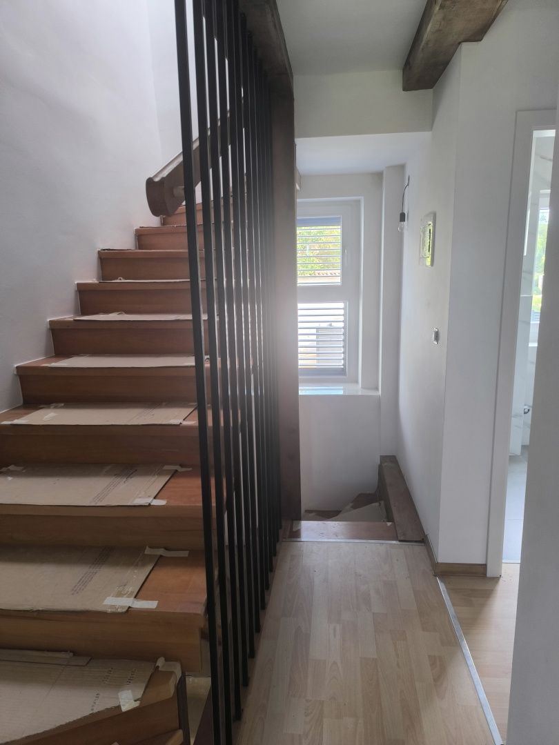 ISTRIE, JURŠIĆI - Řadový dům s bazénem + apartmán, NA KLÍČ V centru Juršići, v klidné slepé ulici, se nachází tento nový projekt třípatrového kamenného domu s bazénem a pomocným zařízením. Předmětná nemovitost se nachází na pozemku o celkové výměře 226 m2. O celkové čisté obytné ploše 129 m2 se dům skládá ze 6 ložnic, 2 koupelen s toaletou a další toalety, rozdělených do 3 nadzemních podlaží: V přízemí domu se nachází obývací pokoj, kuchyně, jídelna a malá toaleta pro hosty V přízemí je také výstup na terasu s přístupem k bazénu. Vnitřní schodiště vede do druhého patra, kde jsou 3 ložnice a koupelna s WC. V horním patře jsou také další 3 ložnice a koupelna s toaletou. Komunikace s dvorem je přes přízemí, které nabízí průchod do prostoru pro slunění, bazénu a doprovodného zázemí. Na pozemku se dále nachází vedlejší stavba, řešená jako byt, s čistou obytnou plochou 34 m2. Skládá se ze 2 pokojů, koupelny s toaletou a malé komory. Další informace: *Bazén má rozměr 6x3 m, celková plocha 18 m2. *Topení je na dřevo. *Možnost instalace solárních panelů. *Budoucí kupující má možnost výběru vybavení a nábytku dle přání. Poznámka: Uvedená cena platí pro kompletně dokončený dům na klíč. Dokončení prací na konci roku 2024. Ideální nemovitost pro zahájení klidného rodinného života nebo pro účely turistického pronájmu.