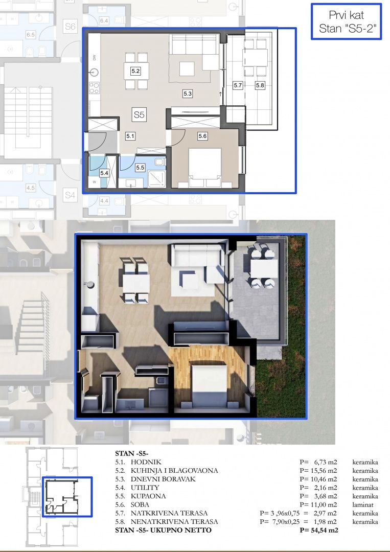 ISTRIE, LABIN - Apartmán v moderní novostavbě Na jihovýchodním pobřeží Istrie, kde se zelené kopce setkávají s mořem, kde se příroda a dědictví spojují, se nacházejí dvě města podobné velikosti s odlišným, ale vzájemně se doplňujícím charakterem - Labin a Rabac. Malebné městečko Labin se tyčí na 320 metrů vysokém kopci, pouhé čtyři kilometry od bílých oblázkových pláží Rabacu. Labin, který byl krátce vyhlášen nezávislou republikou, je protkaný bohatou historií a hornictvím, které tuto oblast poznamenaly, a dnes je fascinujícím městem rozporů; starého a nového, historie a současnosti, cestovního ruchu a umění. Nedaleko centra Labinu se staví moderní budova, která se rozkládá v přízemí a dvou patrech a obsahuje celkem 8 bytových jednotek. Při stavbě jsou použity odolné a spolehlivé materiály, které zaručují dlouhodobou spokojenost a bezpečnost bydlení, přičemž plánování prostoru každého patra bylo provedeno do detailu, což vede k vysoce kvalitnímu uspořádání místností. Předmětem prodeje je apartmán nacházející se v prvním patře budovy. Skládá se z jedné ložnice, koupelny, toalety pro hosty, chodby a otevřeného prostoru, který spojuje obývací pokoj, jídelnu a kuchyň s přístupem na částečně krytou terasu. Parkovací místa se kupují samostatně dle odpovídajícího kalkulačního koeficientu. Tento byt v novostavbě v docházkové vzdálenosti od nákupních, kulturních, vzdělávacích a rekreačních zařízení je ideální příležitostí pro příjemný rodinný život i pro investici za účelem turistického pronájmu. Uvedená cena nemovitosti se vztahuje k konečnému stupni dokončení bez nábytku, což umožňuje finální uspořádání dle vlastních přání a preferencí. Prodejce předmětné nemovitosti je právnická osoba a DPH je zahrnuta v uvedené ceně.