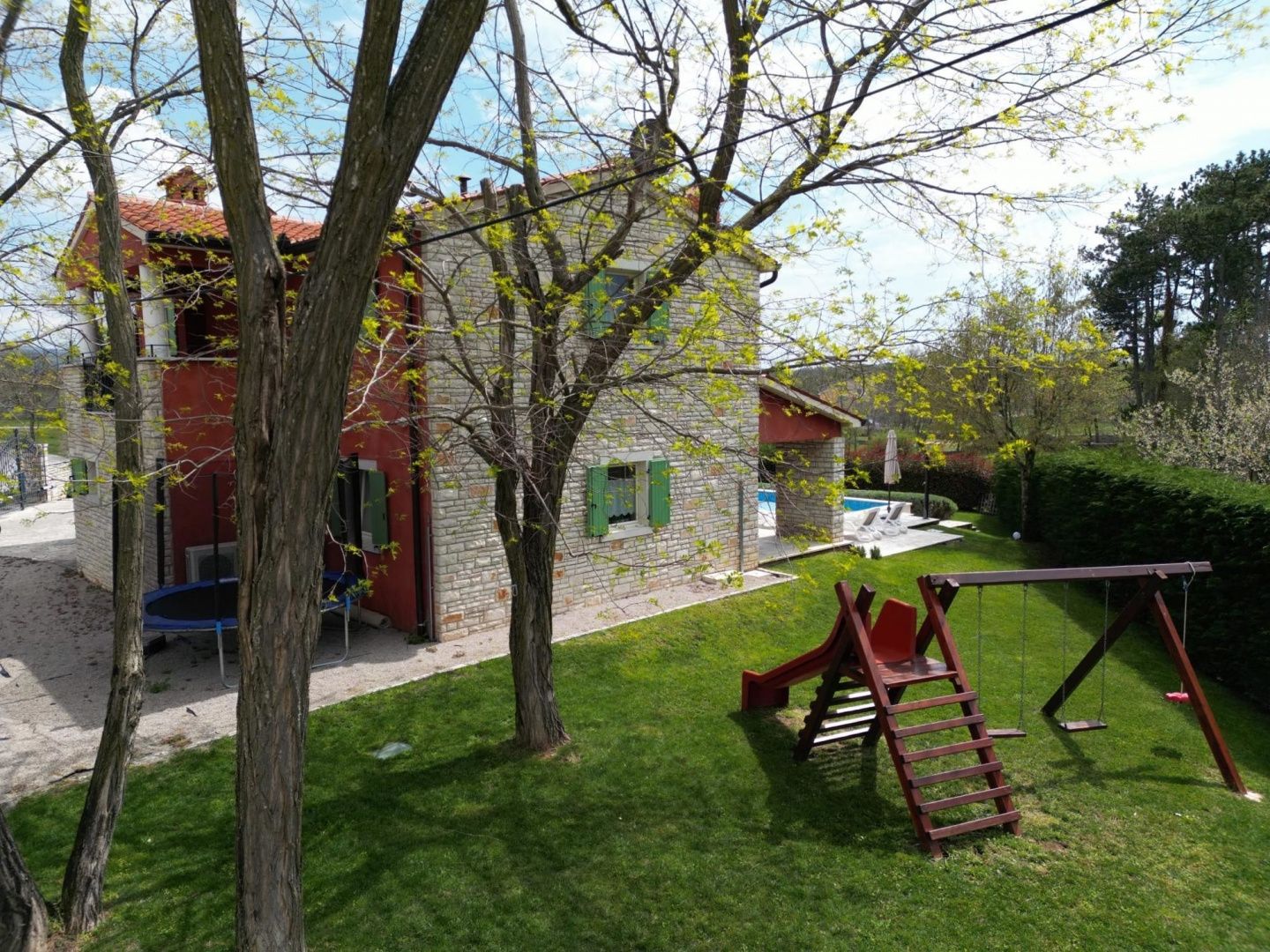 ISTRIE, LABIN - Dům s bazénem v klidné lokalitě V idylické a klidné osadě, pouhých 7 km od centra Labinu a 10 km od moře, se nachází tato krásná samostatně stojící vila, která nabízí naprosté soukromí a potěšení z okolní přírody. Vila se rozkládá na dvou podlažích a zabírá celkem 180 m² obytné plochy. V přízemí se nachází prostorný a světlý obývací pokoj s jídelnou (60 m²) s přístupem na terasu a k bazénu, plně vybavená kuchyň a jedna ložnice s koupelnou a další samostatná toaleta. Důležité je poznamenat, že přízemí a ložnice s koupelnou jsou přístupné pro osoby se zdravotním postižením. V prvním patře se nacházejí tři pohodlné ložnice, každá s vlastní koupelnou - dva pokoje s manželskými postelemi a jeden pokoj se dvěma samostatnými lůžky. Nemovitost je vybavena kvalitním italským nábytkem, který dále zdůrazňuje eleganci a pohodlí prostoru, a pro zvláštní atmosféru a teplo domova jsou zde kamna na dřevo. Vila se nachází na upraveném a oploceném pozemku o rozloze 1000 m², ideálním pro odpočinek a relaxaci. Na dvoře se nachází atraktivní bazén o rozměrech 8 x 4 m s vnitřním schodištěm, venkovní sprcha, prostorná terasa se zahradním nábytkem a grilem, a také zázemí pro nejmenší - dětské hřiště se skluzavkou a houpačkou. Pro větší zábavu je k dispozici trampolína, stolní tenis a stolní fotbal. Další výhodou je krytá terasa o rozloze 32 m² a balkon o rozloze 12 m², ideální pro užívání si klidného okolí. Na zahradě jsou k dispozici parkovací místa pro dvě auta, zatímco před domem je další prostor pro parkování několika vozidel. DALŠÍ INFORMACE * vila se prodává kompletně zařízená * oplocený pozemek * bezúhonné vlastnictví * bezúhonná dokumentace Tato nemovitost představuje ideální příležitost pro rodinný život, luxusní dovolenou nebo jako investici k turistickému pronájmu, a to díky své atraktivní poloze, soukromí a bohaté nabídce vybavení. V případě jakýchkoli dalších dotazů, potřebných informací nebo pro sjednání prohlídky nás neváhejte kdykoli kontaktovat.