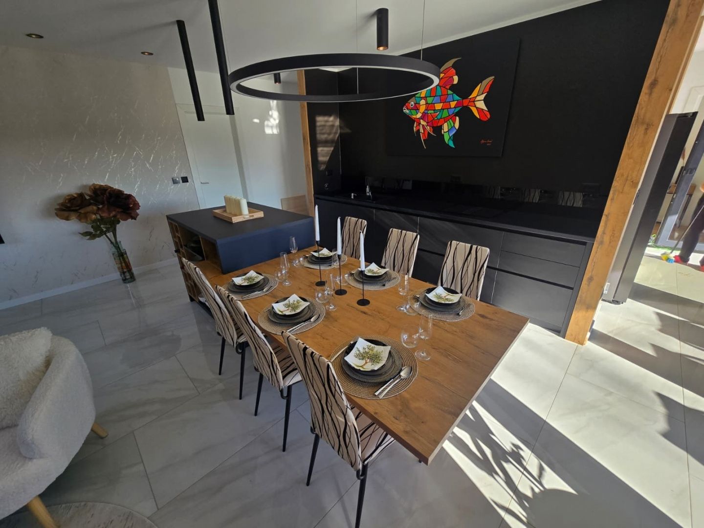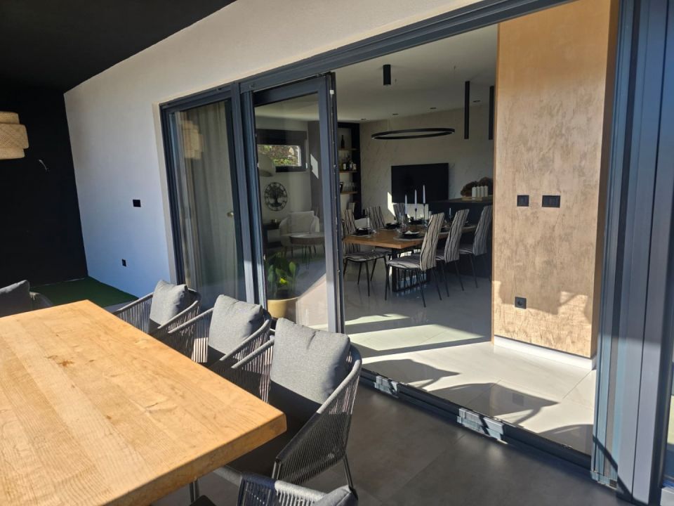 ISTRIE, LABIN - Moderní novostavba s bazénem Na jihovýchodním pobřeží Istrie, v místě, kde se zelené kopce setkávají s mořem, kde se snoubí příroda a dědictví, jsou dvě města podobné velikosti, ale s odlišnými, ale vzájemně se doplňujícími charaktery - Labin a Rabac. Malebné městečko Labin se tyčí na kopci vysokém 320 m, pouhých pět kilometrů od bílých oblázkových pláží v Rabacu. Labin, protkaný bohatou historií a hornictvím, které charakterizovaly tento region, je dnes na krátkou dobu vyhlášenou nezávislou republikou fascinujícím městem rozporů; staré a nové, historie a současnost, turistika a umění. V blízkosti města Labin je na prodej moderní novostavba s bazénem. Nemovitost představuje spojení moderní architektury a přírodního prostředí a kvalita konstrukce a vybavení tohoto montovaného domu zaručuje dlouhodobou spokojenost a kvalitu bydlení. Vytápění/chlazení domu zajišťují klimatizace a systém podlahového vytápění, připravena je i instalace pro fotovoltaické panely. Interiér domu zaujme jednoduchostí a vybavením a výbornou prostorovou organizací. Skládá se z otevřeného konceptu prostoru, který spojuje obývací pokoj, jídelnu a kuchyň se vstupem na krytou terasu s letní kuchyní. Půdorys je doplněn třemi ložnicemi s en-suite koupelnami, toaletou pro hosty a komorou. Dvůr je zahradnicky a ekologicky vyzdoben a kompletně oplocený a obsahuje vyhřívaný bazén o velikosti 32 m² se sluneční terasou a parkovacími místy s nabíjecí stanicí pro elektrická vozidla. Tato nemovitost v klidné čtvrti je perfektní příležitostí pro pohodlný rodinný život i jako investice do turistického pronájmu.