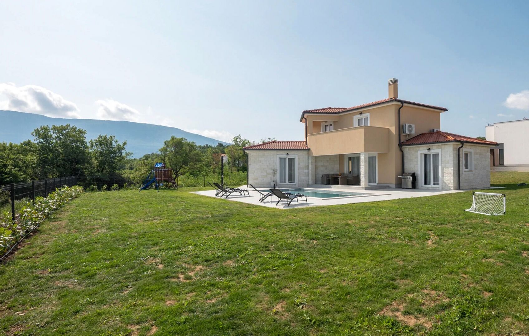 ISTRIE, LABIN - Středomořský dům s bazénem Na jihovýchodním pobřeží Istrie, kde se zelené kopce setkávají s mořem, kde se spojuje příroda a dědictví, se nacházejí dvě města podobné velikosti s odlišným, ale doplňujícím se charakterem - Labin a Rabac. Malebné městečko Labin se tyčí na 320 metrů vysokém kopci, pouhé čtyři kilometry od bílých oblázkových pláží Rabacu. Labin, který byl krátce vyhlášen nezávislou republikou, protkaný bohatou historií a těžbou, která tuto oblast poznamenala, je dnes fascinujícím městem rozporů; starého a nového, historie a současnosti, cestovního ruchu a umění. V blízkosti města Labin je na prodej středomořský dům s bazénem. Mikrolokace nabízí autentický zážitek malého istrijského městečka, intimitu a úlevu od každé hektické námahy a hluku a zároveň je blízko moře a městské vybavenosti města Labin. Kromě lokality, která poskytuje naprostý komfort, se nemovitost vyznačuje také kvalitou konstrukce, která zaručuje dlouhodobou spokojenost a kvalitu bydlení. Dům s nadčasovým designem, částečně obložený kamenem, splývá s okolím a krajinou jak formou, tak i barvou. Je koncipován jako jedna bytová jednotka, která se rozkládá na dvou vkusně zařízených a dobře vybavených podlažích funkčního půdorysu. Přízemí se skládá z otevřeného prostoru, který spojuje kuchyň, jídelnu a obývací pokoj s přístupem na krytou terasu, ložnice s vlastní koupelnou, toalety pro hosty a úložné místnosti. První patro se skládá ze dvou ložnic s vlastními koupelnami a částečně zastřešené terasy. Dvůr je oplocený a zařízený v ambientním a zahradnickém stylu a bazén s opalovací plochou poskytuje úplnou harmonii. Vynikající poloha a prostorové uspořádání interiéru i exteriéru této nemovitosti poskytují příležitost pro pohodlný rodinný život nebo investici do turistického pronájmu.