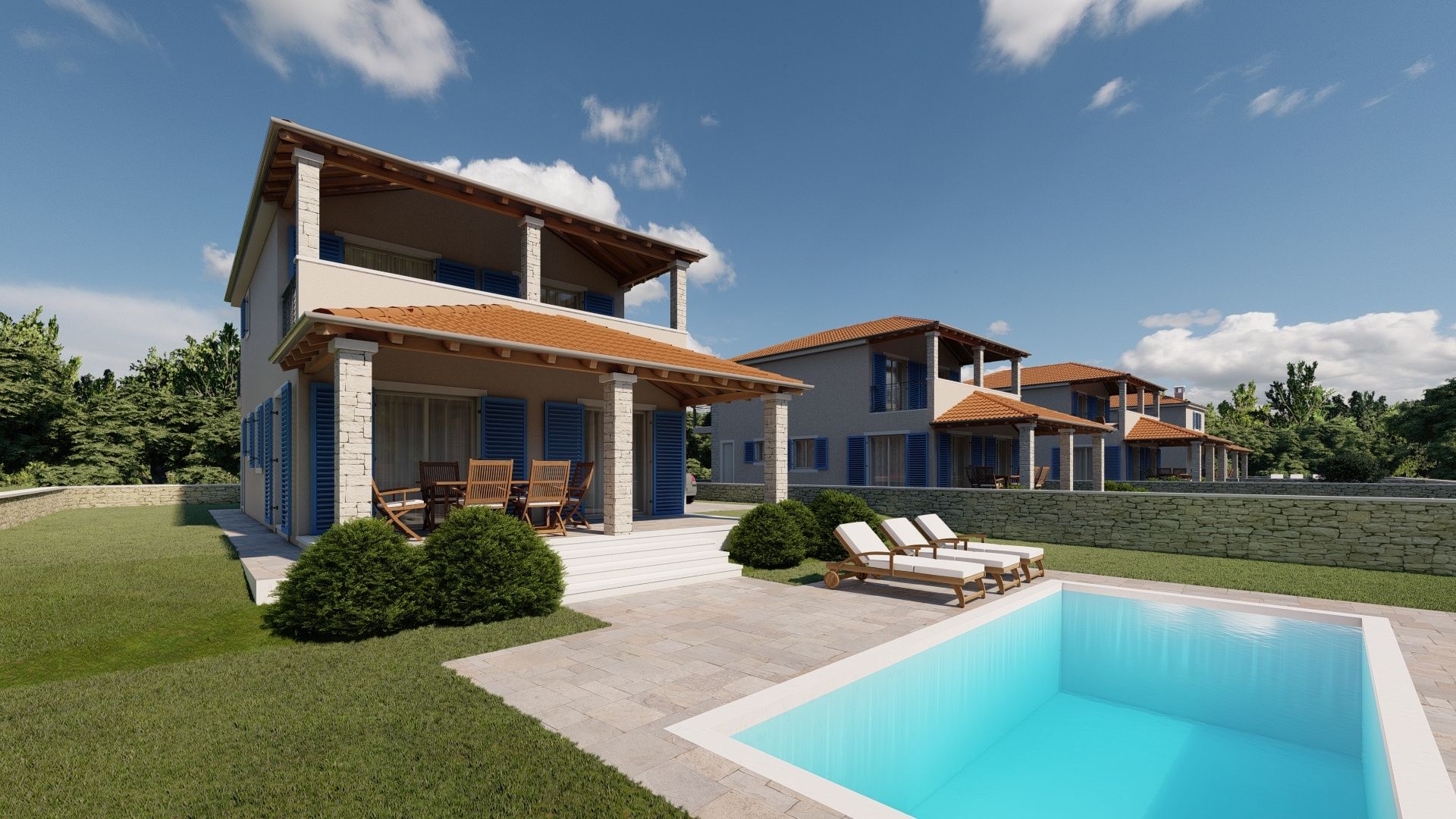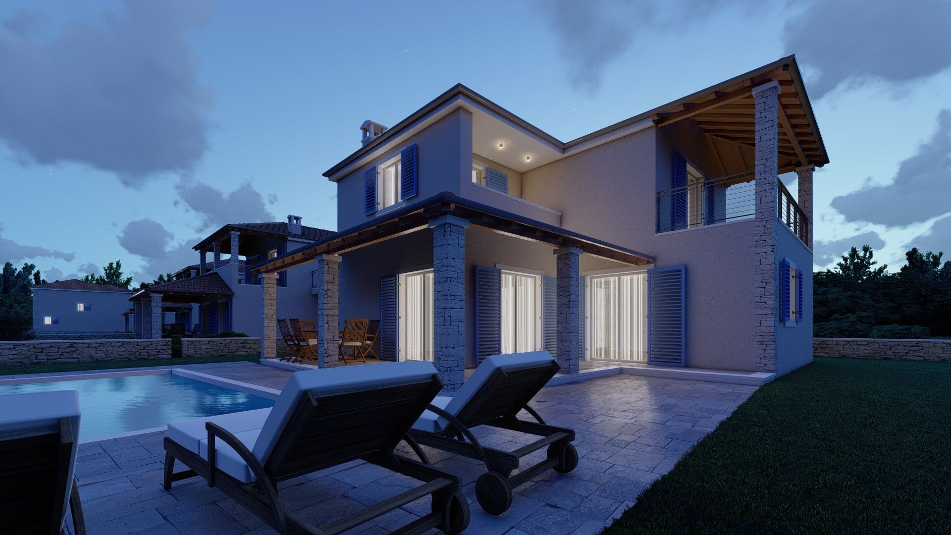 ISTRIE, LIŽNJAN - Krásná vila ve vysokém ROH BAU u moře! V nabídce realitní kanceláře DUX vám představujeme zahájený stavební projekt krásně navrženého projektu, který ctí tradici a kombinuje moderní prvky ve skvělé lokalitě! LOKALITA: Vila se nachází v konceptu výstavby celkem 6 domů, které budou fungovat jako malá osada nacházející se v klidné lokalitě a v bezprostřední blízkosti pláží v Ližnjanu a Medulinu. PROJEKT: Koncept projektu a samotná lokalita jsou na jižním pobřeží Istrie vzácností tak blízko moře. Projekt počítá s dřevěnými okenicemi na každém domě, což navazuje na autentický istrijský duch, a je plánováno uspořádání domů ve vnější části tímto způsobem. Byla získána všechna potřebná povolení, přípojky a zaplaceny příspěvky na energie. Uvedená cena se vztahuje k FÁZI ROH BAU. Zahrnuje: Dům pod střechou, ohradní zdi, klempířské práce, venkovní tesařské práce. Po dohodě je možné, že investor budovu dokončí za vás, ale v zásadě se prodává ve fázi ROH BAU. Cena domu je uvedena včetně 25% DPH, takže si můžete nechat vrátit DPH na firmu otevřenou v Chorvatsku. - bylo získáno pravomocné stavební povolení s projekty - byly zaplaceny příspěvky na energie a vodu - byly zaplaceny přípojky na elektřinu a vodu - dům byl postaven v nedokončené fázi (pod střechou) vše dle projektu - byly instalovány okapnice, svislé a vodorovné okapy - byla dokončena železobetonová konstrukce bazénu - byly instalovány bílé PVC venkovní truhlářské práce - byly postaveny 80 cm vysoké železobetonové stěny - byla dokončena první fáze elektroinstalací - byla dokončena první fáze instalací vody, kanalizace, klimatizace a podlahového vytápění - byly dokončeny vnitřní omítání stěn a stropu přízemí - zasklení přízemí a prvního patra Předmětná vila vám nabízí 165,95 m2 obytné plochy, která se rozkládá v přízemí a prvním patře. Přízemí se skládá z kuchyně s jídelnou, prostorného obývacího pokoje s přístupem na terasu a k bazénu, ložnice a koupelny. V prvním patře jsou plánovány dvě ložnice, každá s vlastní koupelnou. Pozemek o rozloze 444 m2 nabízí bazén o rozměrech 7,00 x 3,00 m a dostatek zahradního prostoru pro vlastní oázu klidu bez většího stresu z údržby. Jsme vám k dispozici pro veškeré další informace a prohlídky!