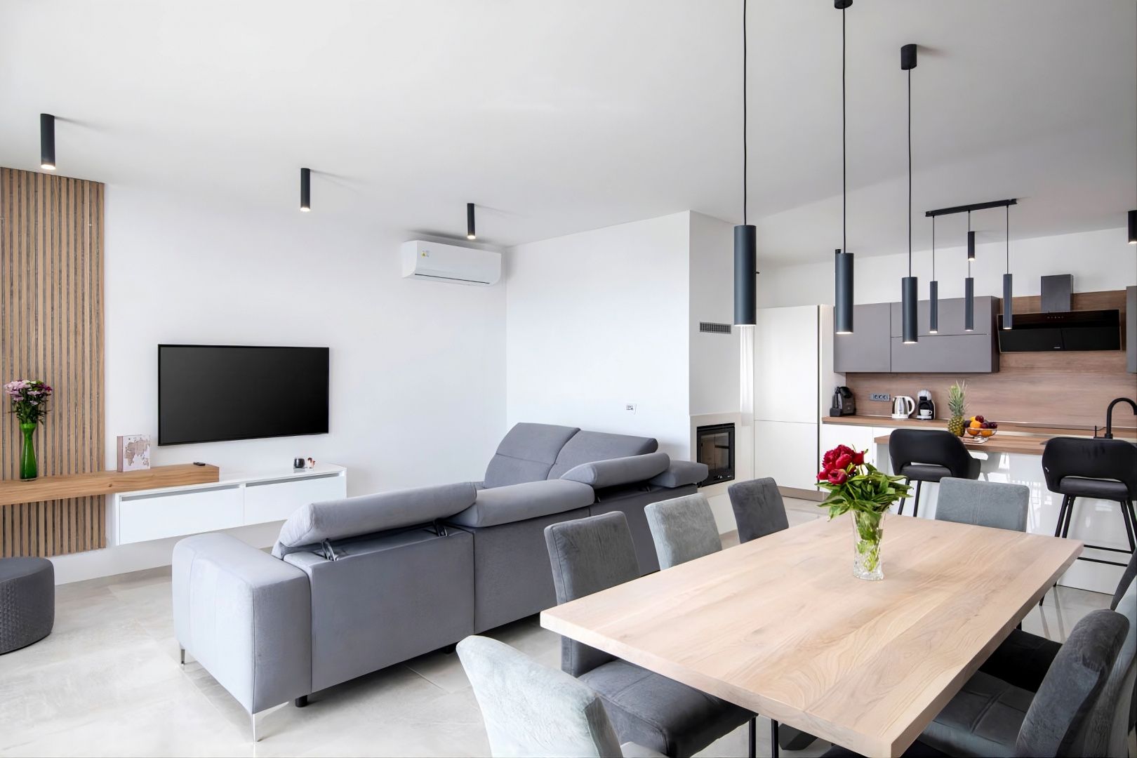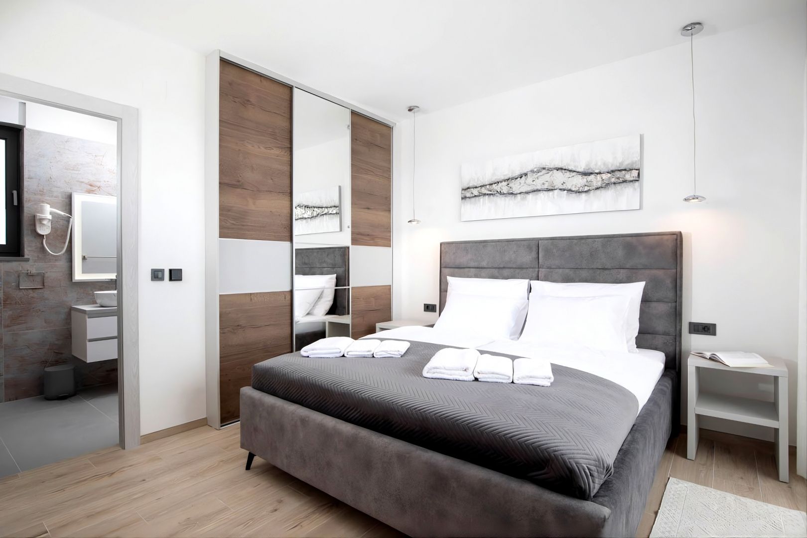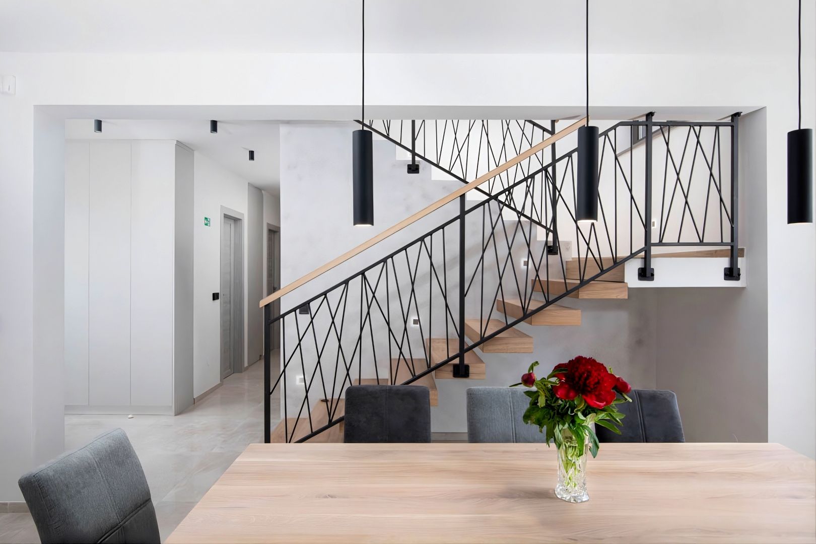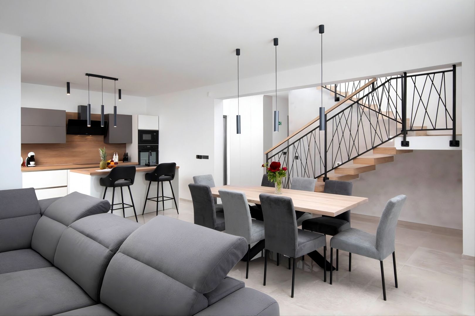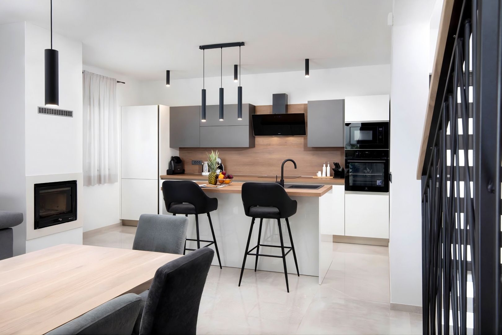 ISTRIE, LIŽNJAN - Moderní dům s bazénem a garáží u moře Na samém jihu Istrie, na kopci vždy zalitém sluncem a pohlazeném čerstvým větrem, leží malebný Ližnjan, který klidně shlíží na čisté modré moře a kvarnerské ostrovy. Jeho historie je skutečně fascinující, o čemž svědčí naleziště osídlení starého přes 7 000 let, pozůstatky římských vil, fragmenty amfor a starých potopených lodí, které se dodnes nacházejí na jeho mořském dně, staré majáky, které dodnes ukazují cestu mořeplavcům, a malebný přístav prozrazuje, že se jeho obyvatelé i dnes věnují rybolovu, stejně jako před tisíci lety. Obec Ližnjan je oázou nedotčené přírody a tradičního středomořského způsobu života díky své přírodní kráse, skrytým plážím a zátokám, úrodné půdě, rybolovu a především lidem, kteří zde žijí. V tomto malebném městečku je k dlouhodobému pronájmu k dispozici moderní dům s bazénem a garáží u moře. Nachází se v klidné čtvrti, obklopené přírodou, rodinnými domy a rekreačními objekty, a nabízí perfektní rovnováhu mezi blízkostí moře a městskou vybaveností, dostatečně daleko od shonu a ruchu města, ale stále blízko veškerého vybavení potřebného pro celoroční pobyt. Kromě lokality, která poskytuje naprostý komfort, se nemovitost vyznačuje také kvalitou výstavby, která zaručuje dlouhodobou spokojenost a kvalitu bydlení. Dům svou architekturou splývá s osadou a krajinou z hlediska formy i barvy a vytváří tak synergii přírodního prostředí a moderního designu. Je definován jako jedna bytová jednotka, jejíž plocha je rozložena na dvou elegantně zařízených a dobře vybavených podlažích s funkčním půdorysem. Přízemí se skládá z otevřeného prostoru, který spojuje kuchyň, jídelnu a obývací pokoj s přístupem na krytou terasu, ložnic, koupelen, prádelny a vstupní haly. Půdorys doplňuje garáž a technická místnost. První patro se skládá ze tří ložnic s vlastními koupelnami, technické místnosti a kryté terasy a lodžie s výhledem na moře. Dvůr je upravený a zahradně upravený a oplocený a bazén s opalovací plochou poskytuje úplnou harmonii. Vynikající poloha a prostorové uspořádání interiéru i exteriéru této nemovitosti poskytuje příležitost pro pohodlný rodinný život.