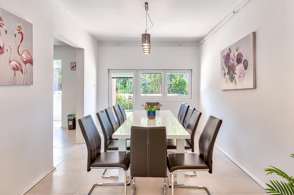 ISTRIE, LIŽNJAN - Vila na prodej s bazénem a výhledem na moře V klidné a příjemné části Ližnjanu, pouhých tisíc metrů od moře, se nachází tato prostorná samostatně stojící vila, která představuje ideální kombinaci pohodlí, soukromí a středomořského životního stylu. Obklopena upravenou zahradou a nacházející se v klidné čtvrti, nabízí tato nemovitost perfektní podmínky pro klidný rodinný život, ale také výjimečný potenciál jako investice pro turistický pronájem. S celkovou obytnou plochou 260 m2 a zahradou 425 m2 nabízí vila dostatek prostoru pro pohodlný život větší rodiny nebo velkého počtu hostů. POPIS NEMOVITOSTI - Vila je uspořádána na dvou podlažích, přízemí a prvním patře. V přízemí vily nás nejprve přivítá vstupní hala s vyhrazeným prostorem pro šatní skříň, stejná hala nás poté vede do obytné části domu, která je navržena jako příjemný prostor pro relaxaci a setkávání, zatímco velké prosklené plochy propouštějí dostatek přirozeného světla po celý den. Z obývacího prostoru se vstupuje na terasu a do upravené zahrady, což v této nemovitosti vytváří zvláštní atmosféru. Obytný prostor se skládá z obývacího pokoje s přímým propojením s vybavenou kuchyní s jídelním koutem a dále jsou zde dvě ložnice a jedna koupelna. Vnitřní schodiště vede do horního patra domu, kde se nacházejí další 4 ložnice a jedna koupelna, což umožňuje mimořádnou flexibilitu ve využití prostoru - ať už pro rodinný život, ubytování hostů nebo turistický pronájem. Další 2 ložnice mají přístup na větší balkon, ze kterého je téměř neopakovatelný výhled na moře, kvarnerské ostrovy a okolí, zatímco další dvě ložnice mají vlastní balkon s výhledem na vesnici a šatnu. POPIS ZAHRADY: Zvláštní hodnotou této nemovitosti je upravená zahrada o rozloze 425 m2, která poskytuje dostatek prostoru pro relaxaci a potěšení venku. Přístup do zahrady umožňuje přístup až k 5 parkovacím místům, z nichž 3 jsou kryté. Hlavní místo na dvoře zaujímá bazén s opalovací plochou, ideální pro osvěžení během teplých letních dnů. Vedle bazénu se nachází prostor pro relaxaci a společenské aktivity venku, zatímco samotná zahrada poskytuje dobrou úroveň soukromí a možnost dodatečné dekorace dle přání budoucích majitelů. K dispozici je také krytá terasa ideální pro oběd pod širým nebem. Zahrada je kompletně oplocená a nabízí vysokou úroveň soukromí a klidu, a proto je ideální pro bezstarostné hraní vašich nejmladších členů rodiny i domácích mazlíčků. DALŠÍ INFORMACE: * bazén a upravená zahrada * výhled na moře * plynové ústřední topení * klimatizace * prodává se zařízené * 5 parkovacích míst k dispozici * čisté vlastnictví, 1/1 majitel, bez věcných břemen, nemovitost má veškerou potřebnou dokumentaci POPIS LOKALITY – klidná středomořská atmosféra Dům se nachází v klidné části Ližnjanu, nedaleko od oblíbených turistických destinací, jako je Medulin a město Pula. Ližnjan je známý svou zachovalou přírodou, krásnými plážemi a uvolněným středomořským životním stylem. Veškerá důležitá zařízení pro každodenní život se nacházejí v bezprostřední blízkosti: * moře a pláže – 1 km * obchody – 700 m * restaurace - 400 m * škola a školka – 450 m * sportovní zařízení a park – 1 km Díky své atraktivní poloze, velké ploše a dalším zařízením představuje tato nemovitost vynikající příležitost pro klidný rodinný život, ale také bezpečnou investici do turistického pronájmu v jedné ze stále vyhledávanějších lokalit na jižní Istrii. V případě jakýchkoli dalších dotazů, doplňujících informací nebo dohody o prohlídce nemovitosti nás neváhejte kdykoli kontaktovat.
