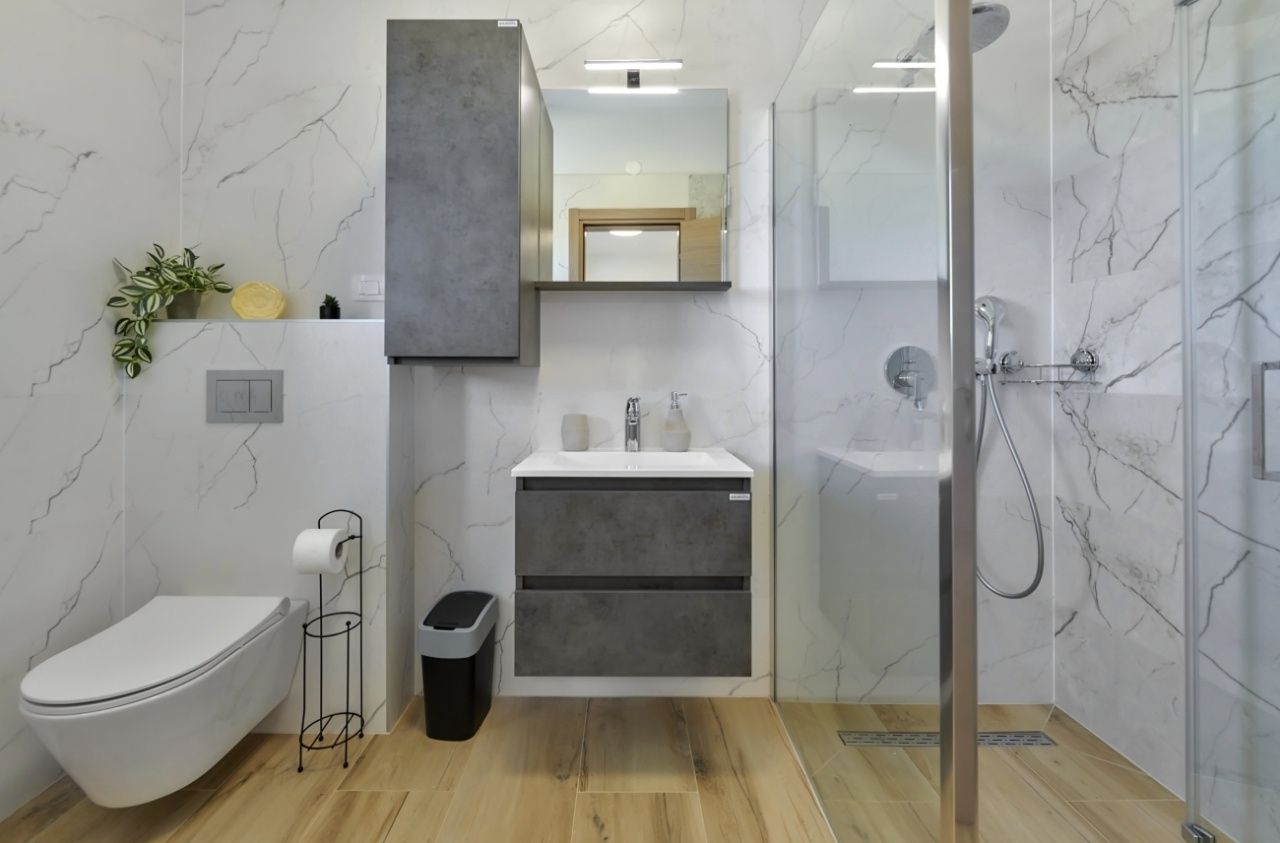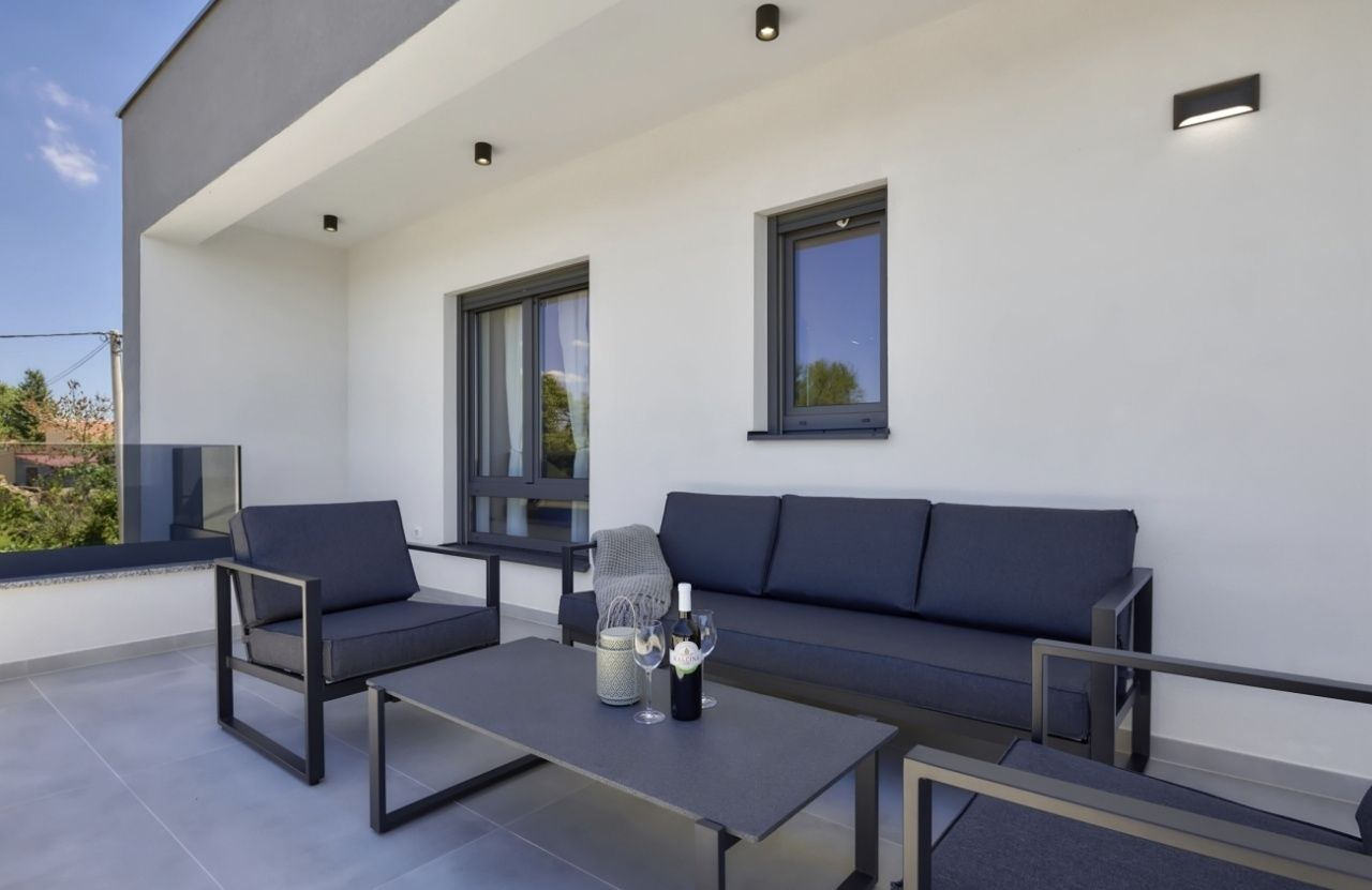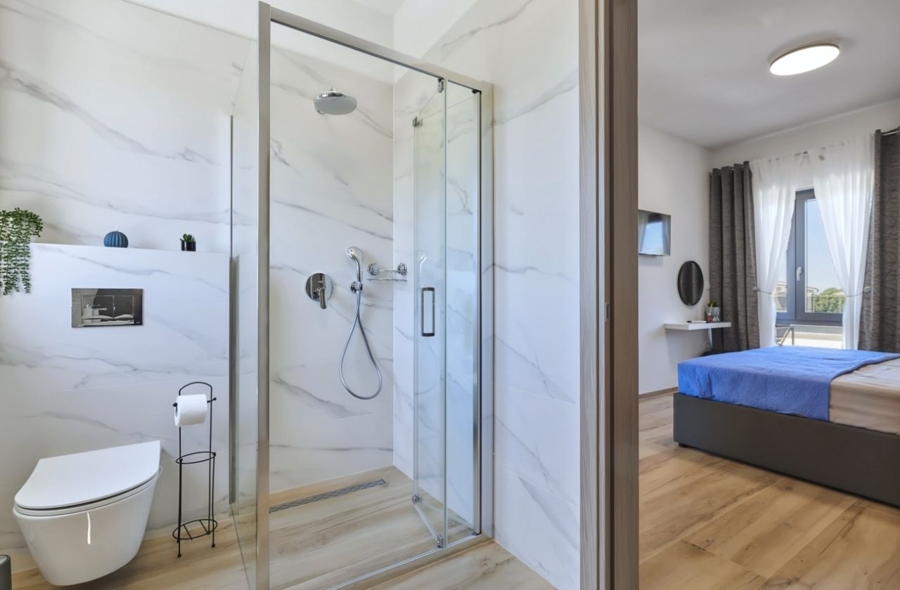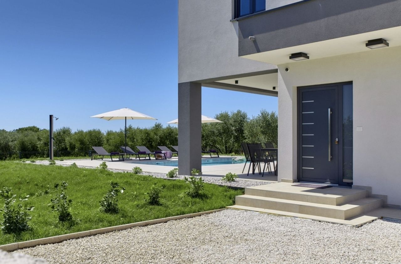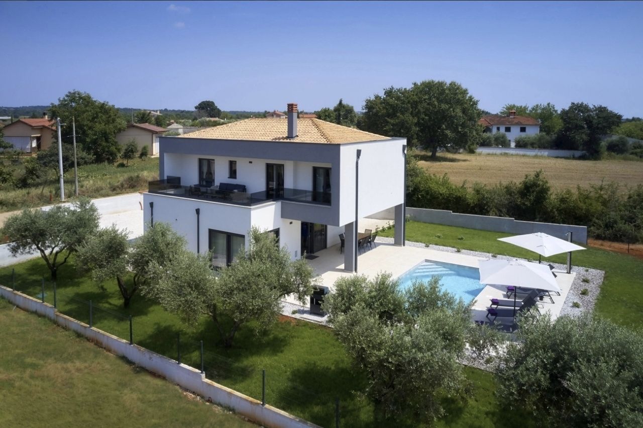 ISTRIE, LOBORIKA - dům ve výstavbě! Jen pár minut jízdy od centra Puly, v obci Loborika, je na prodej moderní dům. Byl postaven na pozemku o velikosti 900m2. Dům má 162 m2 a rozkládá se na dvou podlažích. V přízemí se nachází vstup, kuchyně s jídelnou a prostorným obývacím pokojem, místnost na pračku a koupelna. Obývací pokoj vede na velkou krytou terasu, prostor na opalování a bazén 8mx4m, který si můžete užívat po celý den. Vnitřní schodiště spojuje přízemí s prvním patrem domu, kde jsou tři ložnice, každá s vlastní koupelnou. Dva pokoje mají přímý vstup na velkou terasu 32m2 a komoru. Stejně tak je v obývacím pokoji komín na tuhá paliva, který dává novým majitelům možnost instalace krbových kamen na dřevo nebo pelety. Každý pokoj je vybaven klimatizací. Bylo instalováno PVC truhlářství se sítěmi proti hmyzu a elektrickými roletami. Pokud si chcete užít rodinný život nebo využít dům k turistickým účelům a zajistit si rychlou návratnost investice, tato nemovitost URČITĚ STOJÍ ZA VAŠI POZORNOST.