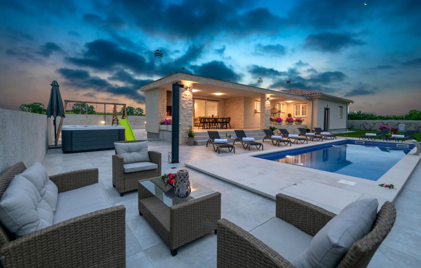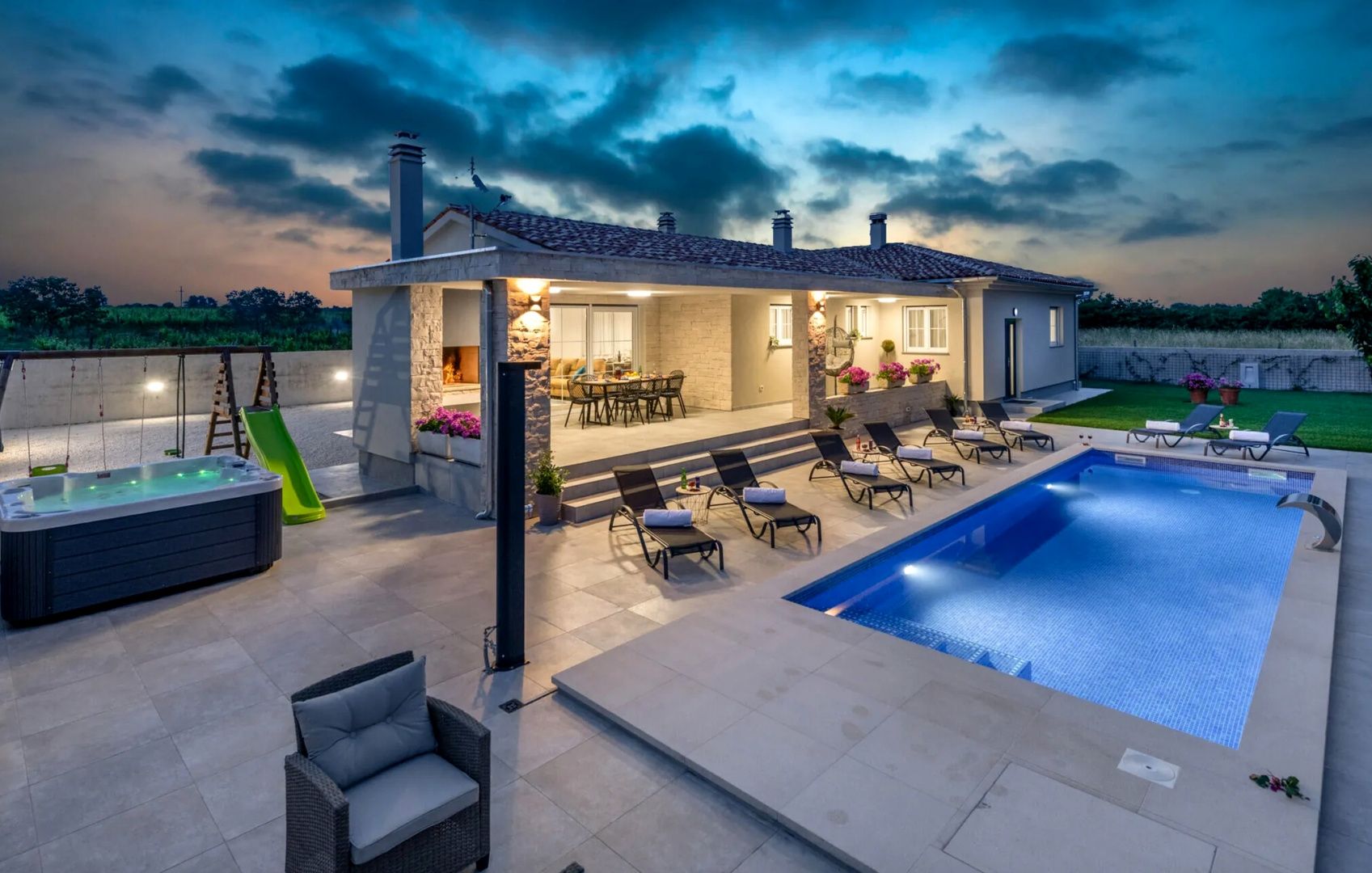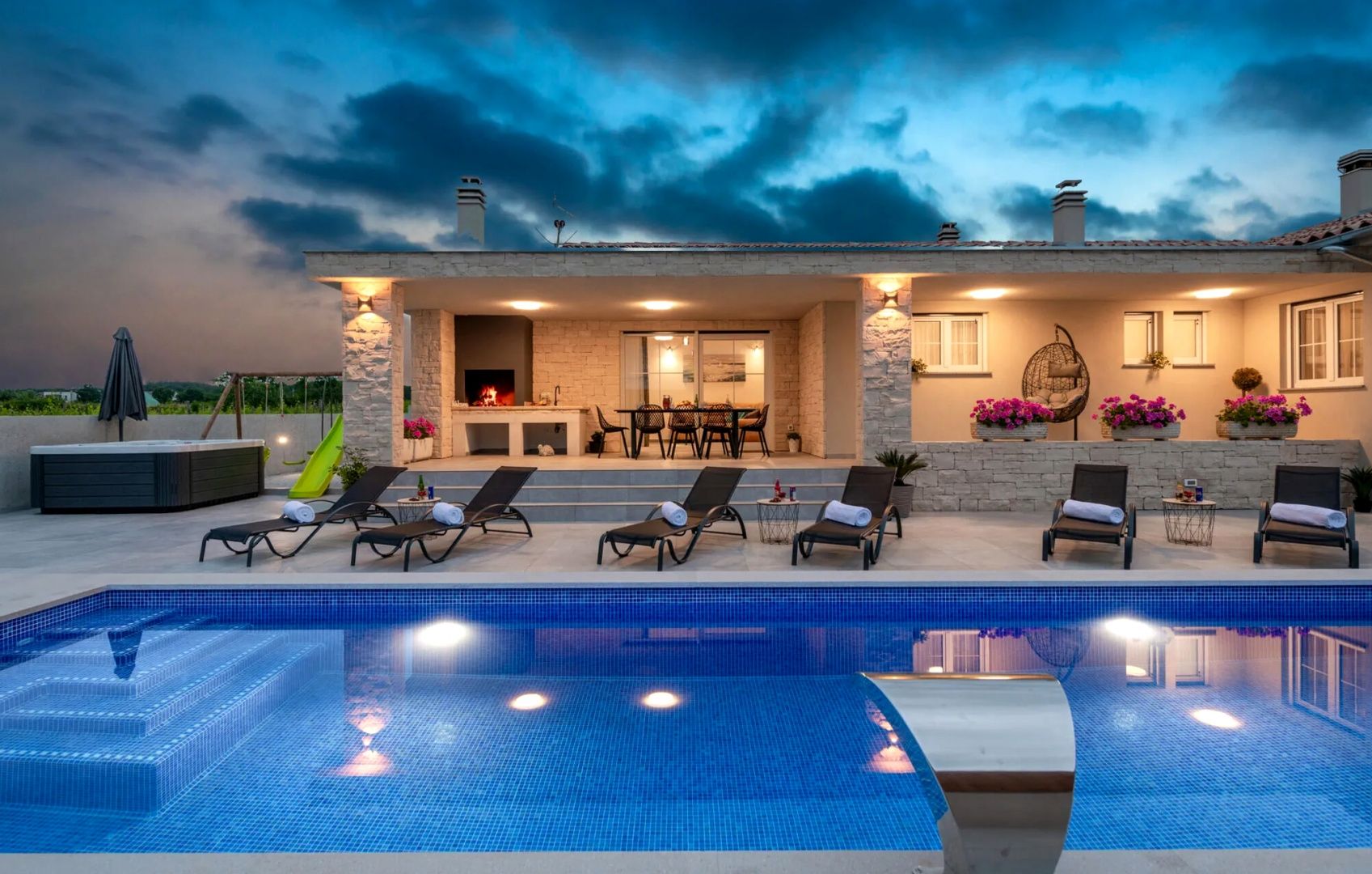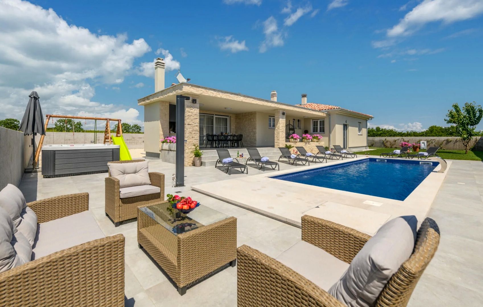 ISTRIE, MARČANA - Dům s bazénem Marčana je obec na jihovýchodě Istrijského poloostrova. Nachází se asi 12 kilometrů severovýchodně od Puly, největšího města na Istrii. Je známá jako destinace pro moře, dovolenou, víno a olivový olej. Je to kulturně bohatá obec s křišťálově čistým mořem a téměř neskutečnou krajinou skládající se z luxusních zátok a zelených poloostrovů. Její 36 kilometrů dlouhé pobřeží představuje nejméně urbanizovanou pobřežní zónu na Istrii. Marčana a její úrodná zelená pole s mírnými kopci, které se svažují do skrytých skalnatých zátok a uzavřených vesnic a městeček, jsou neobjeveným pokladem východního pobřeží Istrie. V této krajině idylických a mírných výhledů je na prodej dům s bazénem. Mikrolokace nabízí autentický zážitek malého istrijského městečka, intimitu, úlevu od každé hektické námahy a odpočinek od hluku, a zároveň blízkost moře a dynamických istrijských měst s řadou služeb. Kromě mikrolokace se nemovitost vyznačuje také kvalitou konstrukce, která zaručuje dlouhodobou spokojenost a kvalitu bydlení. Dům s nadčasovým šarmem a architekturou, částečně obložený kamenem, zapadá do sídla a krajiny tvarem i barvou a je navržen jako jedna bytová jednotka, která se rozkládá přes jedno elegantně zařízené a dobře vybavené patro funkčního půdorysu. Skládá se z otevřeného prostoru, který spojuje kuchyň, jídelnu a obývací pokoj s přístupem na krytou terasu s letní kuchyní, třemi ložnicemi s vlastními koupelnami, společenskou zónou s krbem, toaletou pro hosty a technickými místnostmi. Klimatizace v každém pokoji a elektrické podlahové vytápění v koupelnách zajišťují příjemnou teplotu po celý rok. Dvůr je ambientálně a zahradně upraven a oplocen a úplnou harmonii zajišťuje bazén s opalovací plochou, vířivka, dětské hřiště a parkoviště s nabíjecí stanicí pro elektromobily. Vynikající poloha a prostorové uspořádání interiéru i exteriéru této nemovitosti poskytují příležitost pro pohodlné rodinné bydlení nebo investici do turistického pronájmu.