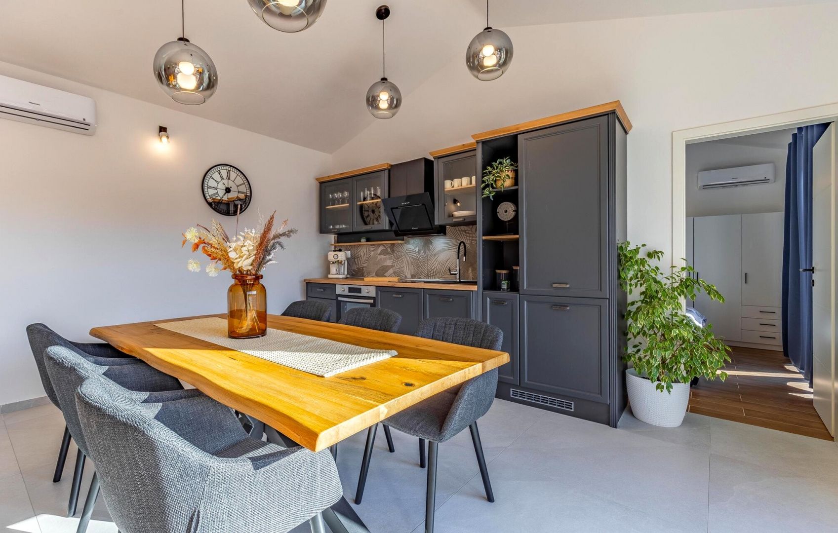 ISTRIE, MARČANA - Dům s bazénem na okraji obce Marčana je obec na jihovýchodě Istrijského poloostrova. Nachází se asi 12 km severovýchodně od Puly, největšího města na Istrii. Je známá jako destinace pro moře, dovolenou, víno a olivový olej. Je to kulturně bohatá obec s křišťálově čistým mořem a téměř neskutečnou krajinou skládající se z luxusních zátok a zelených poloostrovů. Jejích 36 kilometrů pobřeží tvoří nejméně urbanizovanou pobřežní zónu na Istrii. Marčana a její úrodná zelená pole s mírnými kopci, které se svažují do skrytých skalnatých zátok a skromných vesnic a městeček, jsou neobjevenými poklady východního pobřeží Istrie. V této krajině idylických a mírných výhledů je na prodej dům s bazénem na okraji obce. Mikrolokace nabízí autentický zážitek malého istrijského městečka, intimitu a úlevu od každé hektické námahy a hluku, a zároveň je blízko moře a dynamických istrijských měst s řadou služeb. Kromě lokality, která poskytuje naprostý komfort, se nemovitost vyznačuje také kvalitou konstrukce, která zaručuje dlouhodobou spokojenost a kvalitu bydlení. Dům s nadčasovou architekturou zapadá do sídla a krajiny svým tvarem i barvou a je navržen jako vkusně zařízená a dobře vybavená bytová jednotka, která se rozkládá na jednom patře. Skládá se z otevřeného prostoru, který spojuje kuchyň, jídelnu a obývací pokoj, tří ložnic a tří koupelen. Dvůr je ambientálně a zahradně upraven a oplocen a nachází se na něm bazén s prostorem na opalování. Poloha, struktura a komfort činí z této nemovitosti ideální příležitost pro klidný rodinný život, ale i pro úspěšný turistický pronájem.