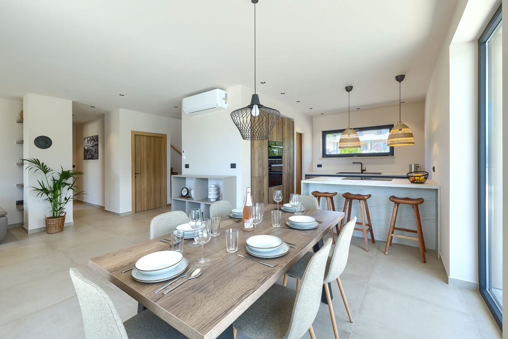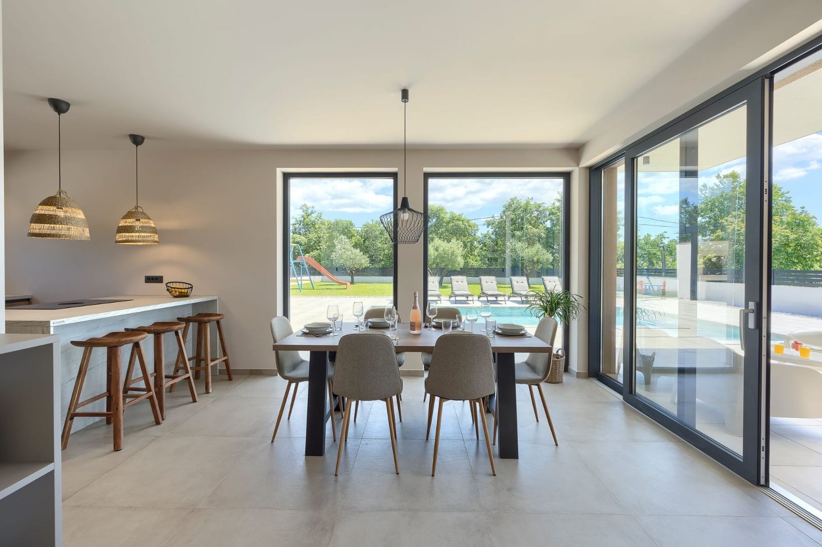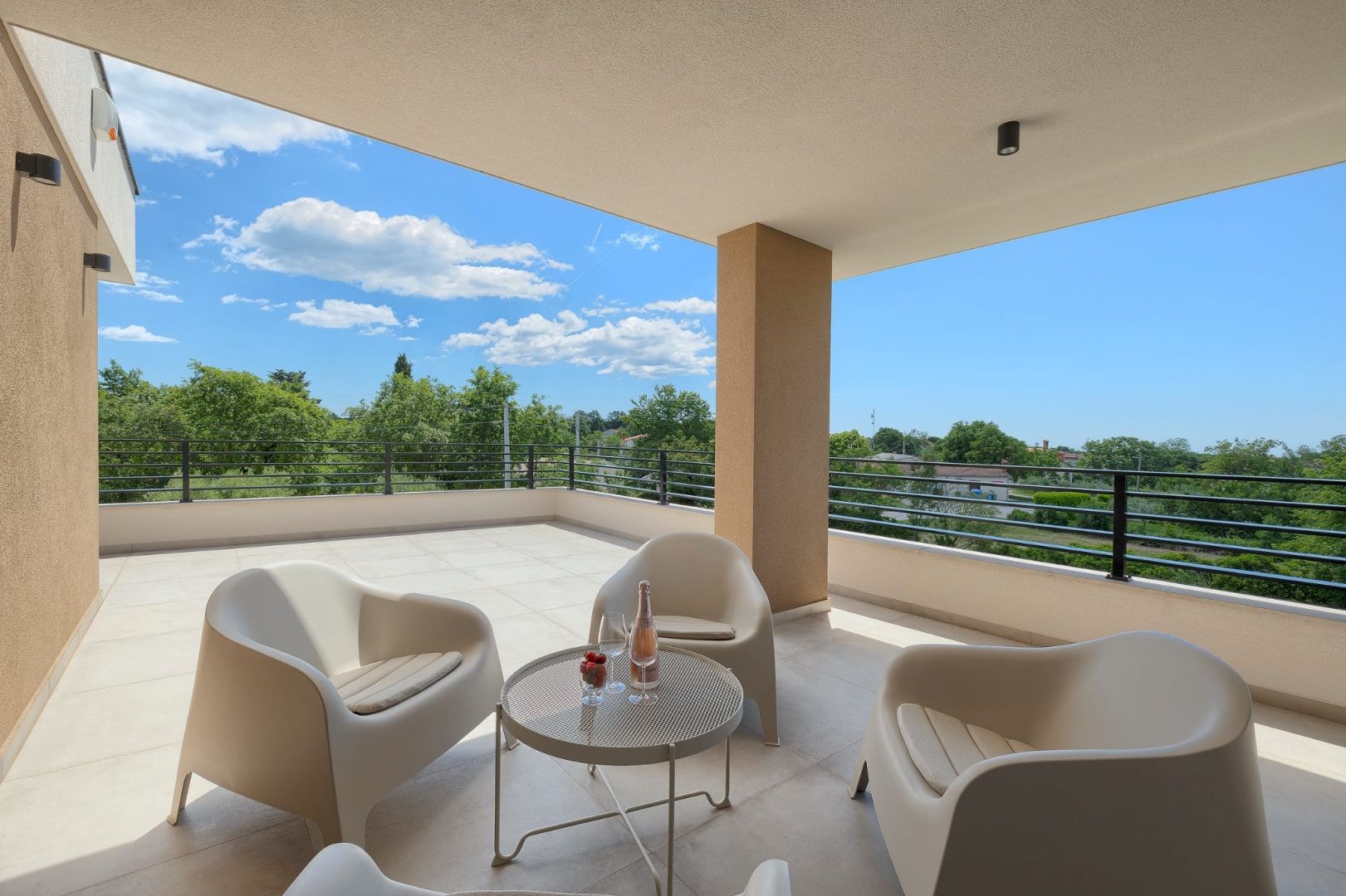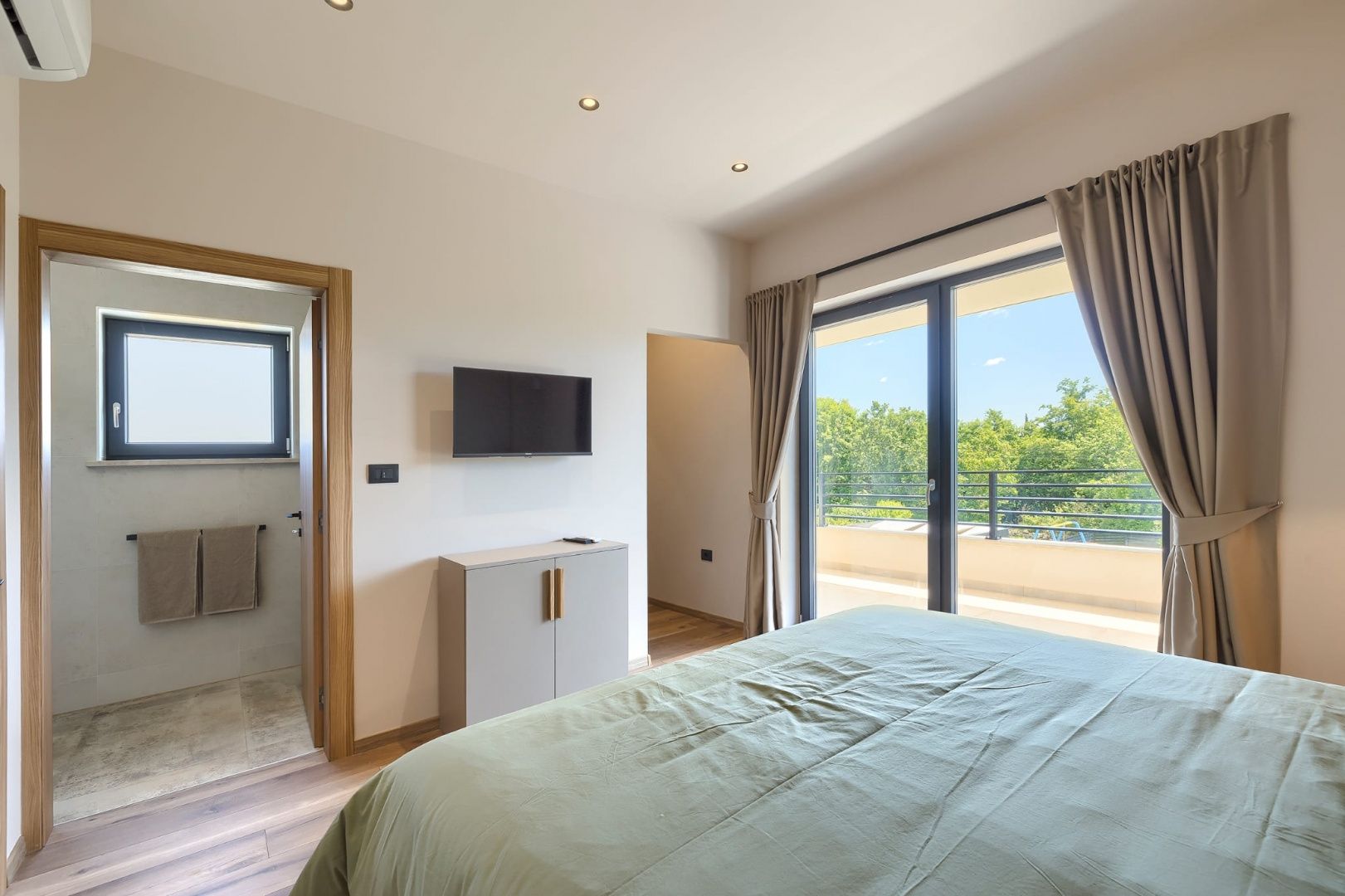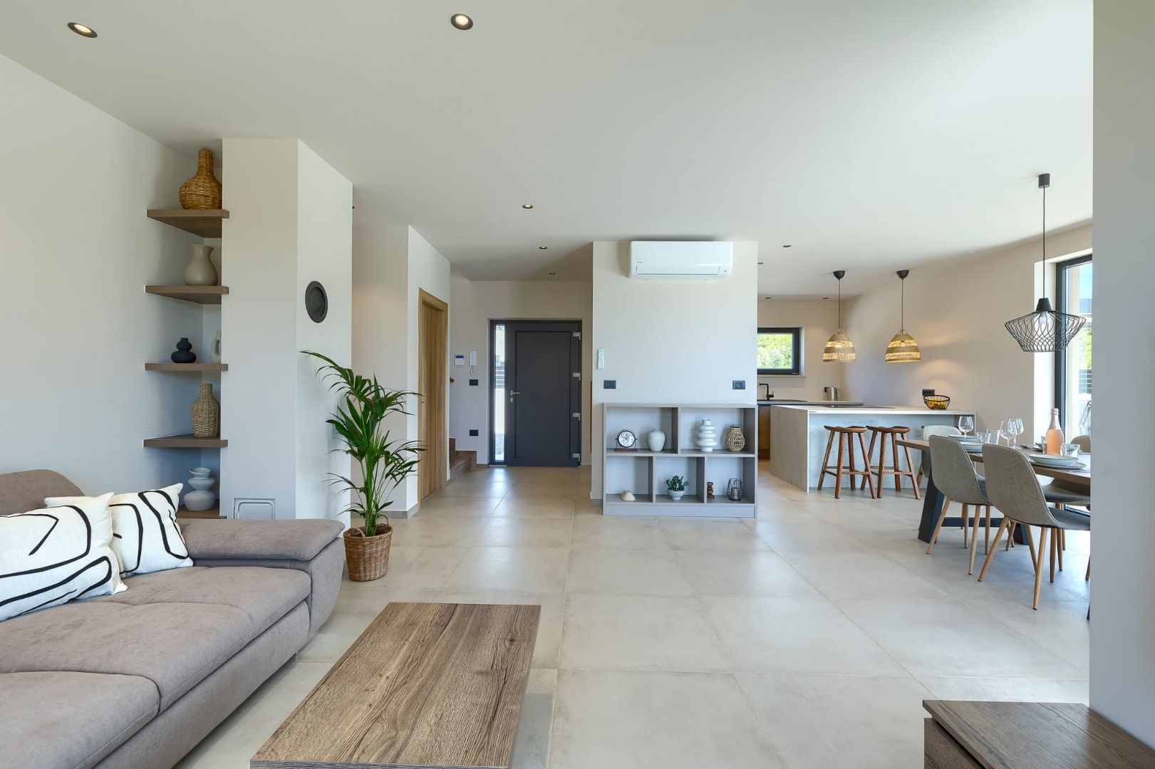 ISTRIE, MARČANA – Nová moderní vila s bazénem v klidném prostředí Obec Marčana se nachází v jihovýchodní části Istrie, známé svým klidným okolím, autentickou istrijskou atmosférou a dobrým dopravním spojením do Puly a na pobřeží. Oblast nabízí ideální rovnováhu mezi soukromím, přírodou a dostupností všech klíčových zařízení. Právě v takovém prostředí, v osadě Orbanići, se nachází tato moderní samostatně stojící vila, která kombinuje moderní styl výstavby a funkčnost přizpůsobenou každodennímu životu nebo turistickému pronájmu. Celková čistá obytná plocha je 170 m², rozložená do dvou podlaží – přízemí a první patro. Přízemí je navrženo jako otevřený prostor, který zahrnuje kuchyň, jídelnu a obývací pokoj s přístupem na krytou terasu (22,44 m²). Na stejném patře se nachází další ložnice, koupelna, prádelna a technická místnost. V patře se nacházejí dvě ložnice, každá s vlastní šatnou a koupelnou, s přístupem na prostornou částečně krytou terasu o rozloze 46 m². Budova byla postavena v roce 2025 s použitím kvalitních materiálů a moderních řešení: • tepelná izolace (15 cm polystyren) • hliníkové truhlářské práce • velké prosklené stěny pro maximální přirozené osvětlení • bezpečnostní dveře • kvalitní keramická podlaha (Marazzi) • invertorové klimatizace ve všech místnostech • nábytek na míru Vila se nachází na pozemku o rozloze 851 m². Zahrada je kompletně upravená a oplocená a zahrnuje: • 34 m² bazén se sluneční terasou • letní kuchyň s krbem a pergolou • dětské hřiště • několik parkovacích míst • automatizovaný hliníkový plot Nemovitost představuje kvalitní řešení pro klidný rodinný život nebo jako investici k turistickému pronájmu, s již potvrzenou dobrou obsazeností a funkčním uspořádáním prostoru.