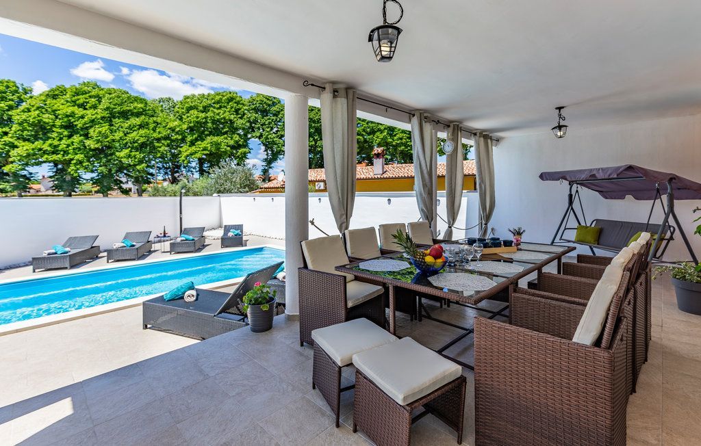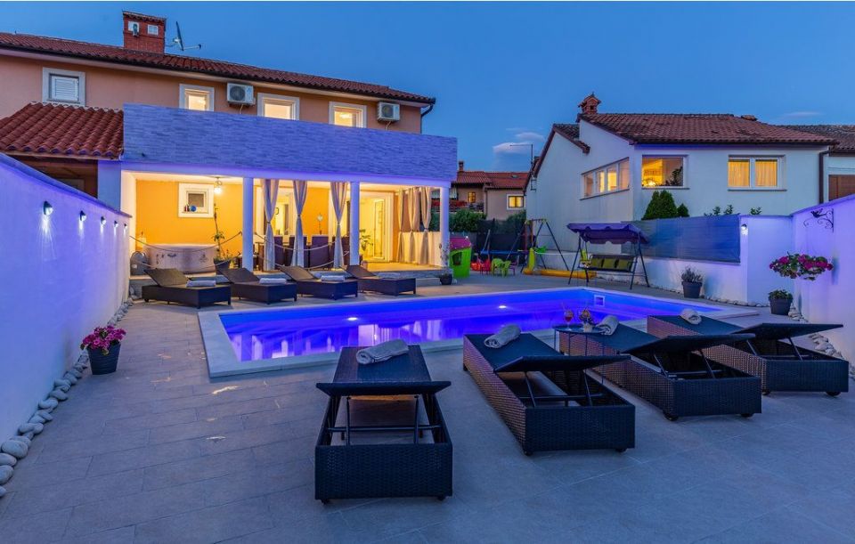 ISTRIE, MARČANA - Nově zrekonstruovaný dům s bazénem Obec Marčana se nachází v Istrijském kraji v jihovýchodní části Istrijského poloostrova, sousedí s městy Vodnjan a Pula a obcemi Barban, Svetvinčenat a Ližnjan. Obec Marčana také sousedí s obcí Raša v regionu Labin přes Rašský záliv. Nově zrekonstruovaný dům s bazénem. Jedná se o dvojstavbu, tj. dům je rozdělen na dvě téměř totožné části. Kompletně oddělený a přepažený zdí poskytuje novým majitelům části domu naprosté soukromí. Ke každému bytu náleží garážové stání. Byt v části domu k prodeji je dvoupodlažní. Přízemí tvoří vstupní chodba, kuchyně s jídelnou a obývacím pokojem, jedna ložnice s koupelnou. V prvním patře jsou celkem tři ložnice, další dvě koupelny, komora. Pokoj se otevírá na krásnou terasu. Zahrada, která je přístupná z obytné části, se skládá z kryté terasy, bazénu s prostorem na opalování, grilu. Dům se v létě pronajímá na turistickém trhu, což dává novým majitelům příležitost věnovat se cestovnímu ruchu. Velmi zajímavá nemovitost stojí za zmínku.