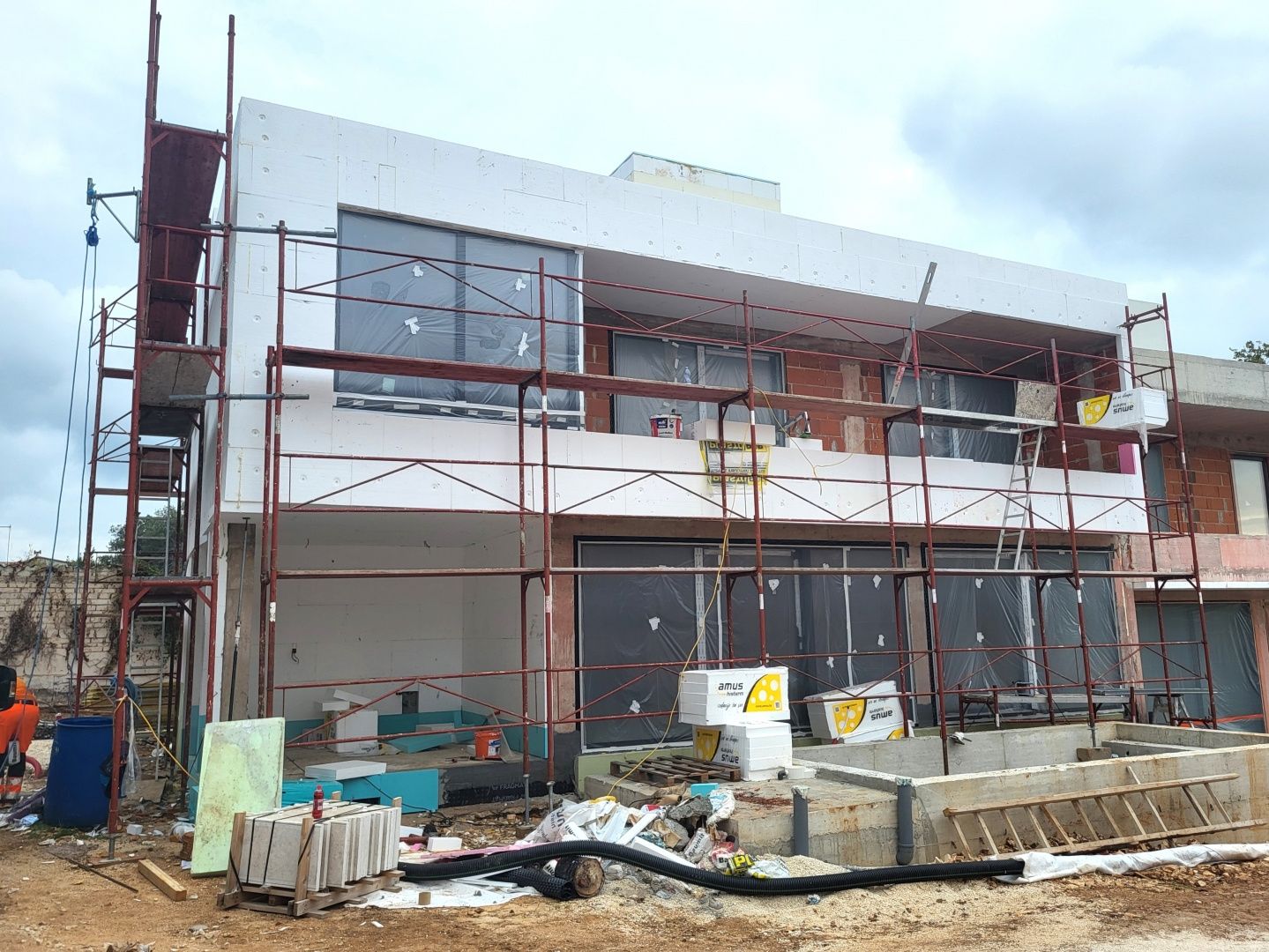ISTRIE, MEDULIN - Dům s bazénem, střešní terasou a výhledem na moře Medulin je vesnice a obec nacházející se v jižní části Istrijského poloostrova, pouhých 10 km od centra Puly, největšího města na Istrii, známého také svými římskými ruinami a amfiteátrem Arena. Medulin je oblíbenou turistickou destinací, která návštěvníkům nabízí kombinaci přírodních krás, kulturního dědictví a rekreačních aktivit. Je známý svými krásnými plážemi, čistým mořem a historickými památkami. Prodává se moderní dvoupatrový dům s bazénem. Jedná se o dvoupatrovou budovu o rozloze 200 m2. V přízemí se nachází toaleta a kuchyň s otevřeným konceptem, jídelnou a obývacím pokojem s přímým přístupem k bazénu. V prvním patře se nacházejí 3 ložnice a 2 koupelny, zatímco vnitřní schodiště vede na prostornou střešní terasu s krásným výhledem na moře a okolí. Na terase je prostor pro vířivku. Velké prosklené stěny a okna na schodišti zajišťují dostatek přirozeného světla ve všech místnostech. Dům má podlahové vytápění a klimatizaci v každé místnosti. Cena se vztahuje na kompletně dokončenou budovu s vestavěnou keramikou a sanitární keramikou, ale bez nábytku. Plánované dokončení výstavby je březen 2026. Tato moderní nemovitost s bazénem, vířivkou, střešní terasou a výhledem na moře představuje atraktivní příležitost pro moderní rodinný život nebo pro turistický pronájem.