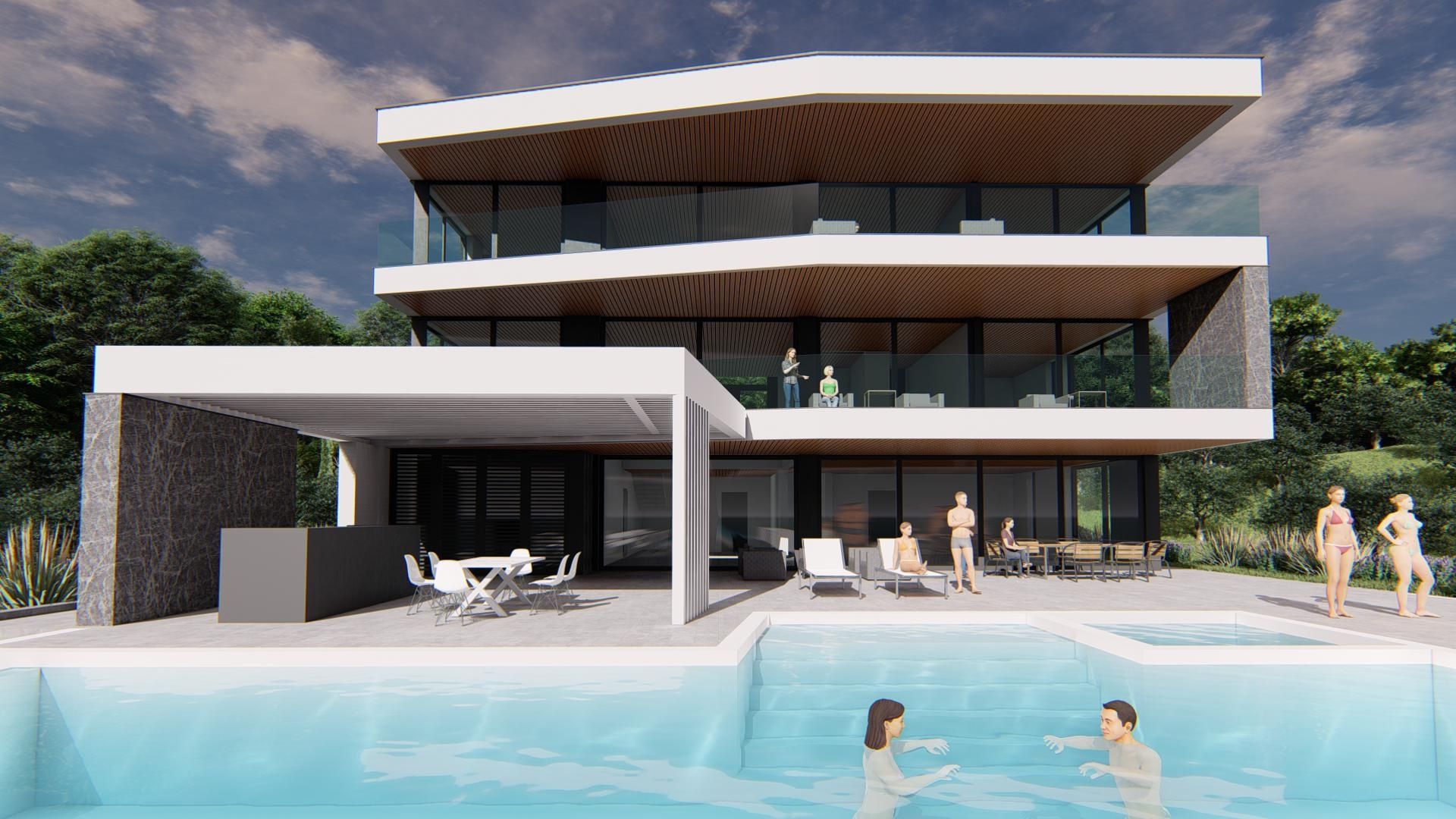 ISTRIE, MEDULIN – Stavební pozemek s pravomocným stavebním povolením pro vilu s výtahem a bazénem, 1. řada u moře V samém srdci Medulinu, v jedné z nejvzácnějších a nejvyhledávanějších lokalit podél istrijského pobřeží, se nachází tento výjimečný stavební pozemek – doslova první řada u moře. Jedná se o příležitost, která se na trhu objevuje jen zřídka, pozemek o rozloze 1166 m² s vydaným pravomocným stavebním povolením a zaplacenými inženýrskými sítěmi pro výstavbu moderní rodinné vily s bazénem, která dokonale zapadne do harmonie středomořské krajiny a azurové modři Jadranu. POPIS POZEMKU A PROJEKTU: Pozemek pravidelného obdélníkového tvaru se nachází v klidné slepé ulici bez provozu, na místě, které zaručuje naprosté soukromí, a moře je doslova jen dva kroky odtud – pouze 2 metry od okraje pozemku. Projekt počítá s výstavbou působivé moderní rodinné vily s celkovou obytnou plochou 540,70 m², rozložené na třech podlažích. Vila byla navržena se zvláštním důrazem na estetiku, funkčnost a výhledy – každý pokoj nabízí ničím nerušený výhled na moře a okolní krajinu. Přízemí nabízí velký otevřený obytný prostor o rozloze 115 m² s prostorným obývacím pokojem, jídelnou a kuchyní s ostrůvkem. Prosklené stěny po celé výšce se otevírají na krytou terasu o rozloze 63,30 m² a k bazénu, čímž vytvářejí dokonalé propojení mezi vnitřním a venkovním prostorem. Kromě obytného prostoru se zde nachází další kuchyň pro personál nebo vašeho soukromého „šéfkuchaře“, technická místnost, toaleta pro hosty, venkovní toaleta a koupelna a další úložný prostor, díky čemuž je přízemí funkční a zároveň luxusní. V prvním patře projekt plánuje tři ložnice s vlastními koupelnami, z nichž jedna má vlastní šatnu a přístup na krytou terasu o rozloze 61,66 m², zatímco ve druhém patře se nacházejí dvě exkluzivní ložnice, z nichž každá má vlastní koupelnu a šatnu. Hlavní ložnici zdobí pohodlná větší koupelna se samostatnou sprchovou vanou, samostatnou toaletou a vlastní prostornou šatnou. V tomto patře se nachází také prostorná wellness zóna o rozloze 56 m² se saunou, vířivkou, další kuchyní a koupelnou s přístupem na terasu o rozloze 62,29 m² s nezapomenutelným panoramatickým výhledem na moře. Celá vila je propojena výtahem, což dále zdůrazňuje luxus, pohodlí a dostupnost na každém patře. TECHNICKÉ A DOPLŇUJÍCÍ INFORMACE * Plocha pozemku: 1166 m² * Plocha plánované vily: 540,70 m² (P + 2) * Stavební povolení platné do září 2028. * Vzdálenost od moře: 2 m * Plánovaný bazén o rozloze 70 m² * Zajištěna 4 kryté parkovací místa * Pro předmětný stavební pozemek je koeficient zastavěnosti 0,25 a koeficient využití 0,65. * Předmětná budova bude vysoká 9,96 m. * Předmětná budova bude mít plochou střechu se sklonem až 5 %. * Předmětný stavební pozemek bude zahradnicky upraven na 40 %. DOPLŇUJÍCÍ INFORMACE: * Vila má vlastní výtah, který propojuje všechna podlaží. * Pozemek je ve vlastnictví soukromé osoby, vlastníka 1/1, bez finančních a jiných břemen. * Pozemek má pravidelný tvar s mírným svahem od vrcholu pozemku směrem k moři. * Pozemek se prodává společně s vydaným a platným stavebním povolením na výstavbu moderní vily a bazénu. * Pozemek má veškerou potřebnou infrastrukturu, která se nachází hned vedle pozemku. * Při prohlídce pozemku získáte také nahlédnutí do kompletní dokumentace k pozemku a projektu. * Infrastruktura (voda, elektřina, kanalizace, telefon) hned vedle pozemku LOKALITA Tato lokalita představuje dokonalou kombinaci intimity, přírodních krás a luxusního prostředí. Skrytý před hlukem a dopravou a zároveň jen pár minut jízdy od medulinského nábřeží, obchodů, restaurací a přístavů - tento pozemek nabízí vše, co si jen můžete přát. První řada u moře - místo, kde se ráno probouzíte s vůní borovic a šuměním vln a večery zakončujete výhledem na západ slunce, který se ponořuje do nekonečné modři Jadranu. ZÁVĚR Toto je jedinečná investiční příležitost v celé Istrii – pozemek s hotovým projektem a pravomocným stavebním povolením na vilu, která kombinuje architektonickou eleganci, luxus a jedinečnou polohu přímo u moře. Ať už hledáte osobní koutek ráje nebo bezpečnou investici s vysokou přidanou hodnotou, tento pozemek představuje rozhodnutí, které přesahuje trh – je to pozvánka k vytvoření domova, který se stane součástí istrijského příběhu moře, slunce a sofistikovanosti.