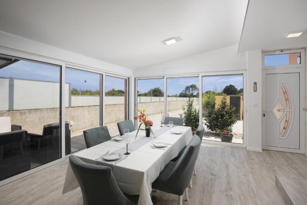 ISTRIE, MEDULIN - Tři přízemní domy u moře k dlouhodobému pronájmu! Agentura DUX nabízí tři přízemní domy k dlouhodobému pronájmu na minimálně jeden rok. Přízemní domy pojmou kapacitu 12 osob, takže se jedná o ideální dům pro velkou rodinu nebo firmy se zaměstnanci, kteří cestují. Největší dům má 144 m2 se třemi ložnicemi. Druhý v řadě má 84 m2 se dvěma ložnicemi a poslední má 54 m2 s jednou ložnicí. Uvedená cena se vztahuje k měsíčnímu nájemnému, které nezahrnuje náklady na energie. Pronajímatel hradí náklady na údržbu prostředí a péči o bazén v letních měsících. Vytápění a chlazení zajišťuje klimatizace a k dispozici jsou také peletová kamna. Dvůr nabízí dostatek prostoru pro společné užívání si u bazénu, vířivky, grilu a dětské herny. Lokalita je velmi klidná a obklopená přírodou, ale v dosahu pláží, obchodů, restaurací a centra Puly. Kauce ve výši jednoho měsíčního nájmu. Pro více informací nás kontaktujte!