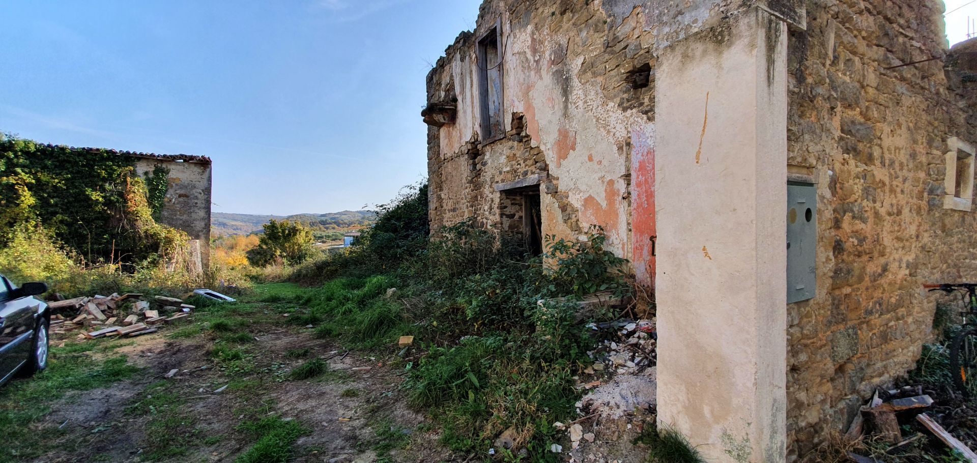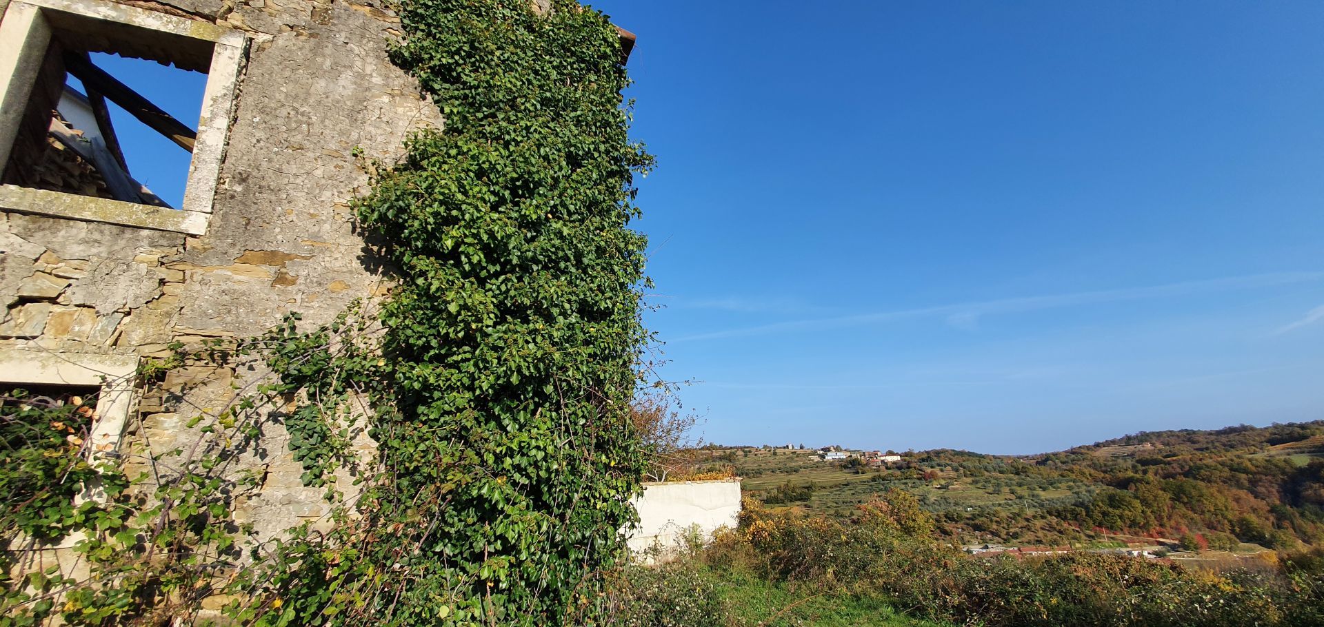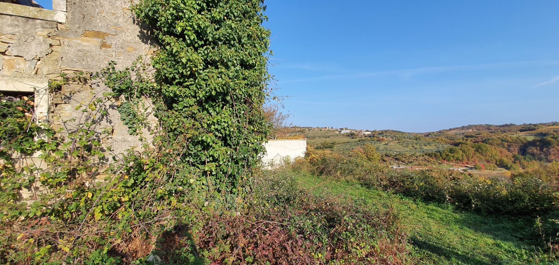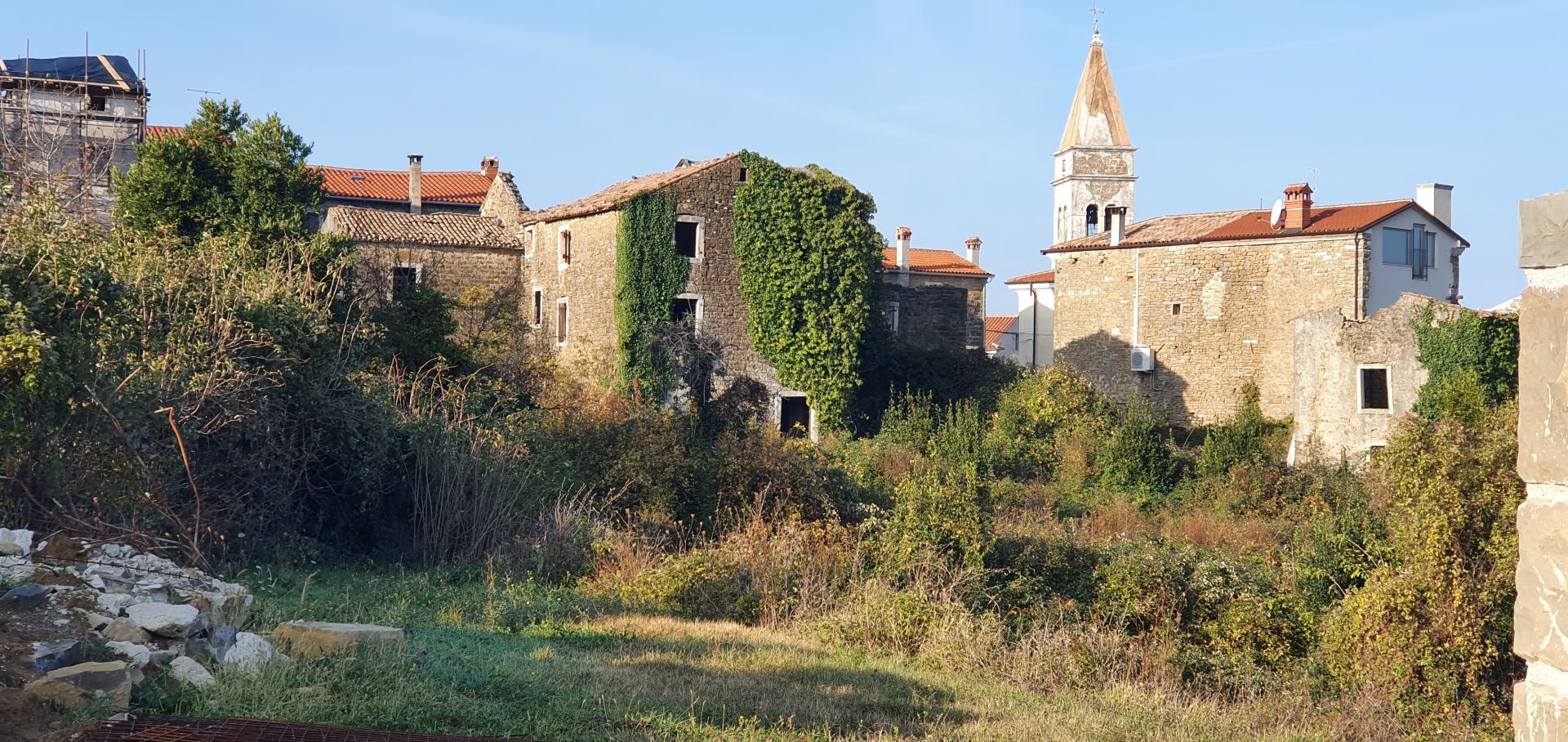 ISTRIE, MOMJAN – Atraktivní pozemek s výhledem a kamennými budovami