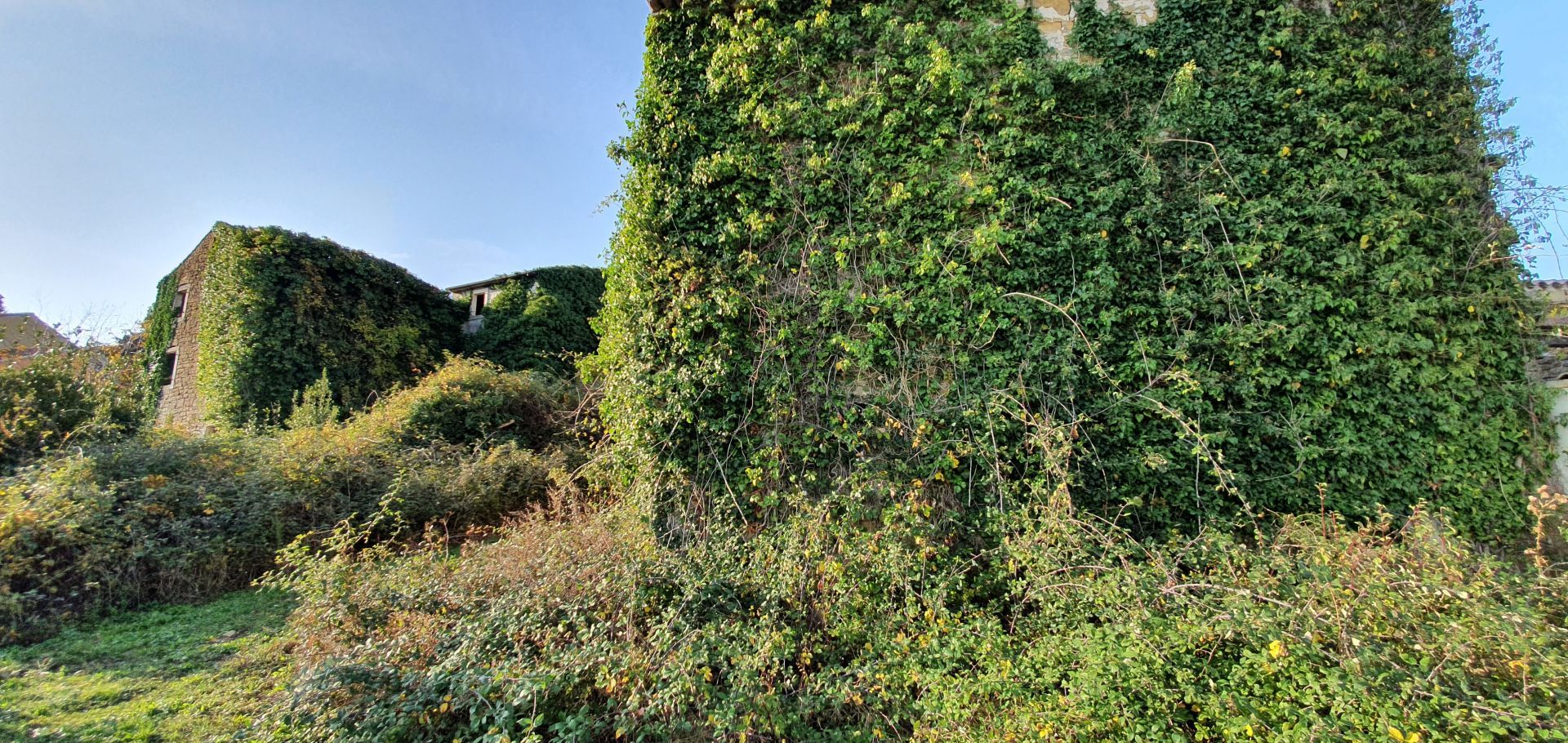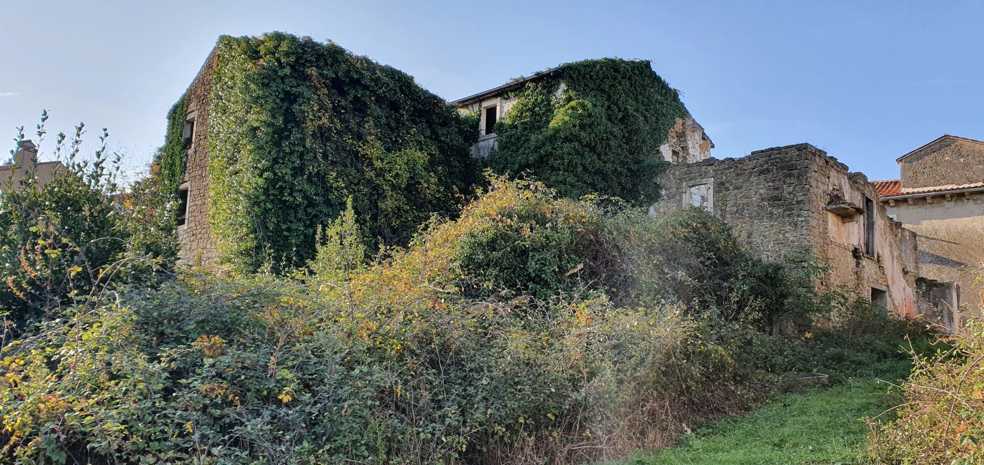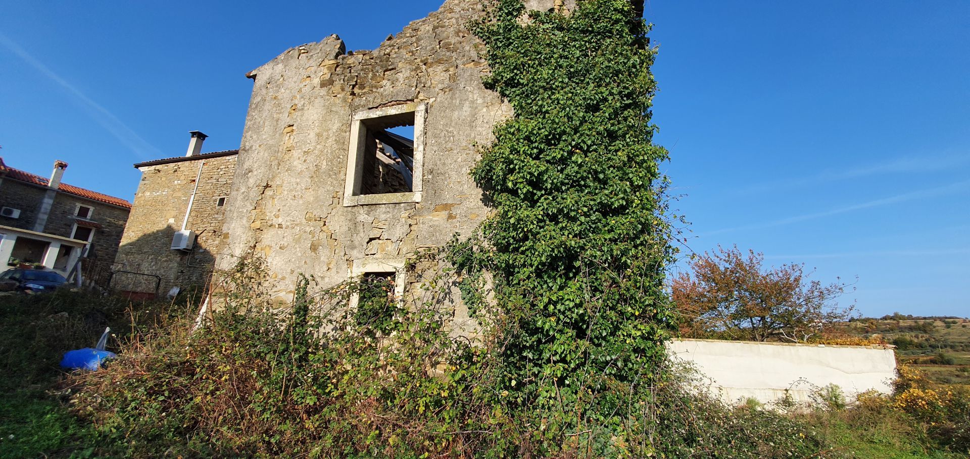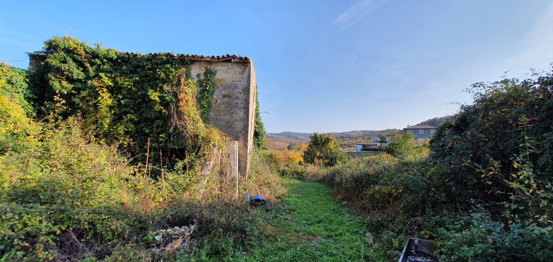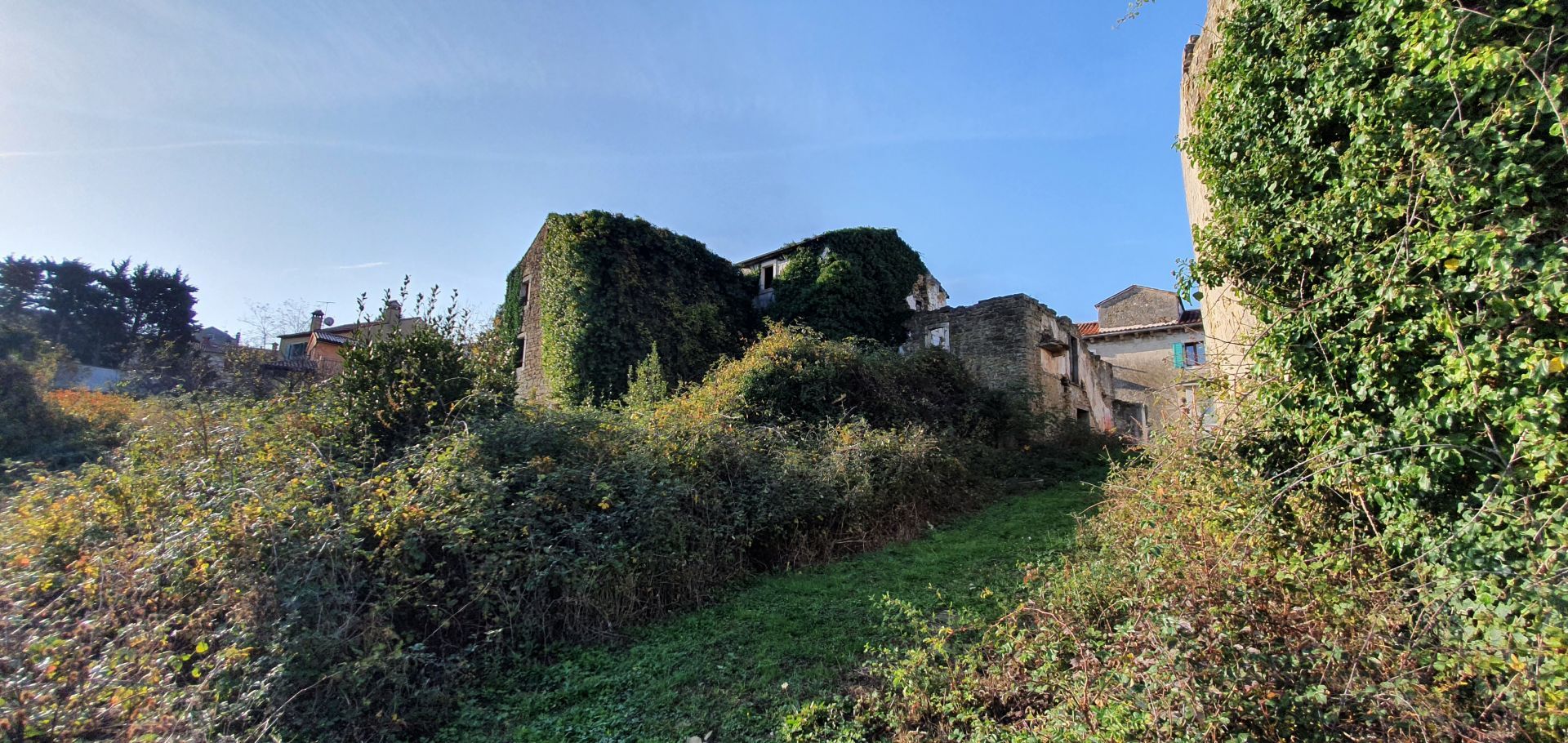ISTRIE, MOMJAN – Atraktivní pozemek s výhledem a kamennými budovami
