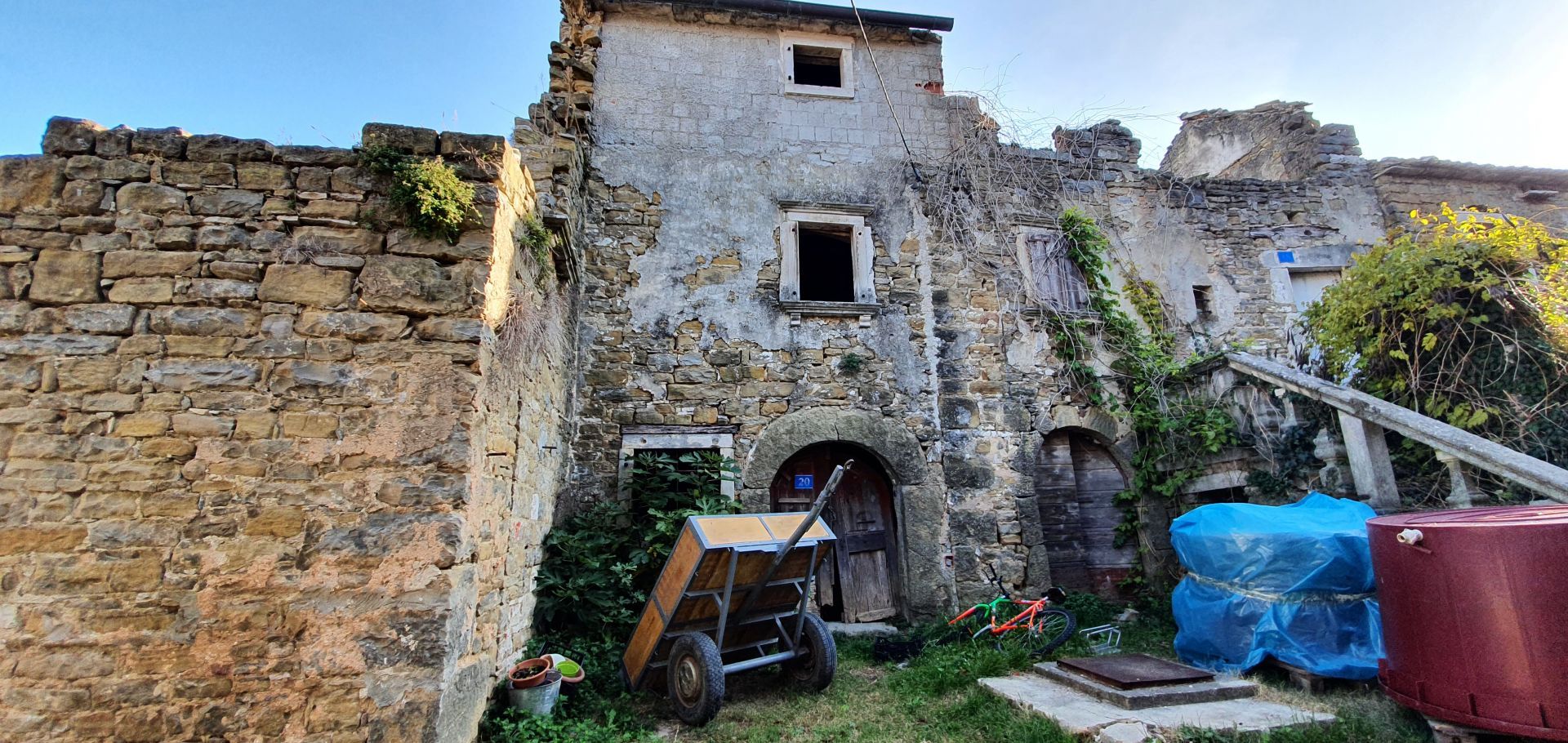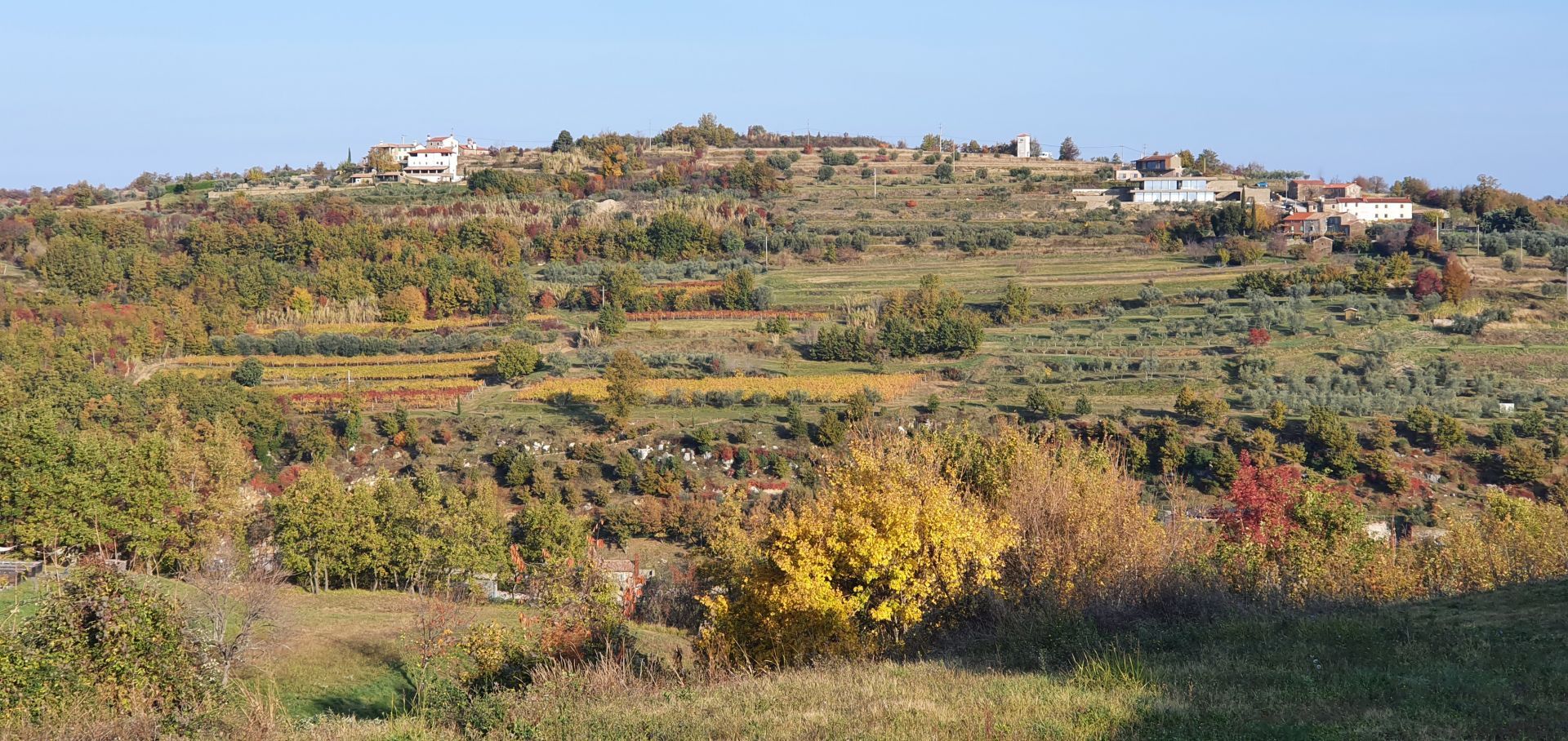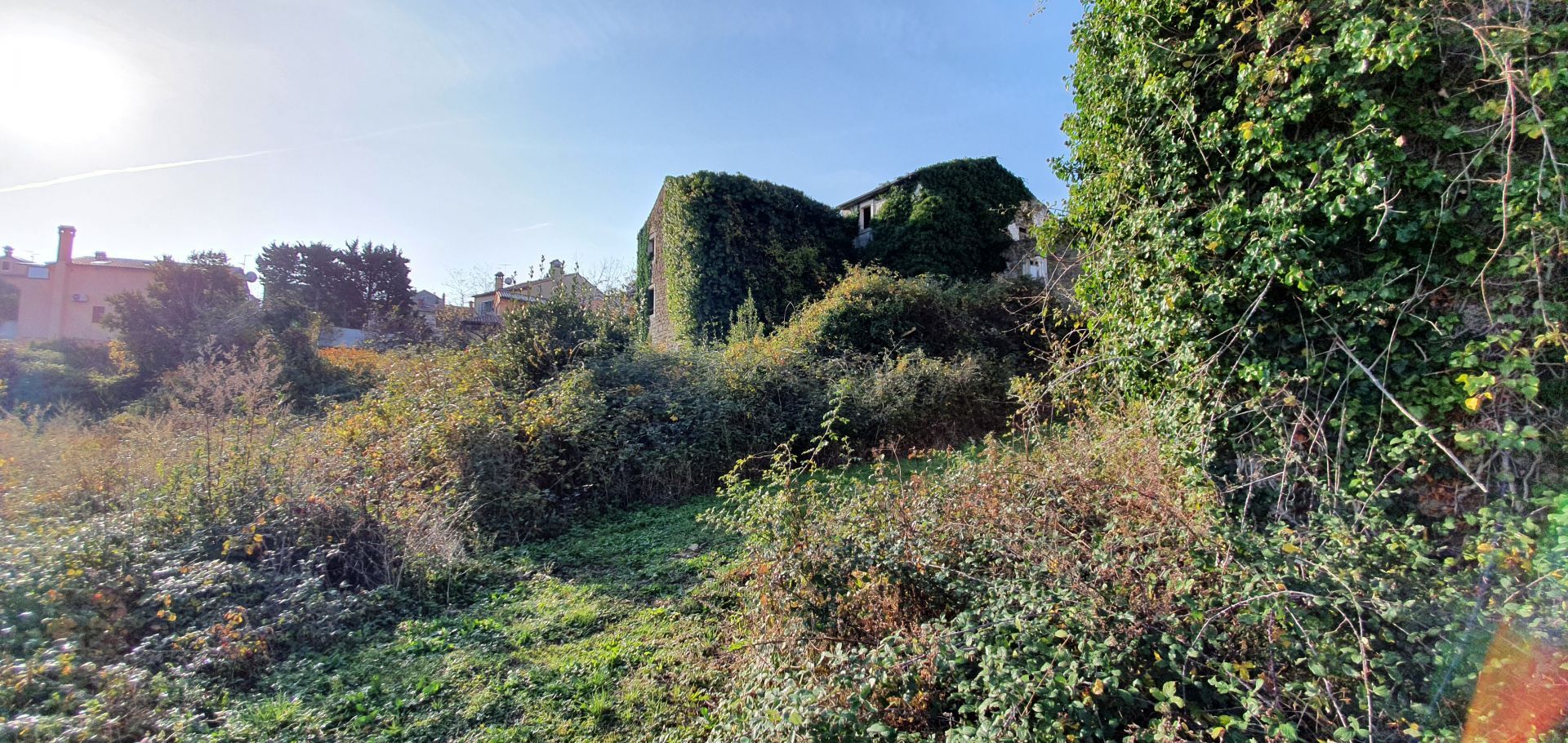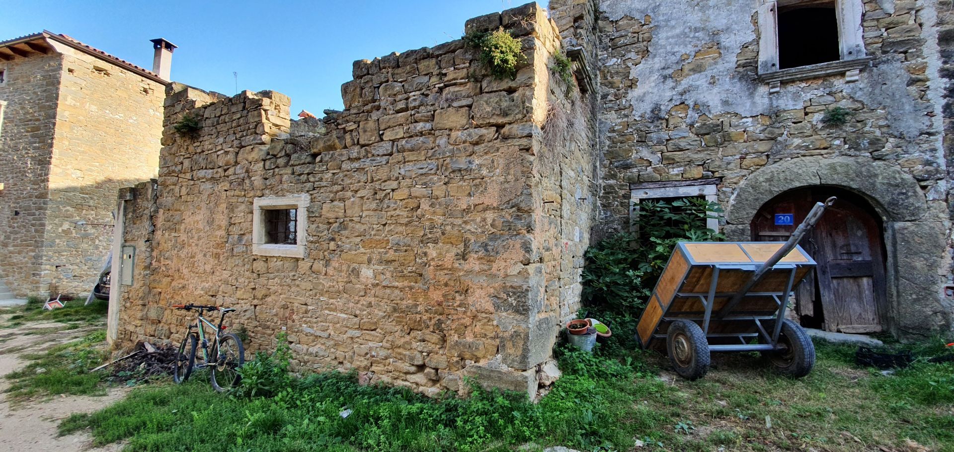 ISTRIE, MOMJAN – Atraktivní pozemek s výhledem a kamennými budovami