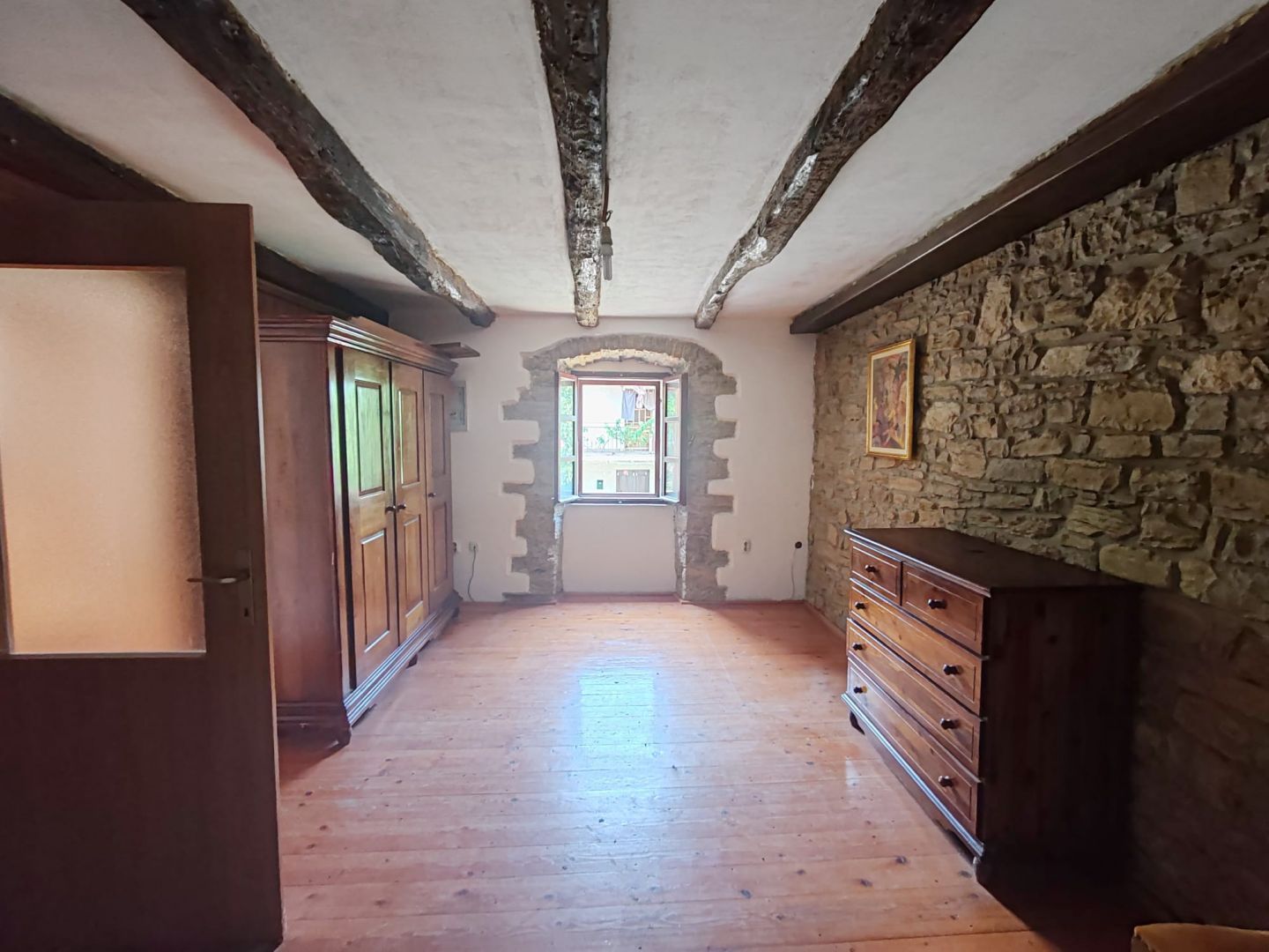 ISTRIE, MOTOVUN - Krásný rustikální dům Motovun je oblíbenou turistickou destinací, která je dnes známá jako centrum hedonistů z celého světa. Starobylé istrijské akropole, ležící na vrcholu 277 metrů vysokého kopce, který dominuje údolí řeky Mirny, je jedním z nejkrásnějších starých měst ve Středomoří. Dostanete se k němu po nejdelším istrijském schodišti s 1052 schody. Motovun je městská památka zapsaná na seznamu světového dědictví UNESCO. Motovun a jeho obec, která se rozkládá na ploše 33,58 km², jsou výjimečné svou biodiverzitou, bohatou rostlinnou rozmanitostí a zvláštními mikroklimatickými vlastnostmi. Díky svým specifickým geomorfologickým vlastnostem s četnými kopci přitahuje pozornost svou přírodní krásou a nezapomenutelnými panoramatickými výhledy, které naplňují duši. Nedaleko Motovunu se prodává dvojdomek o rozloze 3 pater. V přízemí se nachází krásná taverna a vnitřní schodiště vede do prvního patra, kde se nachází ložnice a koupelna. Ve druhém patře se nachází prostorný obývací pokoj s galerií. Celková obytná plocha domu je 108 m2. TATO ČÁST DOMU JE PŘIPRAVENA K NASĚHOVÁNÍ! Spolu s tímto krásným domem se nachází další část domu, která potřebuje adaptaci, ale vzhledem k vynikajícímu stavu zdí je možné zachovat autenticitu istrijského domu. Ubytování v klidné lokalitě, okolí rekreačních domů, výhled na Motovun, blízkost atraktivních turistických zařízení dávají této nemovitosti velký potenciál a budoucímu majiteli možnost návratnosti investice prostřednictvím turistického pronájmu. Celková obytná plocha této části domu je 86 m2. Další část domu má samostatný vchod.