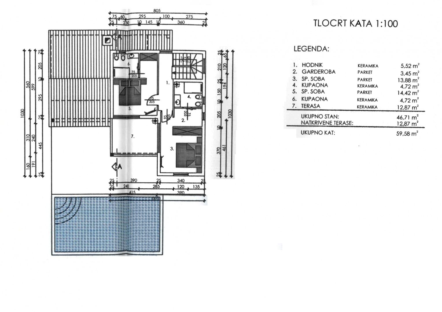 ISTRIE, MOTOVUN - Pozemek se stavebním povolením Motovun je oblíbenou turistickou destinací, která je dnes známá jako centrum hedonistů z celého světa. Starobylé istrijské akropole, ležící na vrcholu 277 metrů vysokého kopce, který dominuje údolí řeky Mirny, je jedním z nejkrásnějších starých měst ve Středomoří. Vede k němu nejdelší istrijské schodiště s 1052 schody. Motovun je městská památka zapsaná na seznamu světového dědictví UNESCO. Motovun a jeho obec o rozloze 33,58 km² jsou výjimečné svou biodiverzitou, bohatou rostlinnou rozmanitostí a zvláštními mikroklimatickými vlastnostmi. Díky svým specifickým geomorfologickým vlastnostem s četnými kopci přitahuje pozornost svou přírodní krásou a nezapomenutelnými panoramatickými výhledy, které naplňují duši. Nedaleko tohoto malebného istrijského středověkého města se prodává pozemek se stavebním povolením. Mikrolokace s panoramatickým výhledem na okolní kopce nabízí autentický zážitek malého istrijského městečka, intimitu, úlevu od každé hektické námahy a odpočinek od hluku, a zároveň blízkost dynamických istrijských měst s řadou vybavení. Katastrální pozemek má pravidelný obdélníkový tvar a terén je rovinatý a čistý. Pozemek má platné stavební povolení na výstavbu bytového domu, který svou jemnou architekturou nenarušuje životní prostředí, ale vytváří synergii přírodního prostředí a nadčasové architektury a pomocných budov - bazénu. Je navržen jako komfortní samostatně stojící dům s jednou bytovou jednotkou, která se rozkládá na dvou podlažích. Vzhledem ke své mikrolokaci, konfiguraci, úhlednému vlastnictví a dokumentaci poskytuje tento pozemek výjimečnou příležitost pro výstavbu rodinného domu nebo rekreačního domu a stavba může začít ihned. Poplatky za energie byly uhrazeny a zahájení výstavby je nahlášeno.