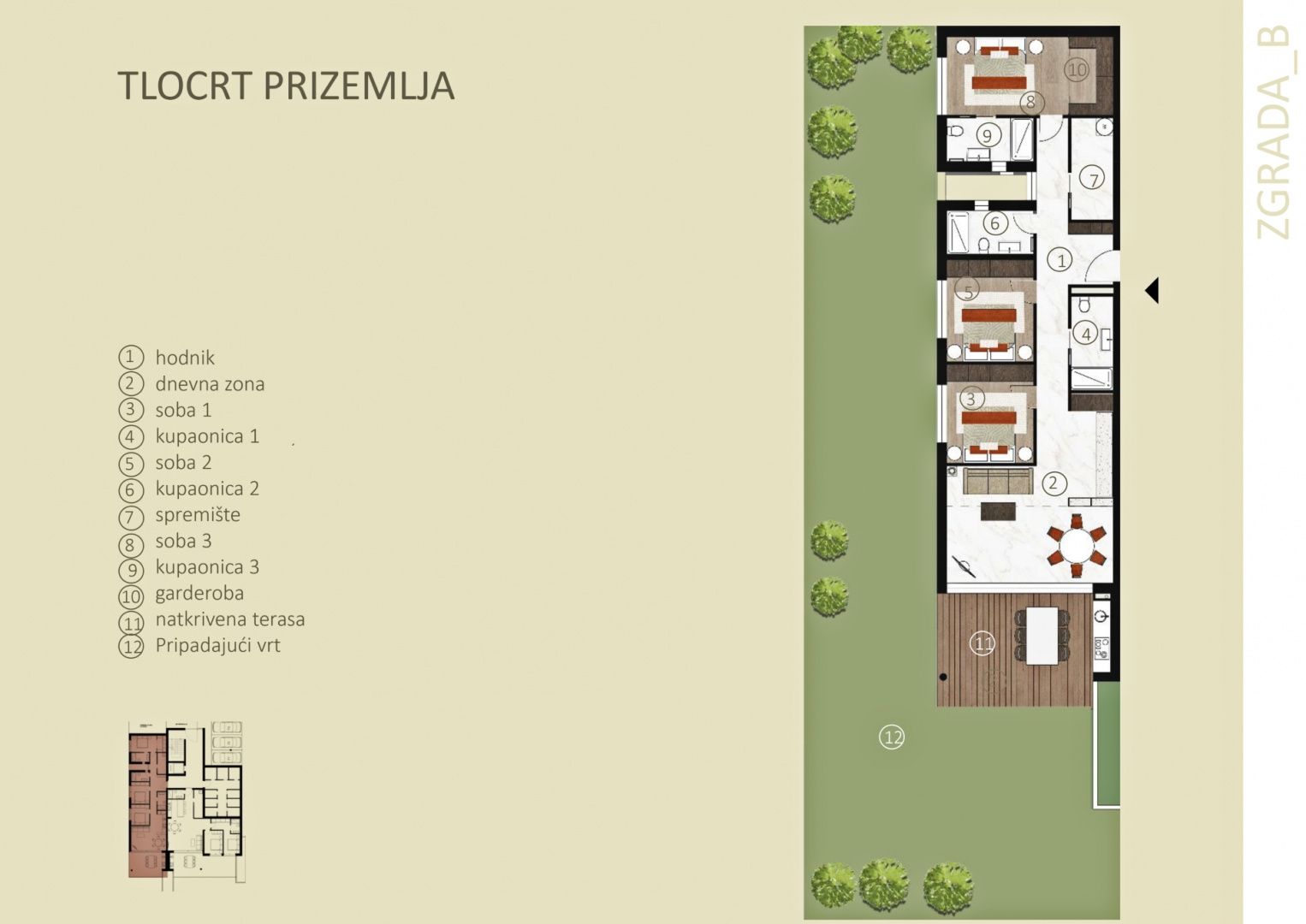 ISTRIE, NOVIGRAD - Apartmán se zahradou v luxusní novostavbě Novigrad, kdysi klidná rybářská vesnice, se v průběhu let stal atraktivní destinací pro turisty z celé Evropy a světa, z nichž mnozí se pravidelně vracejí. Novigrad, který se stal jedním z nejžádanějších míst pro turistické pobyty a dovolenou, si zachoval své neodolatelné kouzlo klidného rybářského městečka, onu rozpoznatelnou, téměř intimní atmosféru, tak charakteristickou pro malá středomořská města. Novigrad, malé středomořské město, je architektonickou perlou plnou historických památek, bohatého kulturního dědictví, zachovalých přírodních krás, ale i špičkových gastronomických lahůdek a dalších atributů. Novigradská riviéra na západním pobřeží Istrie se táhne od Dajly až k ústí řeky Mirny a zdobí ji členité, nízké a přístupné pobřeží se skalnatými a oblázkovými plážemi. V rezidenční části Novigradu, v blízkosti moře a všech nákupních, kulturních, vzdělávacích a rekreačních zařízení, se nachází moderní designová budova, která se rozkládá v přízemí a dvou patrech a obsahuje celkem 8 bytových jednotek. Při výstavbě byly použity odolné a spolehlivé materiály, které zaručují dlouhodobou spokojenost a bezpečnost bydlení. Plánování prostoru každého patra bylo provedeno do detailu, což vedlo k vysoce kvalitnímu uspořádání místností. Spojení estetiky, funkčnosti a pohodlí je cílem, s nímž byly všechny byty navrženy. Současný styl je v souladu s nejnovějšími trendy v interiérovém designu s důrazem na decentní a nenápadné detaily zjemněné teplými odstíny přírodních barev. Spojení tradičních materiálů a moderního designu zanechává dojem luxusu, který je zdůrazněn detaily, jako jsou dubové parkety I. třídy, velkoformátové keramické obklady I. třídy, vysoce kvalitní sanitární vybavení od renomovaných výrobců. Takový interiér v přírodní textuře a teplých odstínech nenápadně vyzařuje vřelost, zatímco vysoké stropy a čisté rovné linie s velkými prosklenými stěnami dále zdůrazňují prostornost. Předmětem prodeje je byt nacházející se v přízemí budovy. Byt se skládá ze tří ložnic, tří koupelen, chodby, úložného prostoru a otevřeného prostoru, který spojuje obývací pokoj, jídelnu a kuchyň s přístupem na terasu a zahradu o rozloze 180,90 m². K bytu náleží úložný prostor v přízemí budovy o rozloze 3,07 m² a dvě kryté parkovací stání o rozloze 30 m². Tato luxusní novostavba je ideální příležitostí pro pohodlný rodinný život i pro investici za účelem turistického pronájmu. Uvedená cena nemovitosti se vztahuje k konečnému stupni dokončení bez nábytku, což umožňuje finální úpravu dle vlastních přání a preferencí. Prodejce dané nemovitosti je právnickou osobou a DPH je zahrnuta v uvedené ceně.
