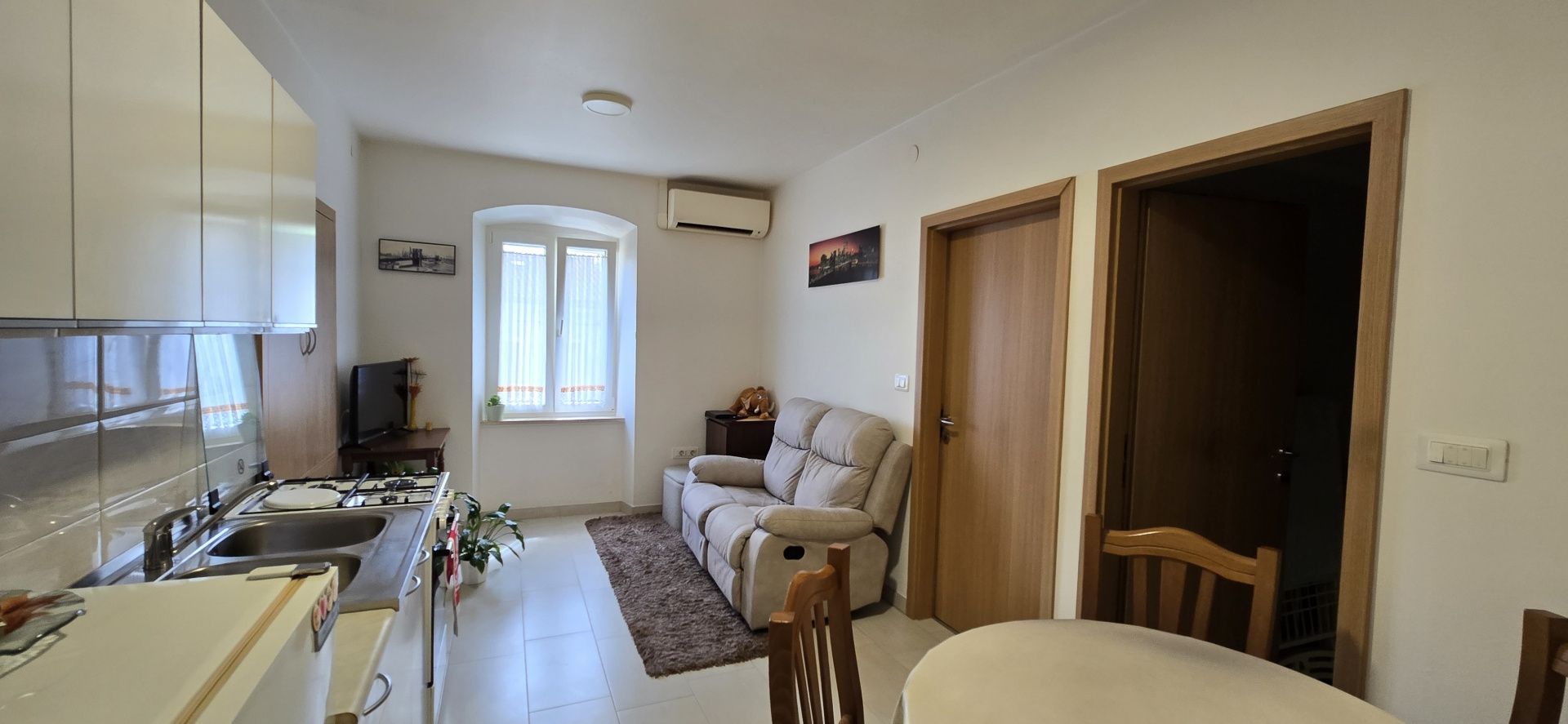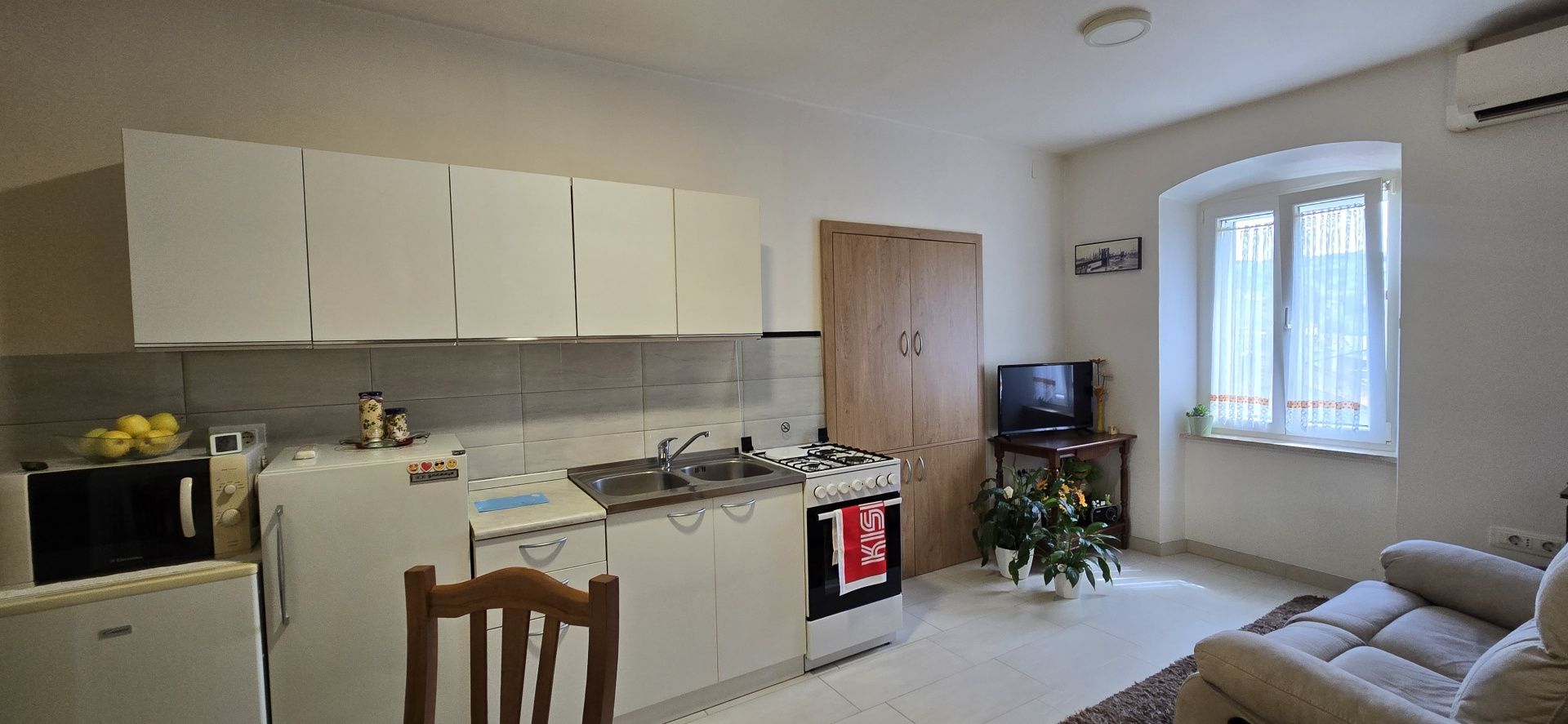 ISTRIE, PAZIN - Prostorný apartmán se dvěma dalšími pokoji a zahradou - 2 bytové jednotky Pazin je okouzlující istrijské městečko ležící v samém srdci poloostrova, známé svou bohatou historií, klidným životním stylem a vynikajícím dopravním spojením se zbytkem Istrie. Je ideální pro rodinný život, ale také jako investice k turistickému pronájmu díky své autentické atmosféře a přírodním krásám. Tento prostorný apartmán se nachází v příjemném a funkčním prostředí, které svým uspořádáním a doplňkovým vybavením poskytuje výjimečné možnosti pro bydlení nebo investici. Apartmán o celkové obytné ploše 84 m² se skládá ze dvou bytových jednotek - menšího a většího apartmánu, které jsou propojeny chodbou: • Menší apartmán: kuchyň s jídelnou a obývacím pokojem, jedna ložnice a toaleta. • Větší apartmán: prostorná kuchyň propojená s obývacím pokojem a jídelnou, dvě ložnice, koupelna a krásná lodžie s otevřeným výhledem. Kromě hlavní obytné části nemovitost zahrnuje i další prostory: • půdní úložný prostor o rozloze cca 30 m² • dva velké zařízené pokoje v přízemí (20 m² s parketovou podlahou a 24 m² s keramickou dlažbou) Celková uzavřená plocha všech prostor je impozantních 158 m². Byt a jeho přilehlé místnosti byly v roce 2017 kompletně zrekonstruovány. Veškeré instalace v bytě a sklepech byly kompletně vyměněny, což zajišťuje dlouhodobou bezpečnost budoucího majitele a eliminuje potřebu dalších, náročných a drahých stavebních prací. K bytu patří také malá soukromá zahrada o rozloze cca 6 m², ideální pro pěstování sezónní zeleniny nebo bylinek. Nájemníci mají navíc přístup k velké společné zahradě s přístřeškem - ideálnímu prostoru pro společenské akce, grilování, narozeninové oslavy a relaxaci. Parkování se nachází před budovou a je vyhrazeno pro nájemníky, po vzájemné dohodě o užívání. Budova má celkem 4 byty. Střecha budovy byla zrekonstruována před 6 lety. Tato nemovitost představuje na trhu vzácnou příležitost – kombinace dvou bytových jednotek, dalších prostorných a dobře udržovaných pokojů a venkovního zázemí poskytuje mimořádnou flexibilitu využití, ať už pro rodinný život, pronájem nebo kombinaci obojího. Díky nedávné kompletní rekonstrukci a vynikající poloze v srdci Istrie se jedná o investici, která kombinuje kvalitu, funkčnost a dlouhodobou hodnotu.