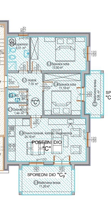 ISTRIE, POREČ - Apartmán s velkou zahradou, novostavba Poreč je jedno z nejatraktivnějších istrijských měst, známé svým malebným pobřežím, bohatým historickým dědictvím, vynikající gastronomickou nabídkou a upravenými plážemi. Město vyzařuje středomořskou atmosféru, živou letní atmosféru a rozmanité vybavení po celý rok, což z něj činí ideální místo k životu, relaxaci a užívání si istrijského způsobu života. Nedaleko Poreče se nachází prostorný a mimořádně funkční apartmán o čisté ploše 75 m², respektive užitné plochy 85 m². Apartmán nabízí příjemný, harmonický a světlý interiér, pečlivě uspořádaný tak, aby zajistil maximální pohodlí a soukromí. Skládá se ze dvou pohodlných ložnic, prostorného obývacího pokoje propojeného s kuchyní, praktické chodby, zařízené koupelny, další toalety a funkčního úložného prostoru. Dvě kryté terasy poskytují další prostor pro relaxaci a trávení času na čerstvém vzduchu po celý rok. Apartmán je vybaven kvalitním a spolehlivým systémem vytápění a chlazení prostřednictvím klimatizace. K bytu náleží také krásně upravená zahrada, respektive vlastní zahrada o impozantní rozloze 196 m², která nabízí klidný soukromý koutek pro venkovní bydlení. K bytu náleží také dvě parkovací místa a praktická skladovací místnost o rozloze cca 5 m², která se nachází v suterénu budovy. Budova má řádné kolaudační povolení, které zajišťuje úplnou právní jistotu, a koupě je možná prostřednictvím hypotéky. Tento byt nabízí vynikající příležitost pro každého, kdo chce pohodlný a moderní domov v bezprostřední blízkosti prestižního istrijského pobřeží. Harmonická kombinace klidného prostředí, promyšlené architektury, prostorného interiéru a velkorysého venkovního prostoru z něj činí atraktivní volbu pro rodiny, milovníky středomořského životního stylu nebo investory hledající nemovitost s dlouhodobou hodnotou.