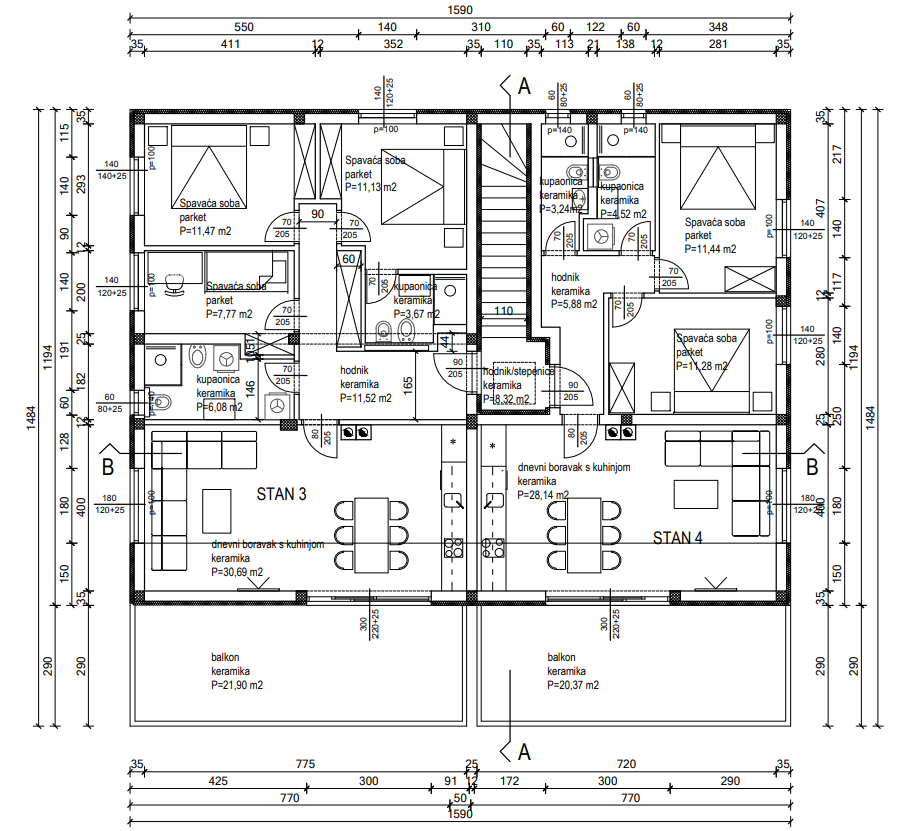 ISTRIE, POREČ - Byt v 1. patře novostavby u moře Město Poreč, jedna z nejkrásnějších perel Jaderského moře, se nachází na západním pobřeží Istrie. Na relativně malém poloostrově, kde město vzniklo, jsou dodnes jasně patrné stopy setkání slovanského, římského a germánského světa, které svědčí i o množství změn - politických, sociálních a etnických - které toto istrijské město v historii zažilo. Historie Poreče je historií neustálých změn, pohybu a nepokojů, nestability národů, vzestupů a pádů, v nichž se historie nových začátků jeví jako konstanta. Toto město neustále odhaluje stopy života mnoha civilizací a kultur, které vybudovaly jeho městskou a historickou identitu. Byt 4. na výkresech. Byt o rozloze 68,65 m² se nachází v 1. patře novostavby, 2,2 km od moře. Skládá se ze dvou ložnic, dvou koupelen a prostorného otevřeného prostoru, který zahrnuje kuchyň, jídelnu a obývací pokoj a má přístup na prostorný balkon. K bytu náleží dvě parkovací místa s možností instalace nabíjecí stanice pro elektromobily. Cena zahrnuje vše kromě nábytku a osvětlení. Budova je v současné době v nedokončené fázi a je možná platba na etapy (30 % + 30 % + 30 % + 10 %).