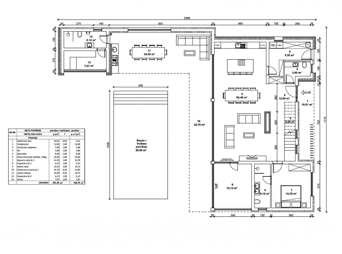 ISTRIE, POREČ - Atraktivní dům s bazénem ve výstavbě Starobylé město Poreč, obklopené příjemným středomořským klimatem, se nachází v srdci západního istrijského pobřeží a jeho pobřeží se vyznačuje zachovalou přírodní krásou, upravenými parky, borovými a dubovými háji, které sahají až k samotnému moři, podél nichž se střídá čisté moře, pláže, zátoky a ostrovy. Rozkládá se na ploše 139 km² a skládá se z 58 osad. S identitou městského přímořského města je Poreč městem kultury, sportu, zábavy, městem turismu a opravdové pohostinnosti. Je jedním z nejatraktivnějších měst chorvatského turismu, které jedinečným způsobem spojuje přírodní krásy Istrie, bohaté kulturní a historické dědictví a nejmodernější vybavení špičkové turistické destinace. Harmonie starého městského jádra, které je kulturní památkou, s jednou z nejznámějších istrijských kulturních památek, Eufraziovou bazilikou, která je na seznamu světového dědictví UNESCO, a nejlépe udržovanými a nejlépe vybavenými turistickými osadami na Jadranu tvoří mozaiku nezapomenutelných zážitků. Poreč je také město, které je mnohem víc než jen letní destinací slunce a moře. Poreč je město šité na míru potřebám lidí. Město, ve kterém existuje neustálý impuls ke zlepšování životních podmínek a dosahování většího pokroku v různých oblastech. Město, které je příjemným, bezpečným a dobře udržovaným místem k životu, kde si každý najde své místo, město bez daní s vysokou sociální citlivostí pro všechny generace. Nedaleko města Poreče se prodává atraktivní dům s bazénem ve výstavbě. Nachází se v klidné čtvrti, obklopený přírodou, rodinnými domy a rekreačními objekty, a nabízí dokonalou rovnováhu mezi venkovským prostředím a blízkostí moře a městskou vybaveností města Poreče. Kromě lokality, která poskytuje naprostý komfort, se nemovitost vyznačuje také kvalitou konstrukce, která zaručuje dlouhodobou spokojenost a kvalitu bydlení. Dům svou moderní architekturou nenarušuje životní prostředí, ale vytváří synergii přírodního prostředí a moderního designu. Je definován jako jedna bytová jednotka, jejíž plocha je rozložena do dvou podlaží; přízemí a první patro. Přízemí se skládá z otevřeného prostoru, který spojuje obývací pokoj, jídelnu a kuchyň s přístupem na krytou terasu, kde se nachází letní kuchyň s přístupem do pomocné budovy sestávající z koupelny a místnosti se saunou. Půdorys patra doplňuje ložnice s vlastní koupelnou, pracovna, toaleta pro hosty a technická místnost. První patro se skládá ze čtyř ložnic s vlastními koupelnami a prostorné terasy s výhledem na okolí a až k moři. Dvůr je oplocený a nachází se na něm bazén s opalovací plochou. Uvedená cena se vztahuje na nedokončenou stavbu bytového domu do fáze hrubé stavby, která zahrnuje přípravné práce, výkopové práce a položení základů a stavbu zdí. Cena nezahrnuje dokončovací práce, tesařské práce ani úpravy zahrady. Možnost koupě nemovitosti v konečné fázi výstavby bez nábytku s upravenou zahradou s úpravou ceny. Prodávající předmětné nemovitosti je právnická osoba.