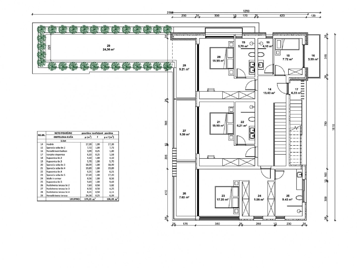 | Celková zastavěná plocha | 1 408 m² |