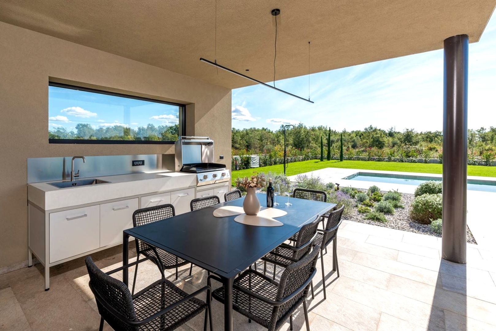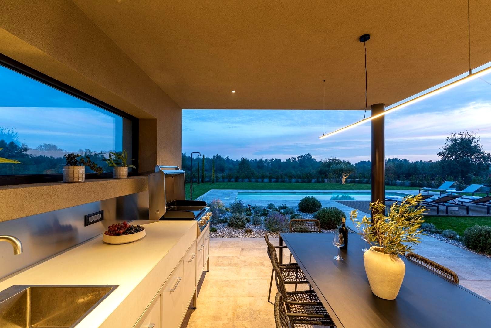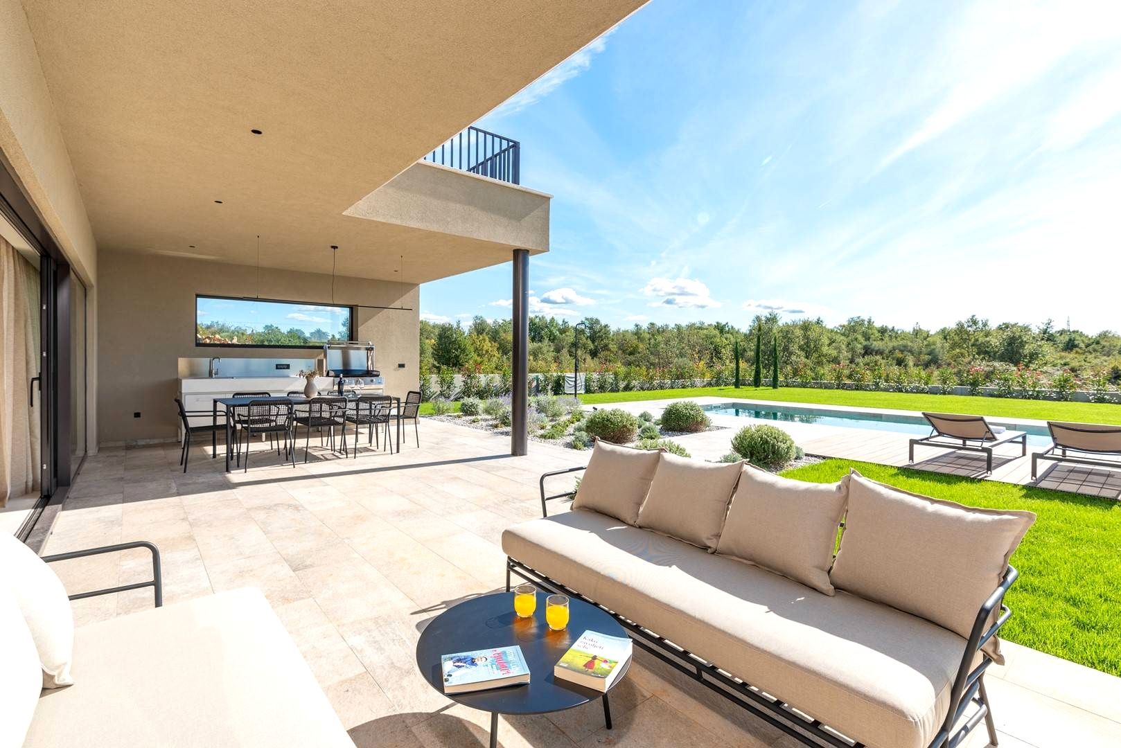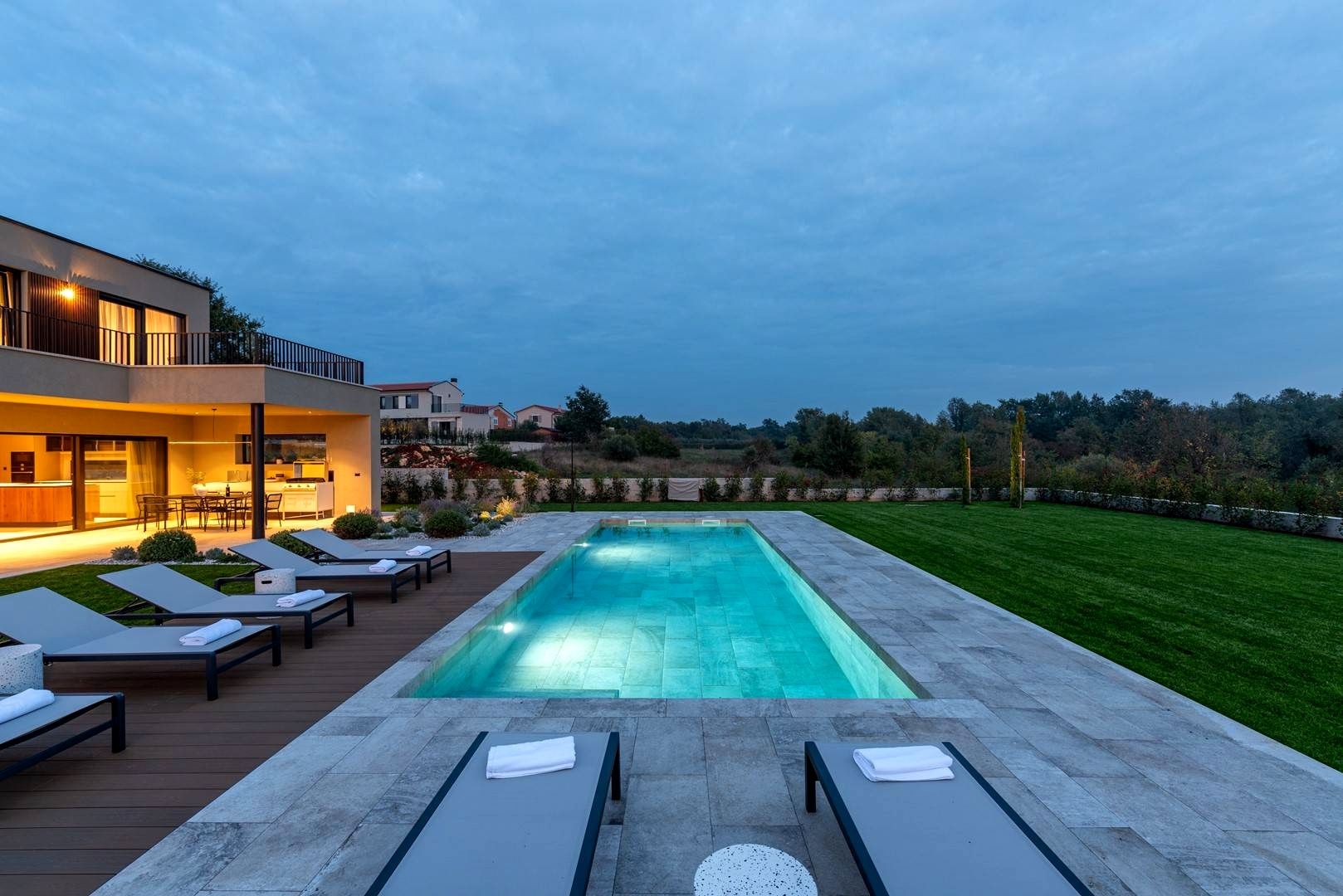 ISTRIE, POREČ - Dům nejvyšší kvality s bazénem Starobylé město Poreč, obklopené příjemným středomořským klimatem, se nachází v srdci západního istrijského pobřeží. Jeho pobřeží se vyznačuje zachovalou přírodní krásou, upravenými parky, borovými a dubovými háji, které sahají až k moři, podél nichž se střídá čisté moře, pláže, zátoky a ostrovy. Rozkládá se na ploše 139 km² a skládá se z 58 osad. Poreč je s identitou městského přímořského města městem kultury, sportu, zábavy, městem turismu a opravdové pohostinnosti. Je to jedno z nejatraktivnějších měst chorvatského turismu, které jedinečným způsobem spojuje přírodní krásy Istrie, bohaté kulturní a historické dědictví a nejmodernější vybavení špičkové turistické destinace. Harmonie starého městského jádra, které je kulturní památkou, s jednou z nejznámějších istrijských kulturních památek, Eufraziovou bazilikou, která je na seznamu světového dědictví UNESCO, a nejlépe udržovanými a nejlépe vybavenými turistickými osadami na Jadranu tvoří mozaiku nezapomenutelných zážitků. Poreč je také město, které je mnohem víc než jen letní destinací slunce a moře. Poreč je město šité na míru potřebám lidí. Město, ve kterém existuje neustálý impuls ke zlepšování životních podmínek a dosahování většího pokroku v různých oblastech. Město, které je příjemným, bezpečným a dobře udržovaným místem k životu, kde si každý najde své místo, město bez přirážek k daním s vysokou sociální citlivostí pro všechny generace. Nedaleko města Poreče se prodává vysoce kvalitní dům s bazénem. Nemovitost představuje harmonii prostoru, potřeb, funkcí, konstrukce a krásy. Nachází se v klidné čtvrti, obklopen přírodou, rodinnými domy a rekreačními objekty, které nabízejí autentický zážitek malého istrijského městečka, intimitu, úlevu od každé hektické námahy a odpočinek od hluku, a zároveň blízko moře a dynamických istrijských měst s řadou vybavení. Dům, moderní průlom v nadčasové architektuře s důrazem na funkčnost a estetiku, splývá s osadou a krajinou jak tvarem, tak barvou. Je rozdělen do dvou elegantně zařízených a dobře vybavených podlaží s funkčním půdorysem. Obytná část nabízí harmonické prostředí zalité přirozeným světlem, které vyzařuje sofistikovanost a pohodlí. Přízemí se skládá z otevřeného prostoru, který spojuje obývací pokoj, jídelnu a kuchyň s přístupem na krytou terasu s letní kuchyní, ložnicemi s vlastními koupelnami, wellness zónou se saunou a sprchovým koutem, toaletou pro hosty a technickými místnostmi. První patro se skládá ze tří ložnic s vlastními koupelnami a chodby s přístupem na prostornou terasu. Dvůr je ambientálně a zahradně upraven a oplocen. Naprostou harmonii zajišťuje vyhřívaný bazén s prostorem na opalování. Poloha, struktura a pohodlí činí z této nemovitosti ideální příležitost pro klidný rodinný život i pro investici za účelem turistického pronájmu.