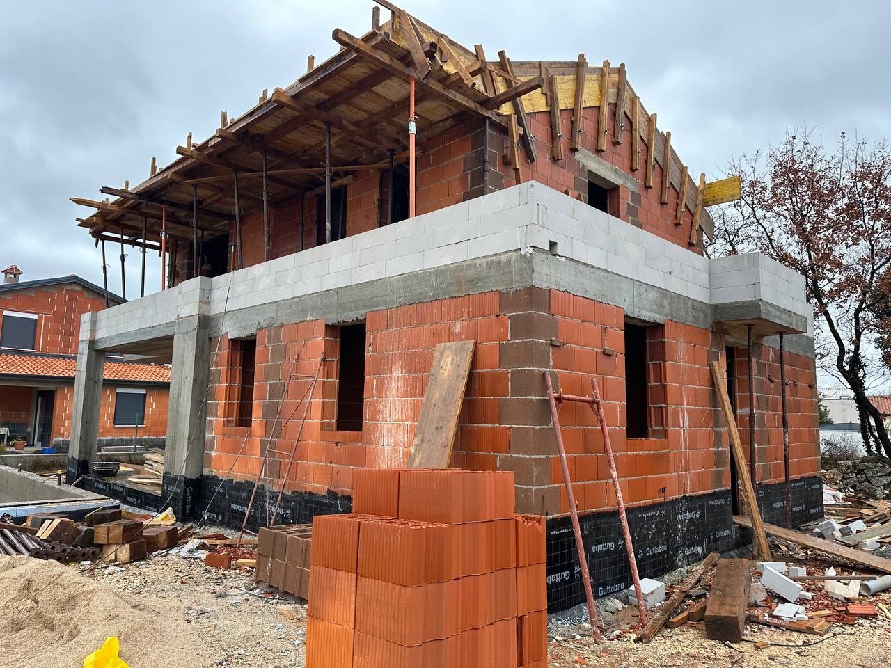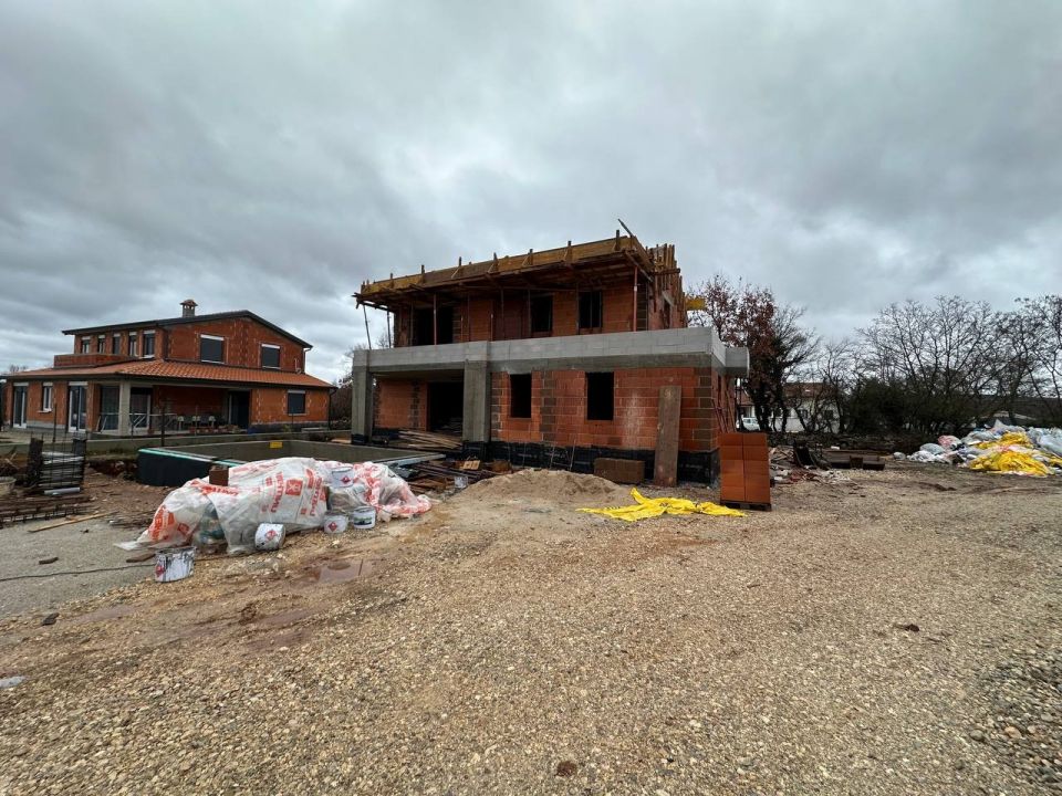 ISTRIE, POREČ - Dům ve výstavbě s bazénem v blízkosti V klidném istrijském prostředí, pouhých 10 km od centra Poreče a jejích slavných pláží, se nachází tento moderní dům ve výstavbě, ideální pro ty, kteří hledají soukromí, pohodlí a autentickou středomořskou atmosféru. Dům je v současné době v nedokončené fázi a dokončení je plánováno na léto 2026. Celková čistá plocha domu je 160 m² a nachází se na pozemku o rozloze 620 m², který poskytuje dostatek prostoru pro užívání si venkovního prostředí. Rozložení pokojů: Přízemí: - vstupní hala - úložný prostor - koupelna - ložnice - prostorný obývací pokoj - kuchyň s jídelnou První patro: - dvě ložnice - dvě koupelny - dva balkony Kvalita a vybavení: Dům byl navržen s důrazem na kvalitu a pohodlí. V celém domě bude instalováno podlahové vytápění a chlazení, což zajistí příjemnou teplotu po celý rok. Na pozemku se nachází vyhřívaný bazén, prostorné terasy a upravená zahrada – ideální pro relaxaci, setkávání a užívání si klidu a pohody, které tato lokalita nabízí. Tato nemovitost představuje vynikající příležitost k vytvoření moderního domova v srdci Istrie nebo jako investici do luxusní vily k turistickému pronájmu. Kombinace klidné lokality, otevřených výhledů a kvalitní konstrukce činí tento dům na trhu mimořádně atraktivním.